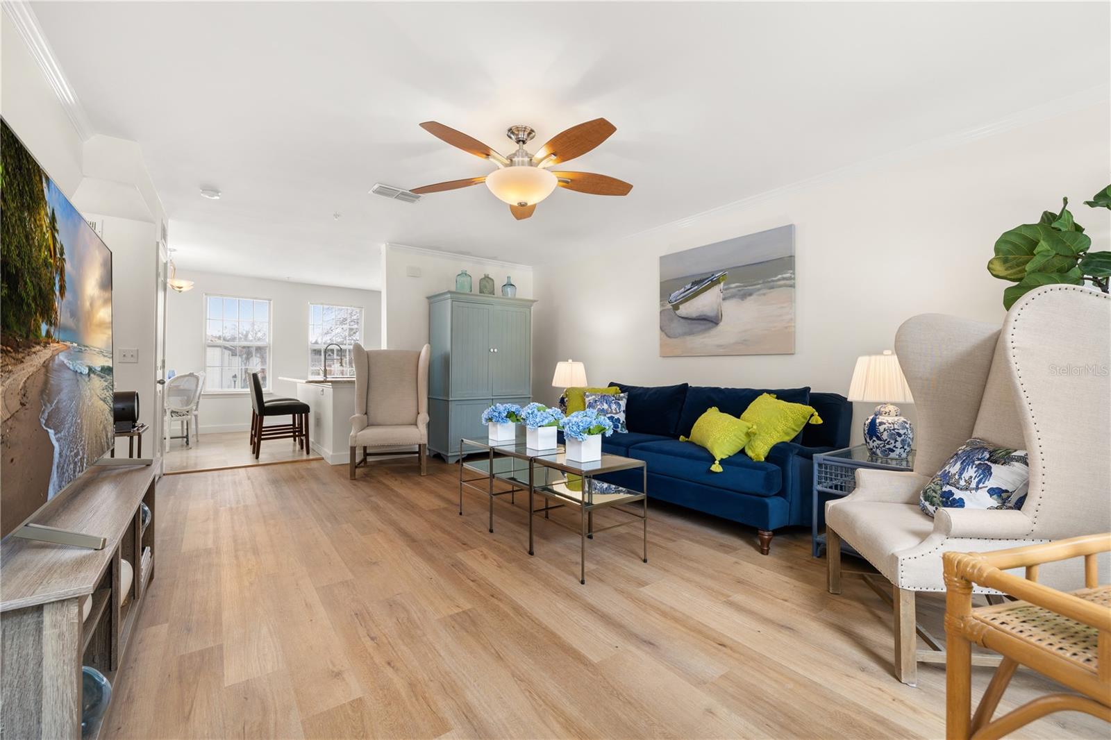 Acorde com um campo de golfe tranquilo e vista para o mar nesta linda moradia geminada de três andares, a poucos passos do centro de Celebration. Situada em um dos locais mais desejáveis da comunidade, esta casa oferece luz, privacidade e vistas que parecem abertas e calmantes desde o momento em que você entra. O layout de 1.465 pés quadrados foi cuidadosamente projetado, apresentando uma cozinha aberta com bancadas de pedra, áreas de estar fluidas e acabamentos modernos, limpos e convidativos. Pisos de vinil luxuosos e azulejos acrescentam durabilidade e estilo, enquanto todos os cômodos desfrutam de vista, conectando a casa ao entorno. A frente da moradia tem vista para o campo de golfe e para a água, enquanto a parte traseira está virada para um beco tranquilo com espaços verdes próximos, perfeitos para equilíbrio e privacidade. A suíte principal é um verdadeiro retiro, completa com banheiro privativo com ducha dupla, ideal para relaxar no final do dia. Com dois quartos, três casas de banho completas e garagem para dois carros, a casa oferece flexibilidade para viver a tempo inteiro, uma segunda residência ou uma oportunidade de investimento. Viver em celebração significa desfrutar de um estilo de vida que poucas comunidades podem oferecer – ruas arborizadas, parques pitorescos, quilômetros de trilhas, piscinas comunitárias, golfe e tênis, restaurantes, boutiques, escolas de alto nível e eventos vibrantes durante todo o ano – tudo com acesso conveniente às principais rodovias e atrações de classe mundial. Uma rara oportunidade de possuir uma moradia renovada e pronta para morar, com vistas, facilidade de locomoção e estilo de vida no centro de Celebration.
