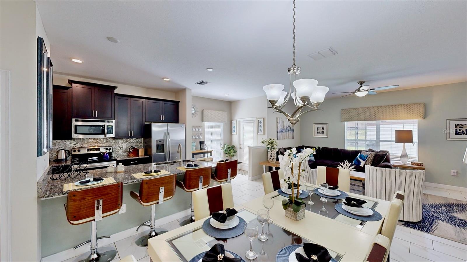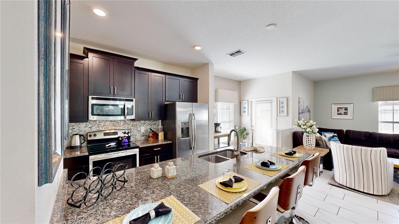 -MultiPle Weeks já reservado!-Fuja para o paraíso nesta impressionante cidade de 5 quartos dentro da procurada comunidade de golfe de Gate de Campeões. Perfeito para famílias ou grandes grupos, este retiro impecavelmente decorado oferece uma atmosfera brilhante e acolhedora, ideal para criar memórias duradouras de férias. Ao entrar, entre no luxo moderno e relaxe na área de estar de conceito aberto, onde o design contemporâneo combina perfeitamente a cozinha, a sala de jantar e a sala da família. A mesa de jantar formal acomoda confortavelmente seis, enquanto assentos casuais adicionais aguardam o bar convidativo. Prepare refeições gourmet na cozinha dos sonhos do chef, com armários ricos e escuros com moldagem por coroa e um conjunto completo de utensílios de aço inoxidável. Descontraia e respinguei para o pátio exibido, seu oásis privado para relaxar. Revesta -se ao sol da Flórida em um confortável lounge de espreguiçadeiras ou dê um mergulho refrescante na piscina espumante. Aproveite a tranquilidade de não ter vizinhos traseiros, permitindo a privacidade final durante a sua estadia. Entretenimento para todos: Reúna seus entes queridos na sala de estar para noites de cinema, com um sofá secional de pelúcia e uma grande TV de tela plana. Dois quartos convenientemente localizados completam o nível do térreo. Um quarto oferece duas camas duplas, ideais para os mais pequenos. Ao mesmo tempo, o outro apresenta uma combinação versátil de uma cama de tamanho pequeno e de duas vezes, perfeito para acomodar vários arranjos para dormir. Um banheiro completo e uma lavanderia com todos os itens essenciais completam as comodidades do térreo. Retiros tranquilos no andar de cima sobem as escadas para descobrir um refúgio de relaxamento nos três quartos no andar de cima. Mergulhe-se em uma das duas suítes master, cada uma com móveis luxuosos e banheiros privativos para obter o melhor conforto. Um quarto adicional com camas duplas oferece amplo espaço para hóspedes adicionais, enquanto um banheiro bem equipado atende às necessidades de todos. Totalmente equipado para o seu conforto, aproveite a conveniência de ter todos os móveis e aparelhos incluídos em seu aluguel. Basta embalar suas malas e preparar-se para relaxar neste paraíso totalmente equipado. Champions Gate: Um destino de resort além do seu santuário privado, o Champions Gate oferece um mundo de comodidades no estilo resort. Tee fora no campo de golfe de 18 buracos do campeonato, ou aprimore suas habilidades em uma das seis quadras de tênis. O expansivo clube de 14.000 pés quadrados de Oasis é o coração da comunidade, com um restaurante, um cinema de 26 lugares de última geração e um centro de fitness. Mantenha-se ativo nas aulas de aeróbica, jogue na sala de arcade ou relaxe pelas piscinas em estilo resort. Faça um flutuador de lazer pelo rio preguiçoso, ou deixe os pequenos desfrutar da área dedicada do Splash. Experimente a diferença que este Townhome meticulosamente projetado oferece a mistura perfeita de luxo, conforto e vida no estilo resort. Reserve seu inesquecível escapadela de portão dos campeões hoje!