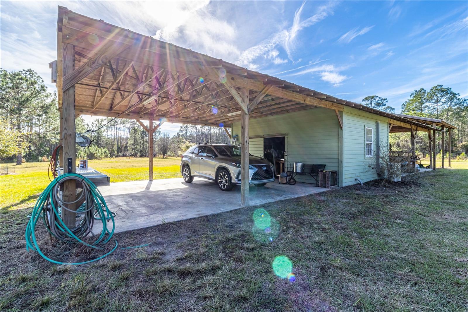**40 acres de terra** Fuja da agitação da vida na cidade e mergulhe na tranquilidade desta espaçosa casa em estilo cabana situada em 40 acres de terra. Com mais de 1.300 pés quadrados de área útil, beleza natural abundante e acesso conveniente às atrações próximas, esta propriedade oferece a combinação perfeita de conforto, privacidade e charme rural. Aproveite o conforto da vida moderna com telhado metálico, garagem e galpão de trabalho, além de outras atualizações que melhoram a funcionalidade e a estética da propriedade. Você certamente verá a vida selvagem diariamente enquanto relaxa na sua varanda. Localizado a poucos minutos das margens imaculadas de Horseshoe Beach, Cedar Key, e com fácil acesso a destinos de compras em Chiefland, Trenton, Archer e Gainesville, este retiro oferece o equilíbrio ideal entre isolamento e conveniência. Ligue hoje para seu tour privado.