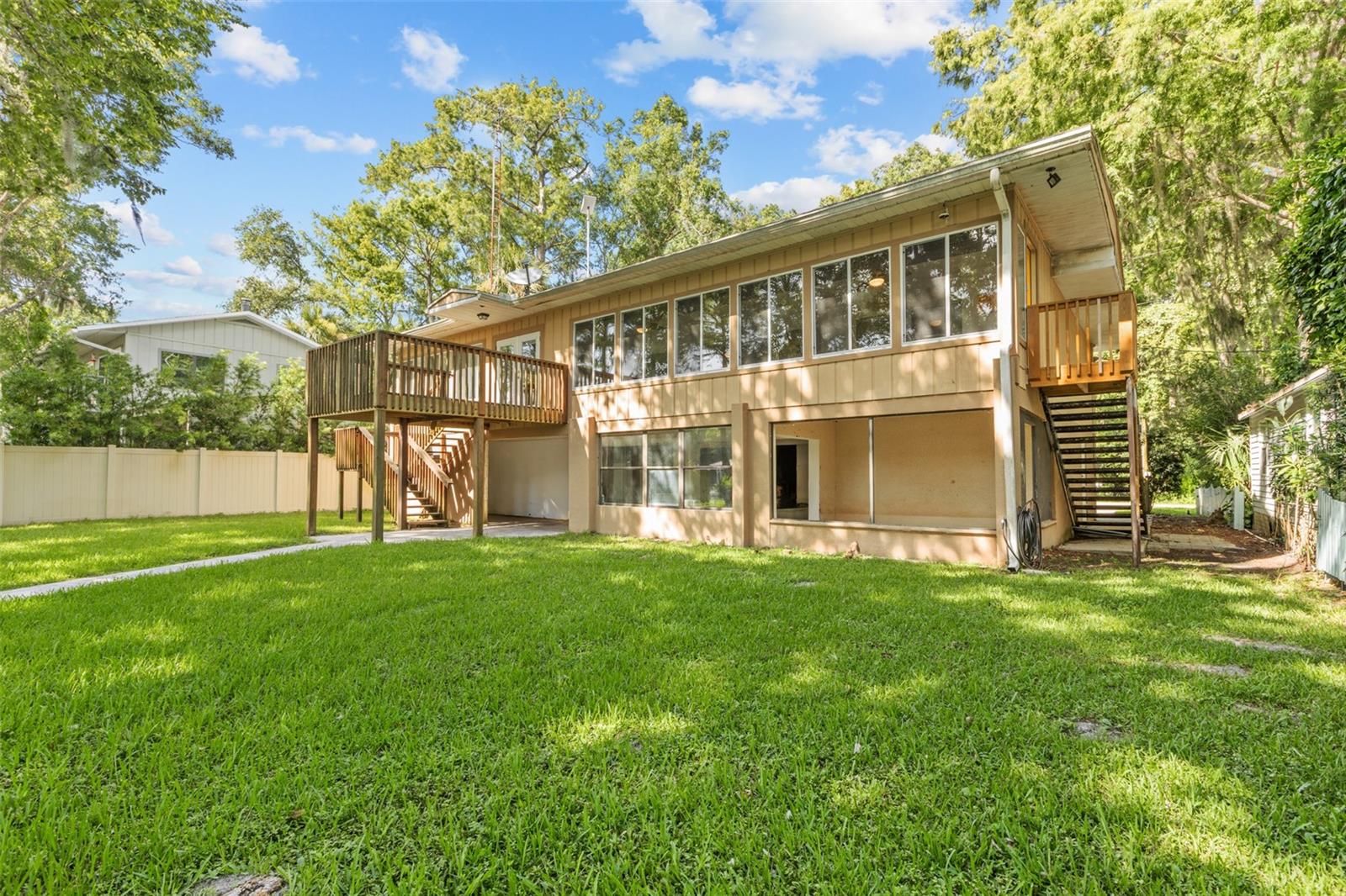 SUWANNEE RIVER WATERFRONT, FOWLER'S BLUFF, CHIEFLAND, FL ~ 2 andares lindamente reformado, 3 quartos, 2 banheiros, base CB/Stucco com estrutura no andar superior, 2 garagens fechadas, nova casa de barcos com elevador, doca flutuante e estação de limpeza de peixes com vistas panorâmicas espetaculares vistas do rio Suwannee de quase todos os cômodos da casa. Com impressionantes 4100 sf sob o telhado, a área de estar principal de 1500 sf fica no andar de cima com uma sala de sol de vidro fechada adicional de 480 sf com vista para a água, que pode ser acessada a partir do quarto principal e das portas deslizantes de vidro da área de estar. As portas francesas abrem para fora da sala de sol para uma varanda com vista para o rio. No andar de baixo há 2 garagens anexas, um banheiro completo adicional precisa ser restaurado, toneladas de armazenamento e varanda com tela totalizando 2.120 sf. SEM carpete, todo o piso novo acaba de ser instalado para maior conforto e facilidade de limpeza. Todos os quartos são espaçosos e a planta aberta torna-os ideais para entretenimento e relaxamento com amigos. Excelente localização em uma estrada pavimentada sem saída, a apenas 20 minutos de carro da ilha tropical de Cedar Key, para refeições e entretenimento à beira-mar no Golfo do México. (São apenas 29 quilômetros de barco até o Golfo do México, ou se você for na direção oposta, fica a poucos passos de Manatee Springs.) Fowler's Bluff é uma pequena comunidade amigável que abriga o Treasure Camp. Restaurante para refeições à beira-mar e entretenimento de fim de semana no Rio Suwannee. O Walmart fica no coração de Chiefland, a apenas 10 minutos de distância, bem como vários restaurantes, escolas, bancos e igrejas. Ocala, sede do Centro Equestre Mundial, fica a aproximadamente uma hora de distância. Gainesville tem tudo o que uma cidade grande tem a oferecer e fica a apenas 45 minutos de distância para atendimento médico de última geração em Shands, Hospital Regional do Norte da Flórida e Hospital VA. Se procura uma casa tranquila e sossegada junto à água onde possa desfrutar de um ritmo de vida mais lento e terminar cada dia com um pôr-do-sol espectacular, encontrou-a!