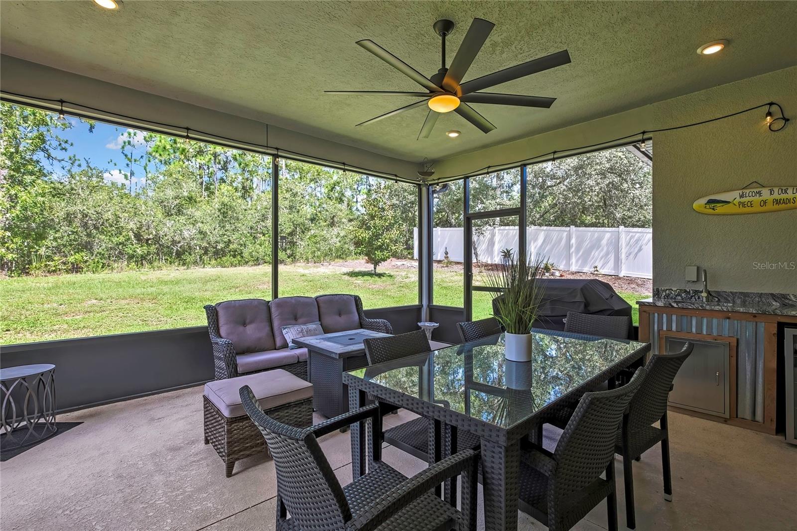 Casa personalizada de 3 quartos e 2 banheiros em Citrus Springs! Esta deslumbrante casa construída sob medida (2020) oferece uma sensação costeira moderna com atualizações atenciosas por toda parte. Entre nos tetos elevados com detalhes em bandejas e uma convidativa lareira elétrica que dá o tom para a área de estar aberta. Esta casa em bloco possui isolamento de espuma em spray e paredes externas isoladas, tornando toda a casa excepcionalmente eficiente. A cozinha é o sonho de um chef, com armários atualizados, bancadas de quartzo, eletrodomésticos de aço inoxidável, enchimento de panelas e uma janela exclusiva em estilo garagem que se abre para o pátio - perfeita para entretenimento. A espaçosa suíte principal inclui banheiro privativo com box amplo, pia dupla e closet. Dois quartos de hóspedes adicionais são de tamanho generoso com carpete hipoalergênico. A vida ao ar livre é facilitada com pátio coberto, cozinha externa completa com bancada de granito e geladeira de bebidas, além de calhas em toda a casa. A enorme garagem para dois carros oferece piso selado com epóxi, porta de garagem isolada com Wi-Fi e amplo armazenamento. Os recursos adicionais incluem CCTV pré-cabeado em casa com câmeras, cofre embutido na parede para proteger seus objetos de valor e uma tela deslizante oculta na porta da frente para aproveitar os melhores meses de clima da Flórida. Além disso, a casa tem todos os serviços subterrâneos! Esta casa é levemente habitada como uma segunda casa, esta propriedade parece quase nova. Você não encontrará outra casa como esta em Citrus Springs – agende sua exibição hoje mesmo!