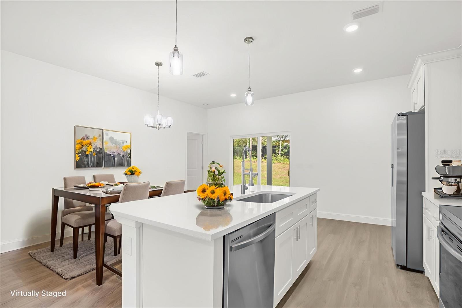 PREÇO REDUZIDO!! Construção moderna totalmente nova na desejável comunidade de Citrus Springs! Esta deslumbrante casa de 4 quartos e 2 banheiros combina estilo, conforto e praticidade para a vida cotidiana. A planta baixa de conceito aberto é perfeita para entretenimento, com uma cozinha totalmente equipada com eletrodomésticos de aço inoxidável - incluindo geladeira, fogão, lava-louças e micro-ondas - uma grande ilha central e uma espaçosa despensa. A suíte master privativa oferece um banheiro lindamente decorado com pia dupla e acabamentos luxuosos em azulejos. Com 1.548 pés quadrados de área útil aquecida (2.092 pés quadrados no total) e uma garagem para 2 carros, você desfrutará do equilíbrio perfeito entre elegância e funcionalidade. Situada num bairro tranquilo, esta casa está pronta para receber os seus primeiros proprietários.