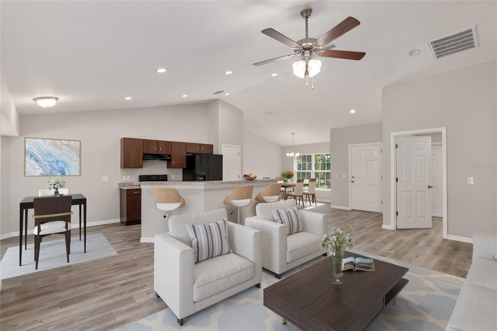 Uma ou mais fotos foram virtualmente encenadas. Em construção. *Em construção* Localizada em Citrus Springs está esta NOVA casa de 3 quartos e 2 banheiros, situada bem no coração da Costa Natural da Flórida! Planta aberta com piso laminado por toda parte. Ao entrar na casa, você será saudado com um interior luminoso e acolhedor que inclui uma planta baixa aberta e dividida, tetos altos abobadados, iluminação LED com eficiência energética, janelas E-Glass com eficiência energética com puxadores internos para facilitar a limpeza e uma sala de jantar formal. . A cozinha é completa com ilha de bar, perfeita para banquetas, ampla despensa com estantes e eletrodomésticos novos. A espaçosa suíte master 12x15 é completa com closet com prateleiras, grande chuveiro de azulejos e banheira de imersão. Outras características da casa incluem quartos de hóspedes de tamanho decente, lavanderia interna, portas francesas nas grandes salas que se abrem para um quintal privado, uma copa. Volte para a natureza, pois esta casa está localizada a poucos minutos de vários parques estaduais, trilhas para caminhadas/ciclismo, campos de golfe, lagos, rios, nascentes de água doce E do Golfo do México! Desfrute de pesca de classe mundial, passeios de barco, natação e mergulho, caiaque, paddleboarding, vieiras E nade com nossos peixes-boi mundialmente famosos! Vida tranquila e descontraída com excelentes escolas públicas, mas a apenas uma hora de carro de Tampa e uma hora e meia de carro de Orlando!