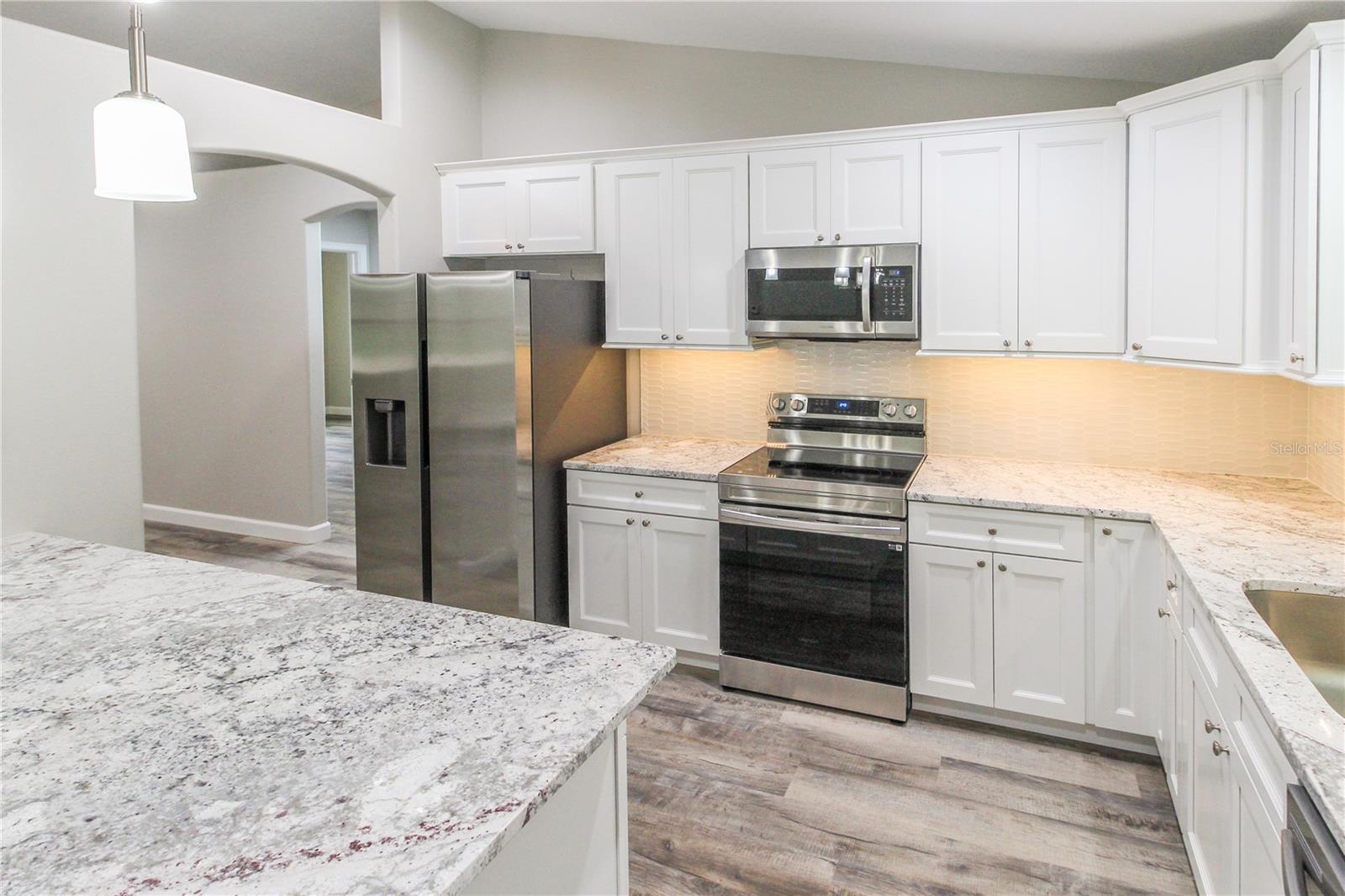 Bem-vindo ao seu luxuoso oásis situado em um bairro sereno e tranquilo! Esta deslumbrante casa de construção nova combina perfeitamente design moderno com acabamentos de alta qualidade, oferecendo uma experiência de vida verdadeiramente elevada num ambiente tranquilo. Com 3 quartos, 2 banheiros, garagem para 2 carros e uma charmosa varanda no quintal, esta residência atende ao estilo e à conveniência para proprietários exigentes que buscam paz e tranquilidade. Ao entrar, você será saudado pela elegância do luxuoso piso de pranchas vinílicas que adorna as principais áreas de estar, proporcionando durabilidade e apelo visual. O layout de conceito aberto cria um fluxo contínuo entre a área de estar, a área de jantar e a cozinha gourmet, perfeito para receber convidados ou desfrutar de noites tranquilas em casa. A cozinha é o sonho de qualquer chef, com armários elegantes, bancadas de quartzo e eletrodomésticos de última geração. A espaçosa ilha oferece amplo espaço para o preparo de refeições e jantares casuais, enquanto o piso cerâmico confere um toque de sofisticação ao espaço. Saia para descobrir a varanda do quintal, um retiro encantador onde você pode relaxar e descontrair em meio à beleza da natureza. Quer esteja a tomar o seu café da manhã ou a organizar uma reunião com amigos, este espaço exterior é perfeito para desfrutar do ambiente tranquilo. Retire-se para a suíte master, onde o luxuoso piso de pranchas de vinil e um espaçoso closet o aguardam. O banheiro privativo oferece uma experiência de spa com piso cerâmico, pias duplas e chuveiro luxuoso, proporcionando o máximo em conforto e relaxamento. Dois quartos adicionais oferecem versatilidade para hóspedes, escritórios domésticos ou hobbies, cada um com luxuoso piso de pranchas de vinil e amplo espaço no armário. Um segundo banheiro completo, equipado com luminárias modernas e piso cerâmico, atende esses quartos com estilo e sofisticação. Não perca a chance de fazer desta casa o seu lar para sempre - agende sua exibição hoje mesmo!
