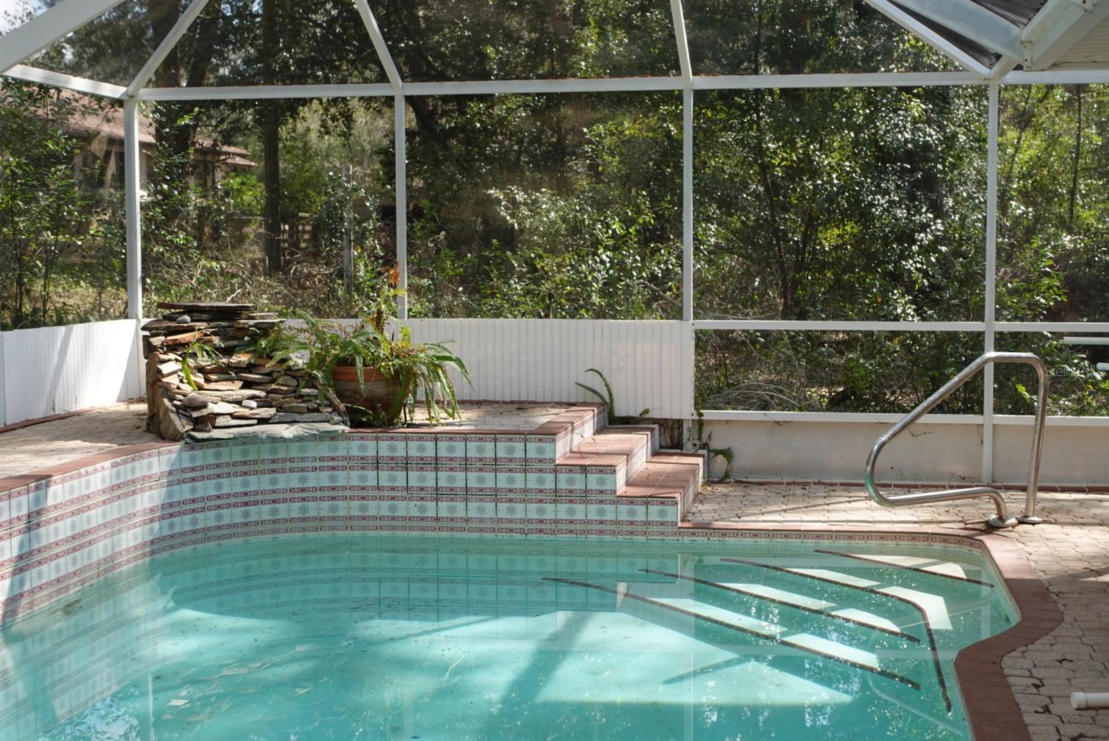 Entre nesta convidativa casa de 3 quartos e 2 banheiros, oferecendo mais de 1.800 pés quadrados de espaço de vida cuidadosamente projetado. Aninhado em um generoso lote de 0,57 acres, essa residência combina perfeitamente a vida interna e externa com três conjuntos de controles deslizantes que concedem acesso a uma área de piscina fechada-perfeita para o relaxamento durante todo o ano. Aproveite a privacidade de uma planta baixa, com a cozinha e a sala da família servindo como o coração da casa. Uma espaçosa sala de estar, a beira da piscina acessível de um grande controle deslizante de 3 portas, inunda o espaço com luz natural. As atualizações recentes incluem um telhado de metal durável e um sistema HVAC mais recente, garantindo a paz de espírito nos próximos anos. A garagem de dois carros de grandes dimensões oferece amplo armazenamento para seus veículos e equipamentos recreativos. Cercado por vegetação luxuriante e oferecendo vida ao ar livre serena, esta propriedade promete uma mistura harmoniosa de conforto e conveniência. Não perca a chance de experimentar esta casa cativante - cocheiro hoje uma turnê privada!