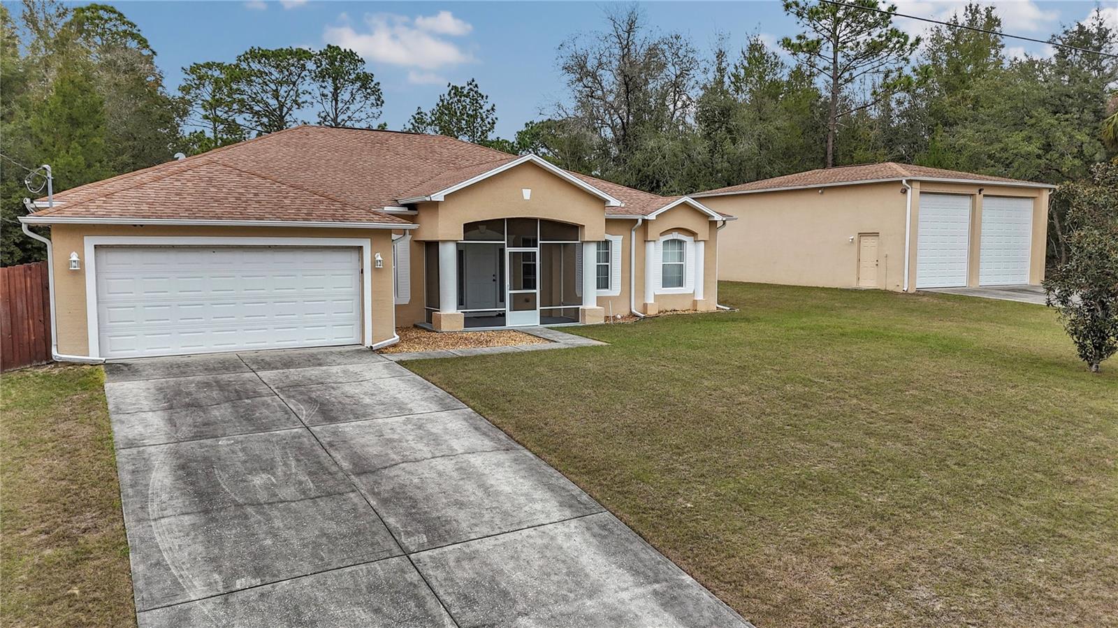 Bem -vindo para casa! Esta piscina de mais de 2250 pés quadrados em casa em um lote duplo (0,4 acres) em Citrus Springs é o diamante que você estava esperando! É uma garagem de 4 quartos, 2 banheiros, 2 carros, com piscina e bloco de concreto 28x42 destacado+garagem para RV de estuque, com 2 portas de tamanho RV. Ao entrar no hall de entrada, você encontrará 2 quartos extras, perfeitos para um escritório ou área de jantar. Logo depois disso, você é recebido pela sala de estar de tamanho grande com uma cozinha aberta para o lado. O quarto principal fica fora da cozinha, com seu próprio acesso privado ao convés da piscina e banheiro principal grande com closet. Indo para o outro lado da sala, você encontrará os outros 3 quartos, junto com o segundo banheiro que vai até o convés da piscina externa. Falando na piscina, você tem uma piscina de água salgada totalmente fechada, que tem aquecimento solar para estender a já longa temporada de piscinas da Flórida! Há também um bloco de concreto de 28 pés x 42 pés e garagem para RV de estuque, com 2 portas de garagem do tamanho de 2 RV e uma calçada completamente pavimentada. O proprietário está aberto a vender a maioria dos móveis com a casa também. Ligue para agendar sua exibição hoje!