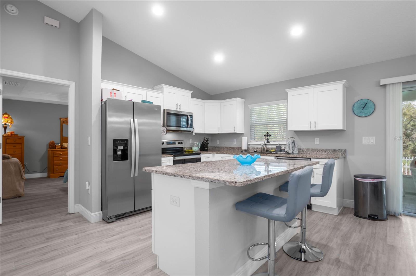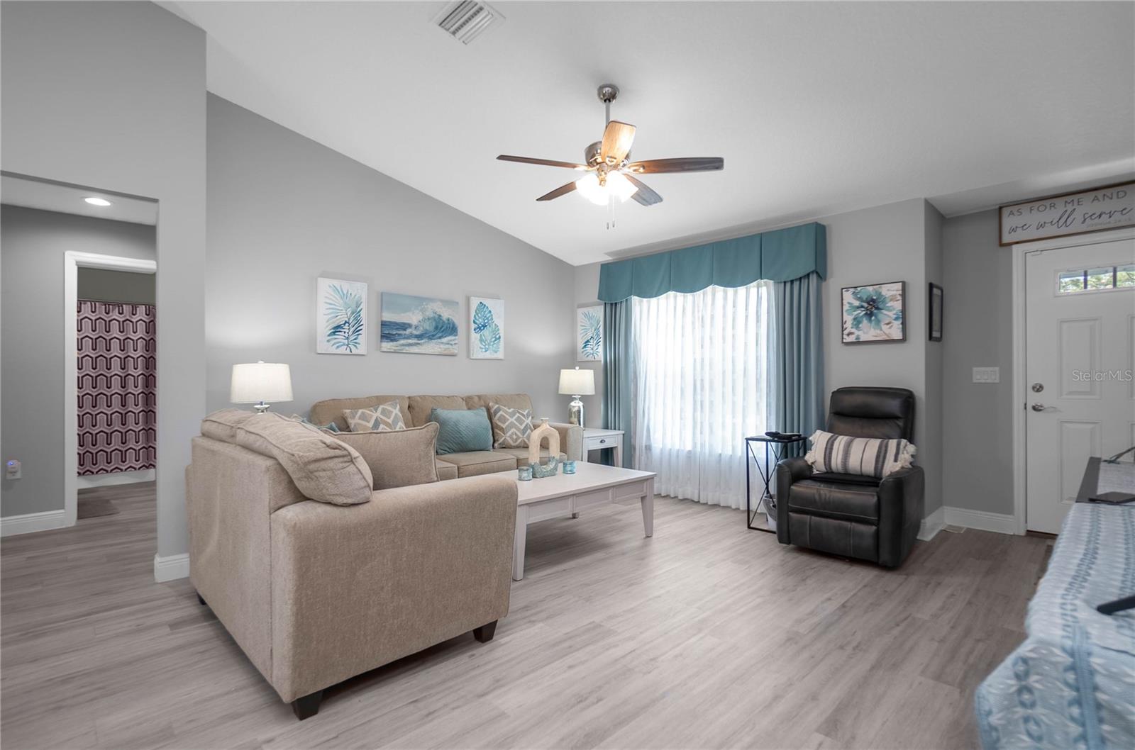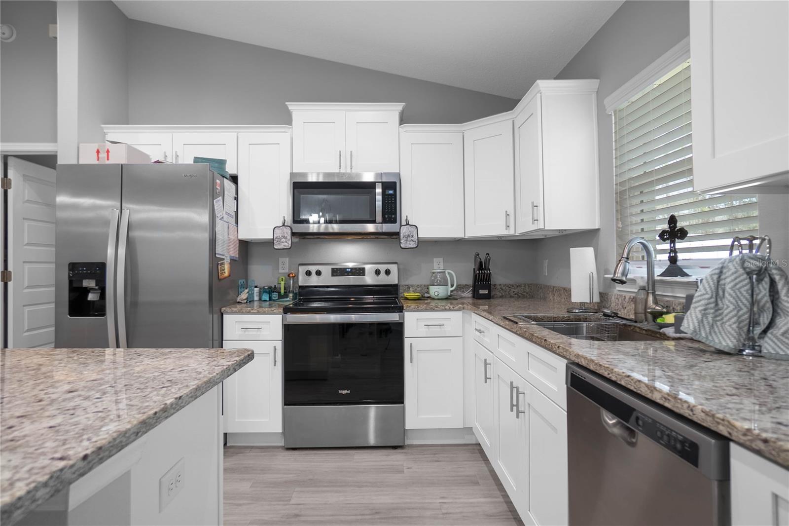 Motivado !!! Absolutamente encantador 2021 3/2/2, oferecendo 1.453 pés quadrados de espaço de estar em uma parcela bem paisagística de. Home possui uma planta baixa bem projetada com uma linda cozinha com armários de madeira branca, bancadas em granito e utensílios de aço inoxidável e bar de café da manhã da ilha. Destaques adicionais incluem belas persianas e cortinas por toda parte, lavanderia interior, um purificador de CA para maior conforto e calhas para drenagem eficiente. A espaçosa suíte master possui um closet e um banheiro privativo com pias duplas. Desfrute de uma vida ao ar livre com uma varanda exibida com pisos de ladrilhos, uma entrada externa coberta, cercas parciais, galpão e uma área de jardim cercada, ideal para os entusiastas da jardinagem.