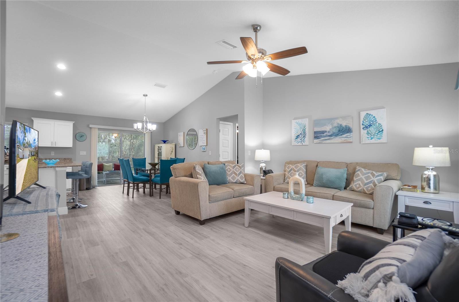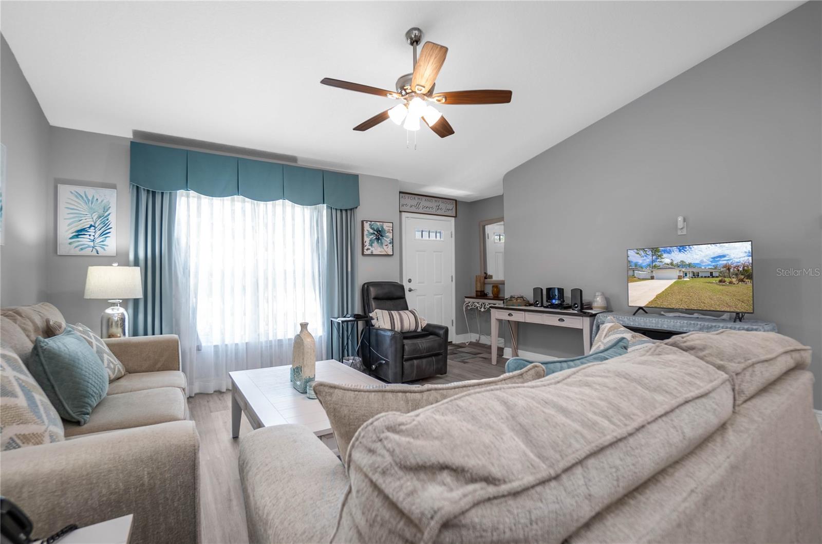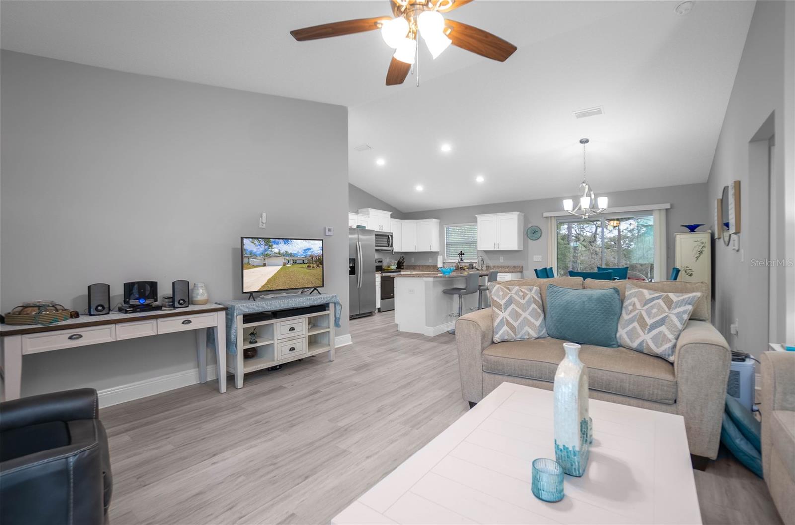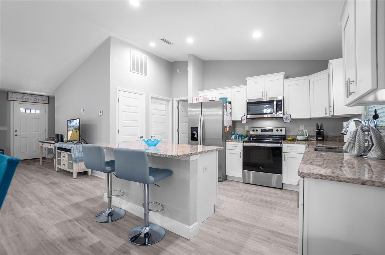 Motivado !!! Absolutamente encantador 2021 3/2/2, oferecendo 1.453 pés quadrados de espaço de estar em uma parcela bem paisagística de. Home possui uma planta baixa bem projetada com uma linda cozinha com armários de madeira branca, bancadas em granito e utensílios de aço inoxidável e bar de café da manhã da ilha. Destaques adicionais incluem belas persianas e cortinas por toda parte, lavanderia interior, um purificador de CA para maior conforto e calhas para drenagem eficiente. A espaçosa suíte master possui um closet e um banheiro privativo com pias duplas. Desfrute de uma vida ao ar livre com uma varanda exibida com pisos de ladrilhos, uma entrada externa coberta, cercas parciais, galpão e uma área de jardim cercada, ideal para os entusiastas da jardinagem.