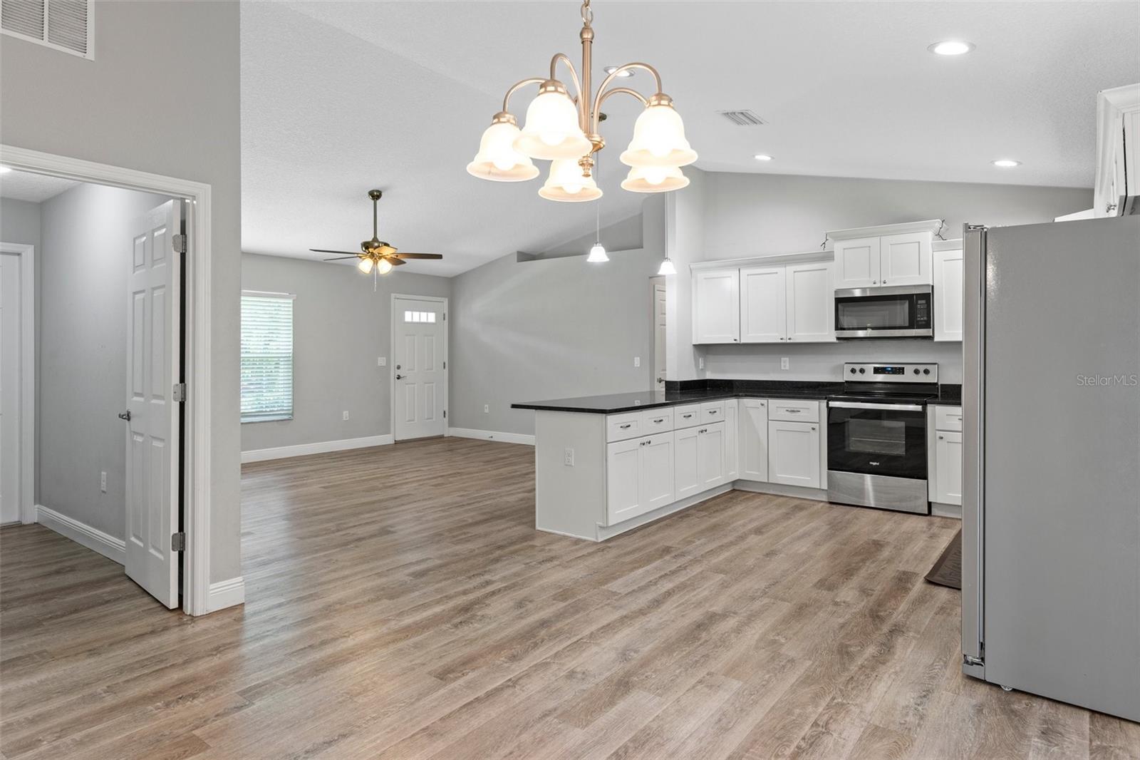 Não perca esse valor excepcional em Citrus Springs, Flórida! Esta casa quase nova de 3 quartos e 2 banheiros foi construída em 2022 e oferece conforto moderno com um layout de conceito aberto, perfeito para vida diária e entretenimento. A cozinha possui bancadas em granito, armários de agitadores brancos e uma suíte completa de aparelhos. O design do quarto dividido fornece privacidade, com a suíte primária localizada em um lado da casa, junto com a lavanderia e o acesso à garagem. Dois quartos adicionais e um banho completo estão posicionados no lado oposto. Saia de um pátio de quintal ideal para grelhar, com lotes vagos atualmente na lateral e traseira para maior privacidade. Desfrute da proximidade dos populares Rails to Trails Bike Path e Citrus Springs Community Park com um parque de playground, diamante de beisebol e quadra de basquete.