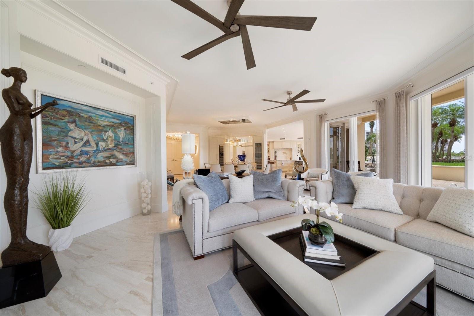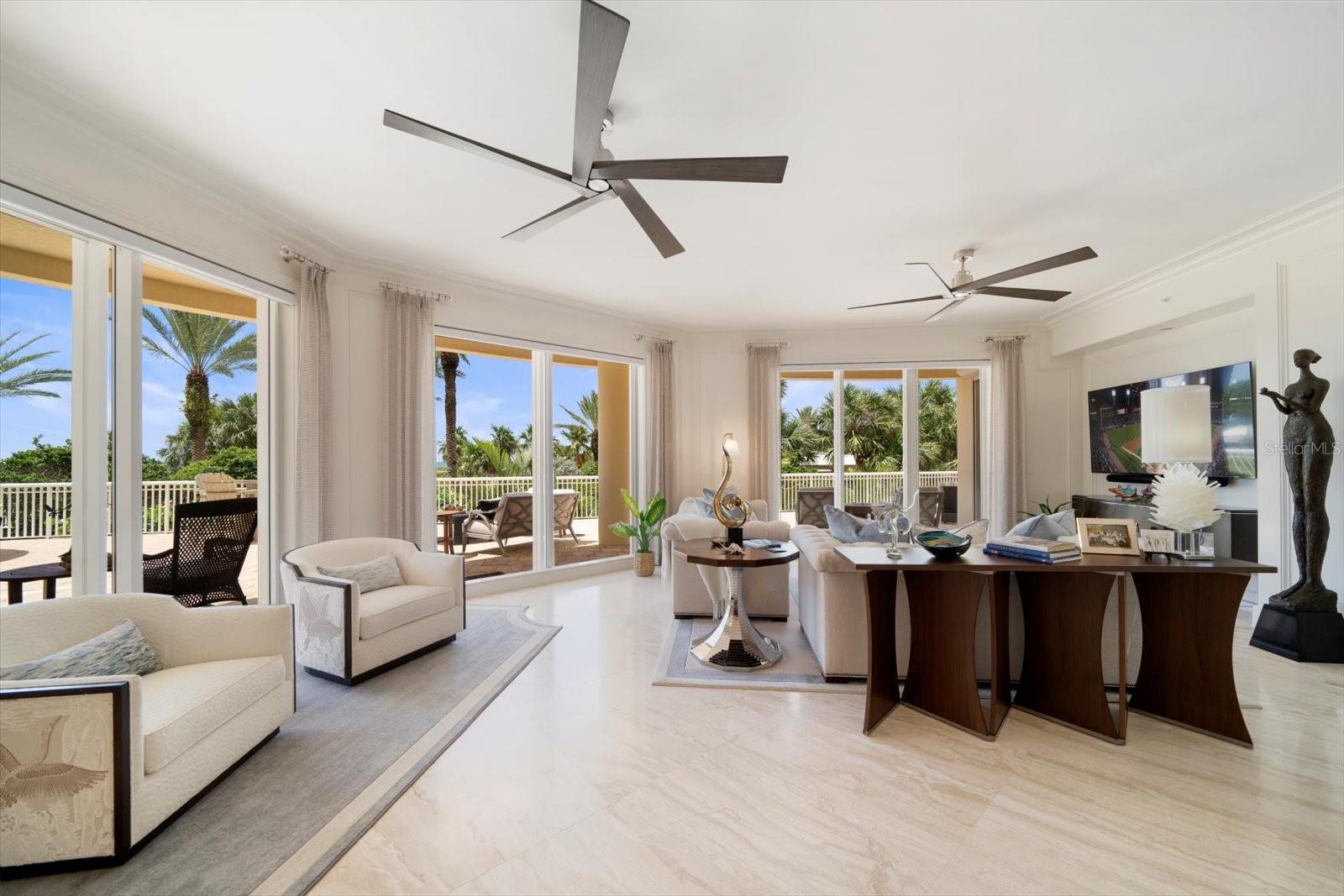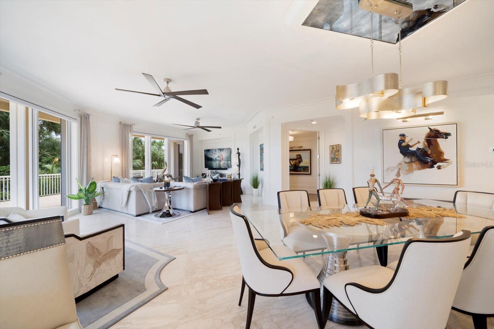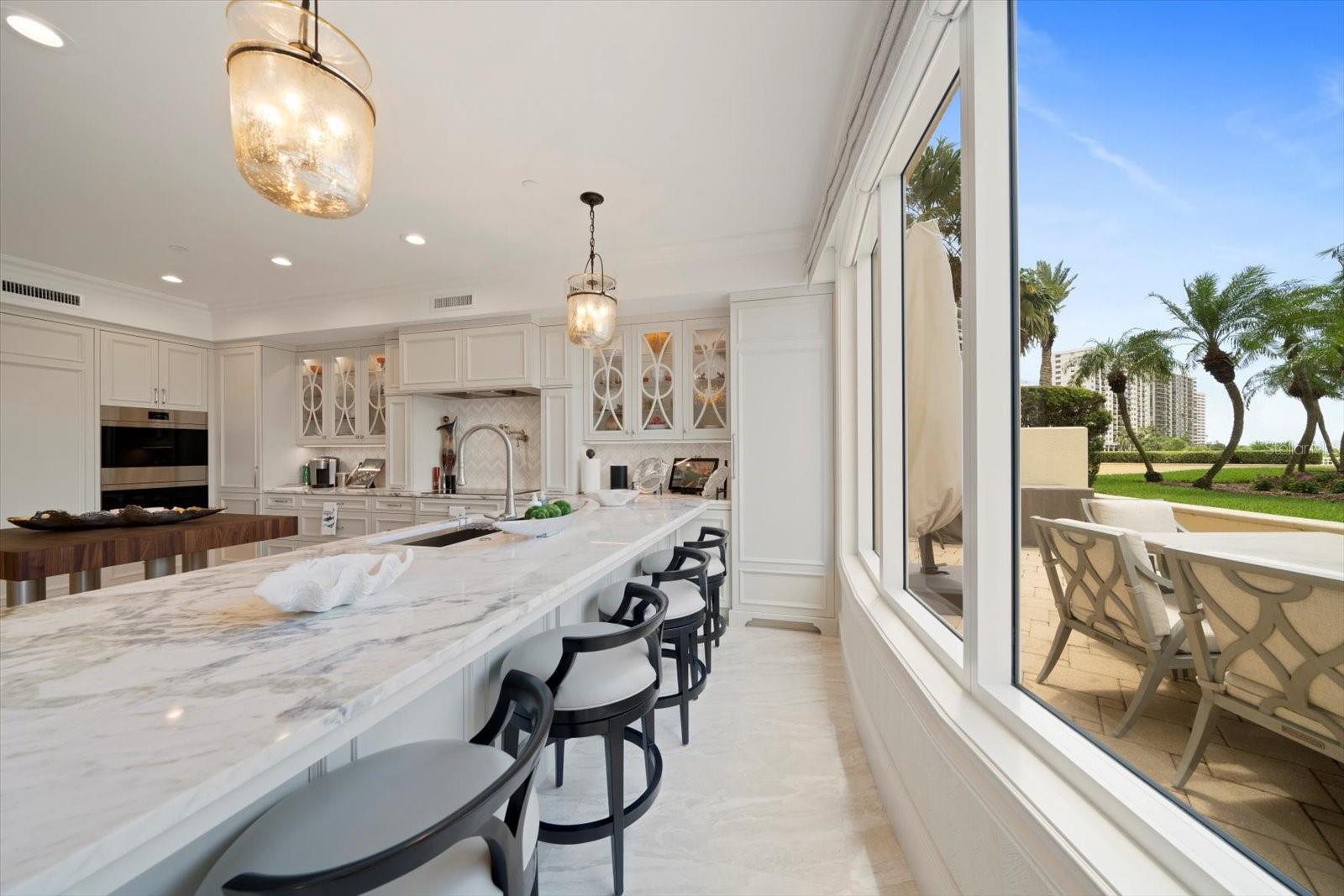 Experimente um luxo incomparável neste deslumbrante condomínio à beira do Golfo, na prestigiosa comunidade Meridian Sand Key. Cercada por uma paisagem tropical serena, folhagem exuberante e palmeiras ondulantes, esta residência oferece comodidades de primeira classe, incluindo portão vigiado, concierge e gerente interno, piscina em estilo resort e academia de ginástica de última geração. centro. Ao entrar, você é recebido por acabamentos de design, molduras personalizadas e lambris elegantes que elevam cada canto da casa. Pisos de mármore reluzentes levam à área de estar de conceito aberto, onde a espaçosa cozinha gourmet possui armários personalizados, eletrodomésticos de aço inoxidável e um balcão para café da manhã, ideal para refeições casuais. A sala de jantar formal adjacente, completa com embutidos e uma adega refrigerada, flui perfeitamente para a sala da família. Paredes deslizantes, com persianas anti-furacão, abrem para um terraço envolvente, expandindo seu espaço de entretenimento e convidando brisas suaves e vistas deslumbrantes do Golfo no interior. A suíte principal é um santuário de conforto, com uma aconchegante área de estar e acesso direto ao terraço. Seu luxuoso banheiro tipo spa foi projetado para o máximo relaxamento. Os quartos adicionais são igualmente bem equipados, cada um com banheiro privativo. Esta remodelação inspirada no designer vem TOTALMENTE MOBILIADA, com uma coleção de arte incrível encomendada especificamente para a unidade, fazendo com que você sinta que está vivendo nas páginas de uma revista de luxo. Este excepcional condomínio também inclui sala de bilhar e jogos, além de elegantes salas de reunião, perfeitas para socializar. Localizada a poucos minutos de boutiques, restaurantes sofisticados, praias cintilantes e dois aeroportos, esta propriedade é simplesmente incrível, oferecendo um estilo de vida de sofisticação e charme costeiro.