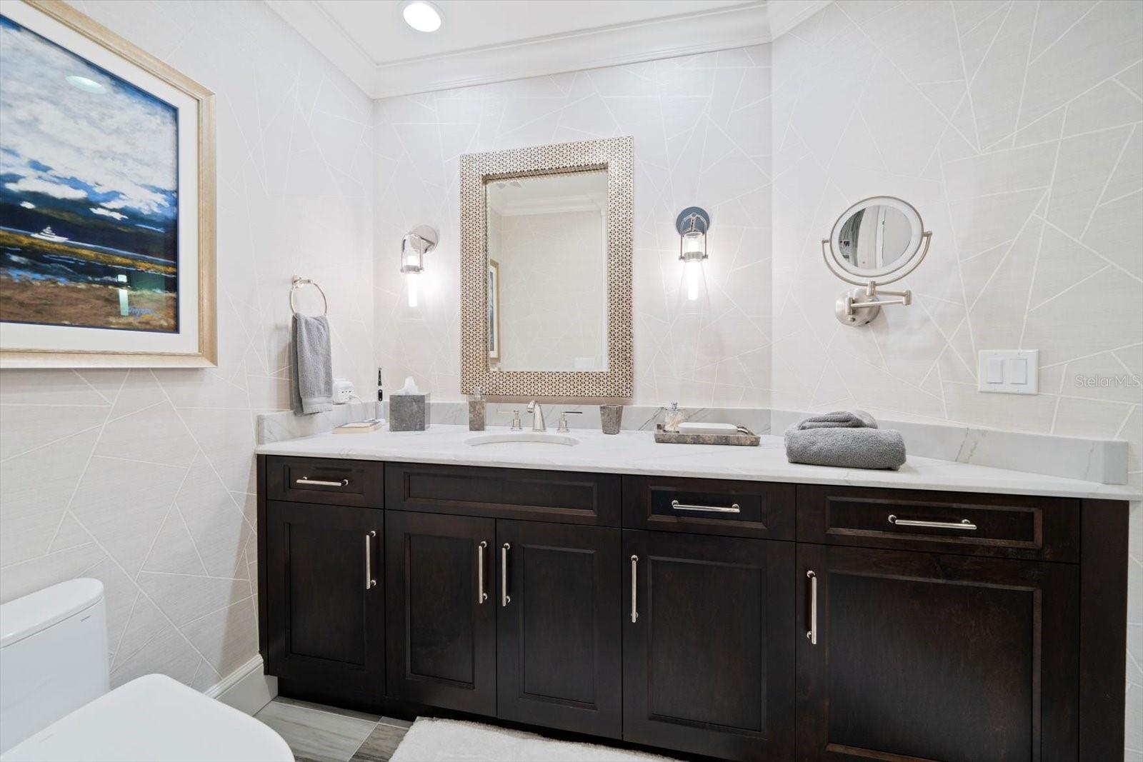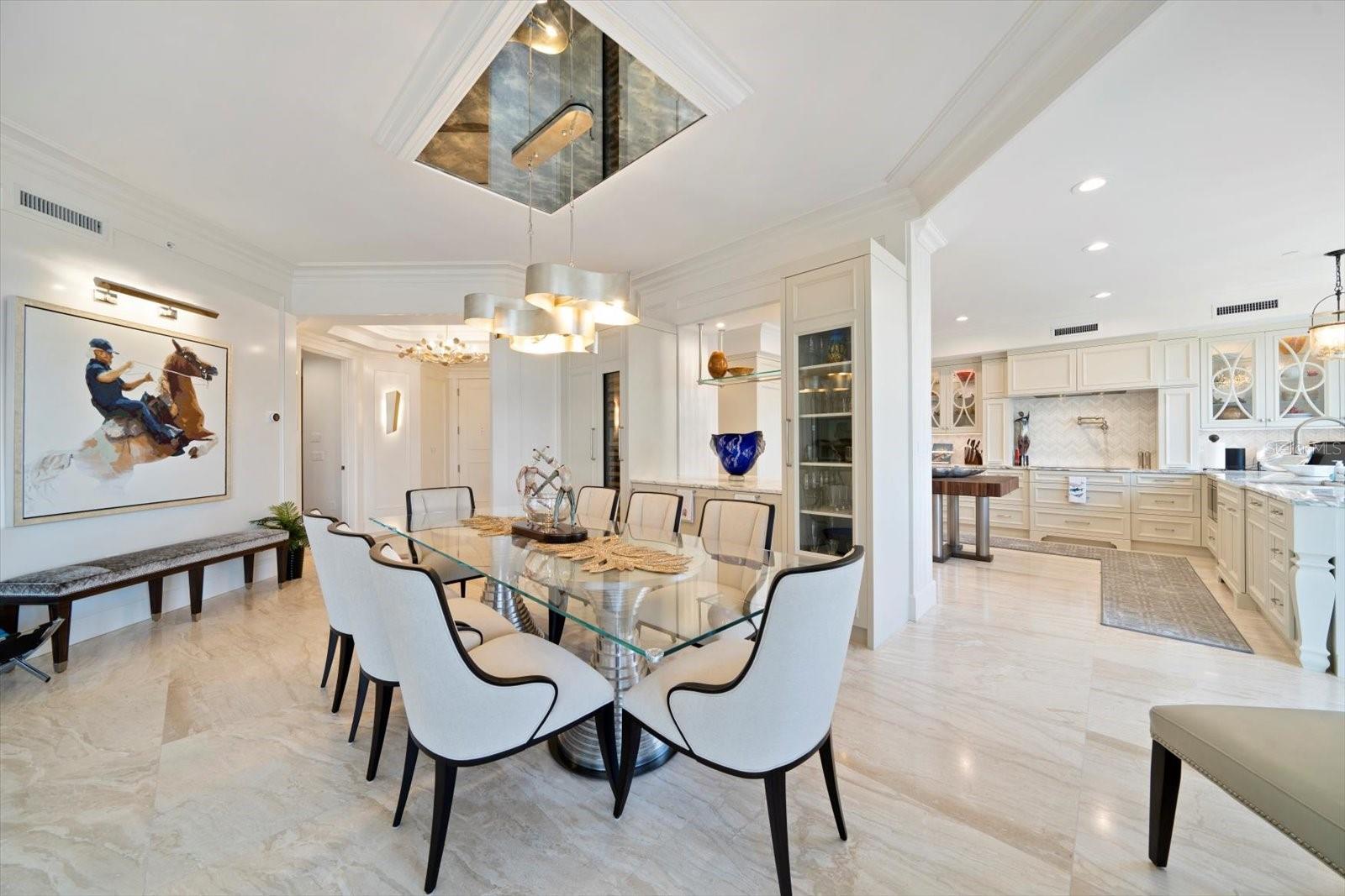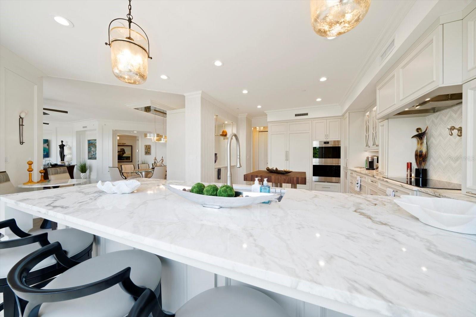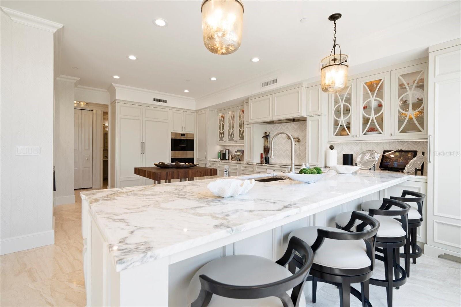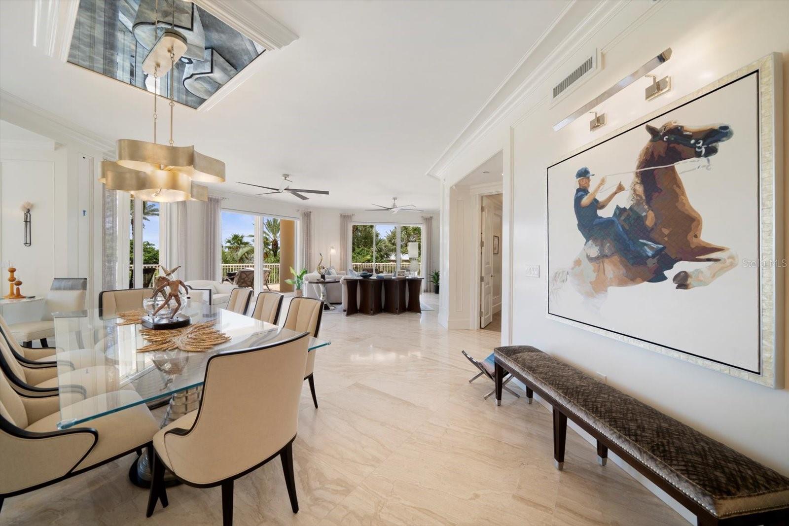 Experimente um luxo incomparável neste deslumbrante condomínio à beira do Golfo, na prestigiosa comunidade Meridian Sand Key. Cercada por uma paisagem tropical serena, folhagem exuberante e palmeiras ondulantes, esta residência oferece comodidades de primeira classe, incluindo portão vigiado, concierge e gerente interno, piscina em estilo resort e academia de ginástica de última geração. centro. Ao entrar, você é recebido por acabamentos de design, molduras personalizadas e lambris elegantes que elevam cada canto da casa. Pisos de mármore reluzentes levam à área de estar de conceito aberto, onde a espaçosa cozinha gourmet possui armários personalizados, eletrodomésticos de aço inoxidável e um balcão para café da manhã, ideal para refeições casuais. A sala de jantar formal adjacente, completa com embutidos e uma adega refrigerada, flui perfeitamente para a sala da família. Paredes deslizantes, com persianas anti-furacão, abrem para um terraço envolvente, expandindo seu espaço de entretenimento e convidando brisas suaves e vistas deslumbrantes do Golfo no interior. A suíte principal é um santuário de conforto, com uma aconchegante área de estar e acesso direto ao terraço. Seu luxuoso banheiro tipo spa foi projetado para o máximo relaxamento. Os quartos adicionais são igualmente bem equipados, cada um com banheiro privativo. Esta remodelação inspirada no designer vem TOTALMENTE MOBILIADA, com uma coleção de arte incrível encomendada especificamente para a unidade, fazendo com que você sinta que está vivendo nas páginas de uma revista de luxo. Este excepcional condomínio também inclui sala de bilhar e jogos, além de elegantes salas de reunião, perfeitas para socializar. Localizada a poucos minutos de boutiques, restaurantes sofisticados, praias cintilantes e dois aeroportos, esta propriedade é simplesmente incrível, oferecendo um estilo de vida de sofisticação e charme costeiro.