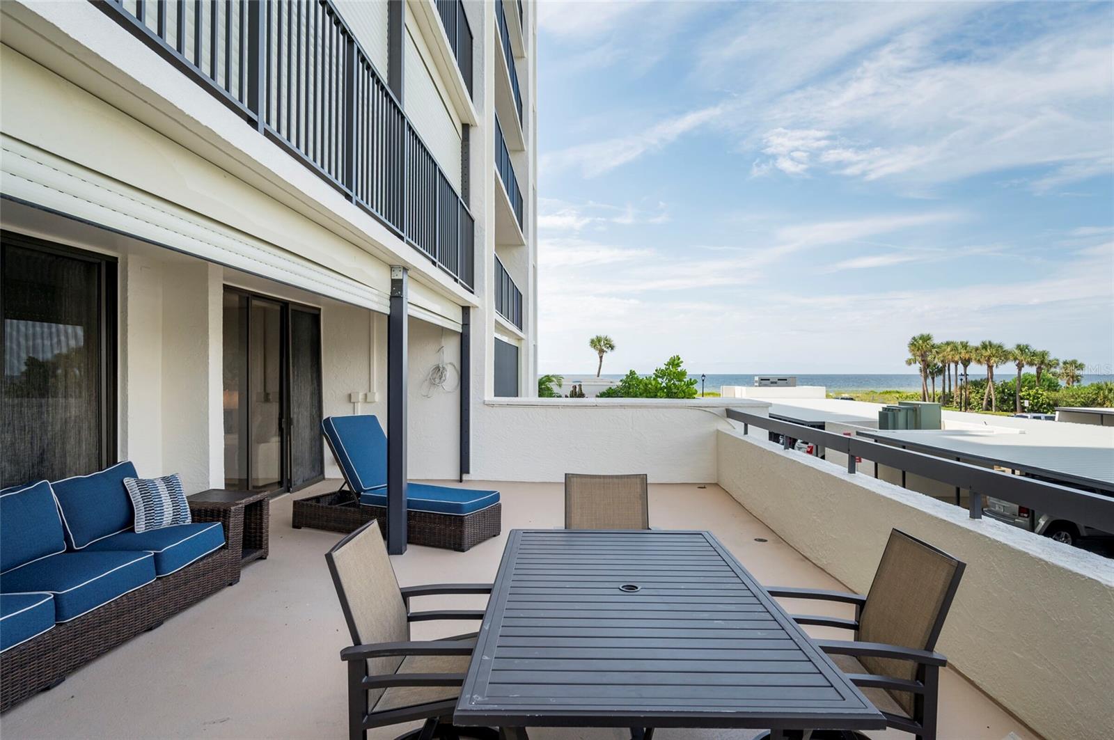 UNIDADE RARA - VARANDA GRANDE DE 500 pés quadrados! Saia da sua residência na praia direto para a área da piscina, sem necessidade de elevador! Este condomínio de luxo totalmente mobiliado e pronto para uso oferece uma planta aberta impecável com dois quartos amplos e dois banheiros de inspiração spa requintadamente renovados. O piso de cerâmica flui por toda parte, realçando o ambiente sofisticado. A cozinha de conceito aberto e a área de estar estendem-se perfeitamente até o pátio de grandes dimensões, onde as vistas deslumbrantes do Golfo e da Intracoastal o aguardam. Este espaço ao ar livre altamente cobiçado é perfeito para entreter ou desfrutar de um pôr do sol hipnotizante. Atualizações notáveis incluem persianas anti-furacão, tetos lindamente texturizados, AC mais recente, aquecedor de água e lavadora/secadora. Ambas as casas de banho foram recentemente remodeladas, apresentando cores modernas e acabamentos premium. A suíte master é um retiro privado, com acabamentos requintados e portas de correr que dão acesso ao pátio, mesclando a vida interna e externa. Situados em um condomínio de prestígio perto dos restaurantes sofisticados e das boutiques de Sand Key, os moradores desfrutam de uma piscina em estilo resort com amplo espaço para relaxar, cabanas Tiki para reuniões e acesso direto às areias brancas e imaculadas da praia. O prédio também oferece uma sala comunitária para realização de eventos de maior porte. Este condomínio inclui estacionamento coberto (#108) e um armário de armazenamento (#108). Com sua localização privilegiada, você está a poucos passos das vibrantes lojas de Sand Key e de restaurantes renomados como Columbia e Backwaters. O bonde, cujo local de coleta está convenientemente localizado fora da comunidade, oferece fácil acesso às abundantes opções de restaurantes, compras e entretenimento de Clearwater. O Aeroporto Internacional de Tampa fica a 20 minutos de carro, e Tampa e São Petersburgo estão próximas para aventuras sem fim.