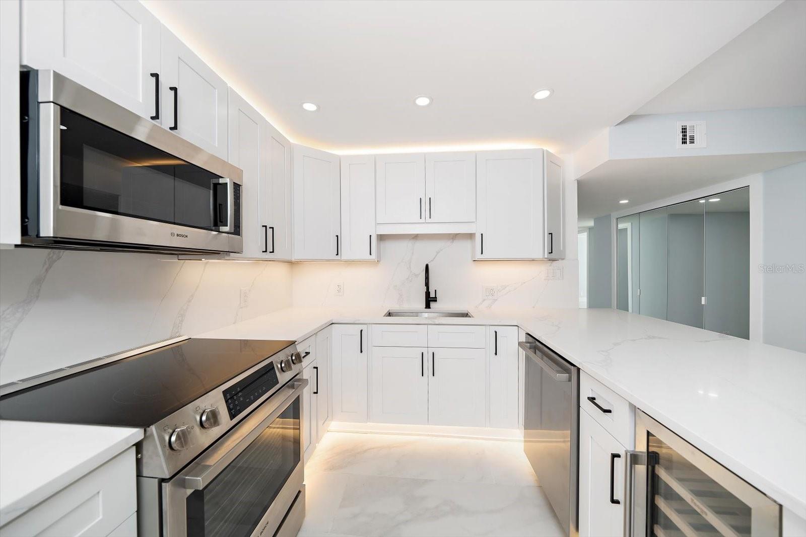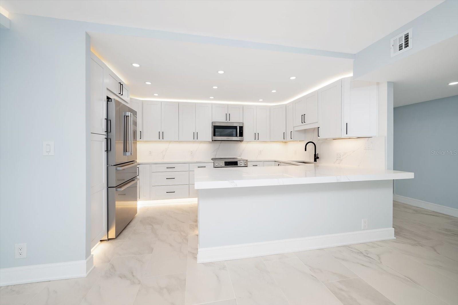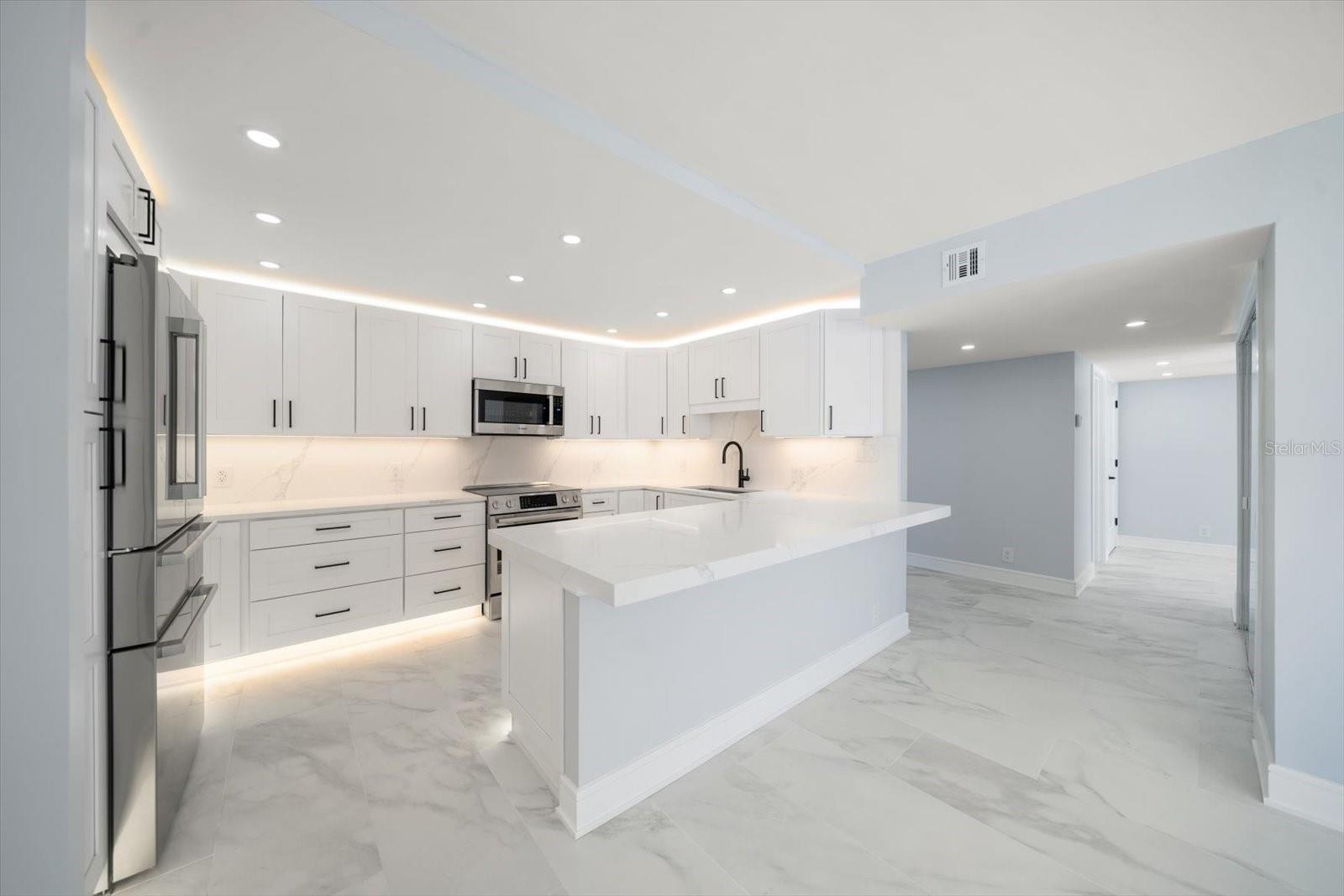 COBERTURA DE CANTO COM VISTAS INCRÍVEIS PARA O GOLFO E PARA A BAÍA!! ! Este novo condomínio de design personalizado de dois quartos e dois banheiros tem vistas incríveis do Golfo do México e da hidrovia intracoastal. Este condomínio fica ao longo das praias de areia branca de Sand Key. Esta unidade está localizada no último andar e oferece uma planta aberta. Assim que você entra, seu olhar chama a atenção para o impressionante piso de porcelana com veios leves e rodapés personalizados que percorrem todo o edifício. Este condomínio possui iluminação ambiente/atmosférica para criar o clima de entretenimento. A cozinha aberta com design personalizado conta com eletrodomésticos Bosch de última geração, balcão de quartzo Calacatta Cielo com backsplash completo, armários shaker brancos com fechamento suave e iluminação personalizada. Os banheiros possuem chuveiros de vidro personalizados com chuveiros duplos, pias iluminadas, espelhos iluminados e bidê. Todos os quartos têm portas de vidro deslizantes que dão para a sua varanda para relaxar enquanto observa o pôr do sol sobre a água! Este edifício é fechado com uma entrada de guarda e o edifício real é seguro com uma entrada com teclado numérico. A sala de recreação, lobby e corredores foram recentemente atualizados. As características adicionais deste edifício são a piscina aquecida que fica ao longo da praia, o grande Pavilhão Tiki junto com os Tiki na praia e uma área de churrasqueira ao ar livre! Esta unidade vem com um lugar de estacionamento na cave e um cacifo. Há muito estacionamento para hóspedes também. Ande de bicicleta ou pegue um bonde para chegar a Clearwater Beach e desfrutar de compras, bares e restaurantes, passeios de pesca e aluguel de esportes aquáticos. Torne-se membro do centro de vela em Sand Key e navegue até o pôr do sol.