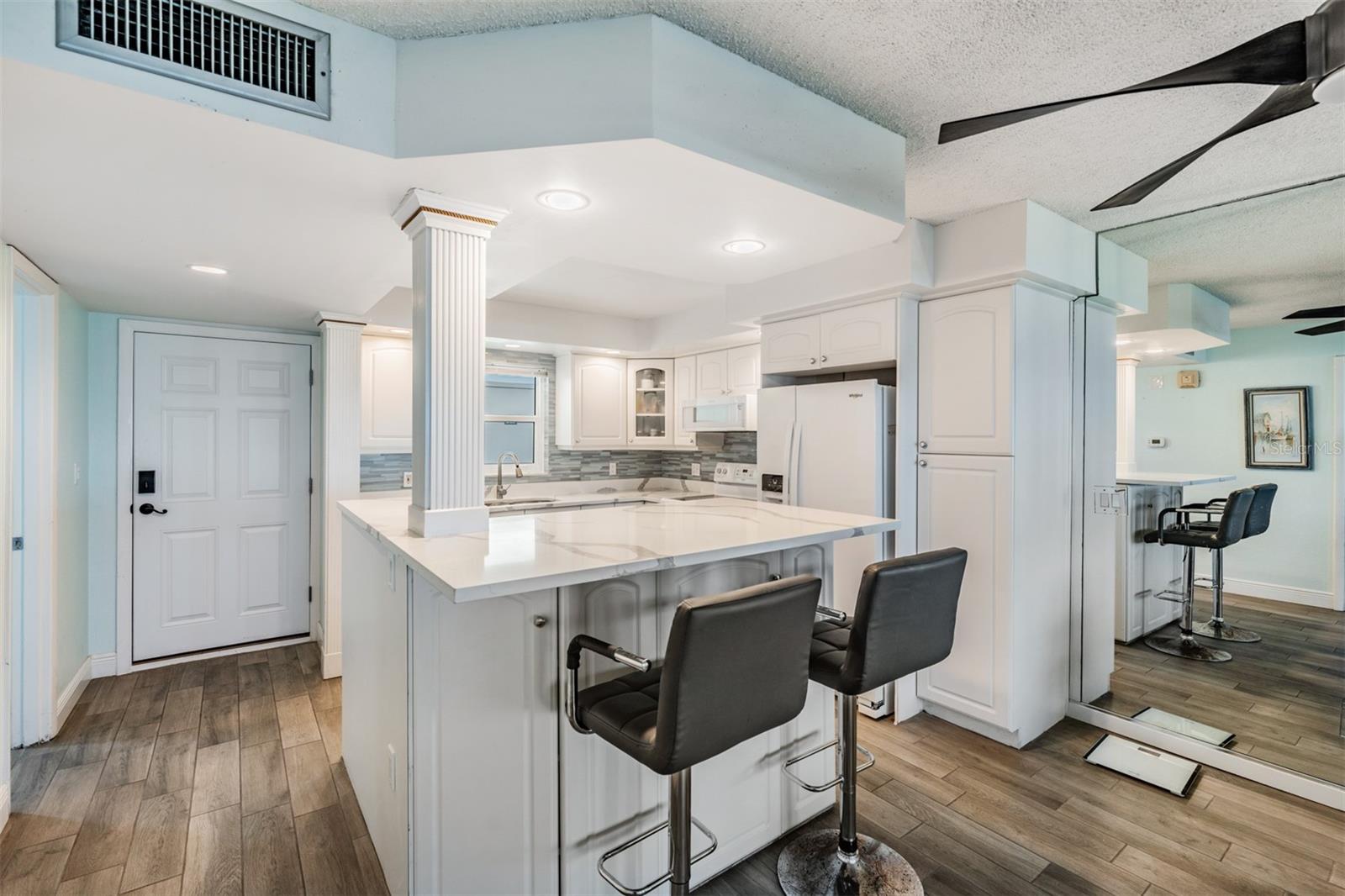 Atualização de preço enorme !!!! Bem -vindo ao seu paraíso costeiro! O condomínio possui 1 quarto espaçoso com banheiro privativo e um meio banheiro adicional para os hóspedes, todos adornados com elegantes pisos de azulejos de cerâmica por toda parte. A área de estar de conceito aberto é perfeito para entretenimento, destacado por grandes janelas com persianas motorizadas, que oferecem vistas deslumbrantes do Golfo. Cozinha moderna com utensílios de hidromassagem e belas bancadas de quartzo, tornando a preparação das refeições uma delícia. Entre na sua varanda privada para desfrutar do pôr do sol de tirar o fôlego ou relaxar pela piscina comunitária e pela banheira de hidromassagem. Aproveite a conveniência de seu próprio estacionamento subterrâneo privado, com estacionamento adicional disponível. O condomínio está equipado com o PGT Wind Guard Cat 5 Windows instalado em 2022 para maior segurança e eficiência energética. Uma lavadora e secadora estão convenientemente localizadas em área dedicada comum, seu próprio armário de armazenamento nº 4 fica em frente à unidade para facilitar o acesso. Com um centro de fitness, entrada segura e uma localização privilegiada a poucos minutos de restaurantes, compras e atrações, este condomínio é perfeito para uma residência permanente ou uma escapada de férias. Não perca esta oportunidade incrível - faça uma visualização hoje!