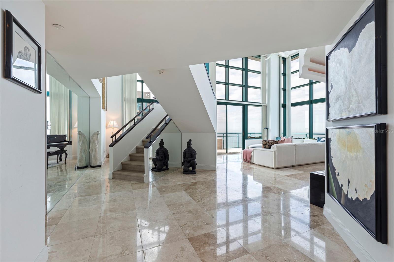 A vida de luxo na praia de luxo-uma rara cobertura de dois andares, uma no principal ultimo, nas margens intocadas da Chave de Areia. Esta residência extraordinária é uma jóia costeira, subindo acima da costa de Clearwater com vistas panorâmicas de tirar o fôlego do Golfo da América. Spinando os pisos 19 e 20, a casa ocupa uma posição muito procurada no sudoeste, inundada com sol o ano todo que enche todos os espaço com um brilho quente e dourado. A varanda abrangente expansiva cria um oásis flutuante, ideal para momentos sofisticados divertidos ou serenos particulares. Uma fusão perfeita da sofisticação moderna e da elegância atemporal, esta casa simboliza a vida refinada à beira -mar - sem beleza e resiliência, sem danos causados por furacões a esta unidade primitiva. Ao entrar, você está imediatamente cativado pelos tetos altos e vistas deslumbrantes do Golfo e da praia à frente. A Vista deslumbrante ocupa o centro do palco na área de estar aberta, enquanto o designer curva escada serve como ponto focal arquitetônico, conectando graciosamente os dois níveis. À direita, a sala de jantar formal oferece vista para a praia, complementada por uma cozinha elegante com bancadas em granito escuro e armários ricos. Uma área de jantar casual fornece vistas adicionais do Golfo e acesso ao terraço panorâmico. No lado oposto do piso principal, o primeiro quarto de hóspedes - atualmente usado como escritório - afeta um armário e banheiro completo. Adjacente a isso, há uma suíte de convidado de grandes dimensões, com um grande armário e um luxuoso banho de jato, projetado para o melhor conforto. No andar de cima, a sala de família/mídia aberta tem vista para a área de estar, oferecendo um espaço ideal para entretenimento, fornecendo vistas mágicas do Golfo e acesso a uma varanda superior privada. A majestosa suíte primária, ocupando a maior parte do andar superior, serve como o melhor retiro. Um corredor leva a armários generosos separados, seguidos por dois banheiros amplos inspirados em spa, cada um com uma banheira de imersão e um espaçoso chuveiro. Todos os cômodos desta cobertura oferecem vistas espetaculares de água e praia com acesso direto às varandas envolventes, tornando esta residência uma verdadeira raridade. Um elevador semi-privado fornece acesso direto à sua cobertura, enquanto uma garagem privada de dois carros com armazenamento adicional garante conveniência e elegância. Como parte da comunidade de última hora exclusiva, os moradores desfrutam de comodidades de primeira linha: três piscinas em estilo resort, banheiras de hidromassagem, quadras de tênis, um centro de fitness, uma sala de bilhar e acesso direto à praia-todos a poucos passos das areias de areia branca de açúcar. Localizado a poucos minutos da energia vibrante de Clearwater Beach e proximidade com o renomado Belleair e a apenas 30 minutos do Aeroporto Internacional de Tampa, locais esportivos e entretenimento superior, é a mistura perfeita de tranquilidade e conveniência. Esta cobertura excepcional de dois andares à beira-mar é uma verdadeira raridade, oferecendo luxo incomparável, exclusividade e beleza costeira de tirar o fôlego. Ele combina a vida luxuosa com as vistas panorâmicas do Golfo, tornando-a uma oportunidade única na vida.