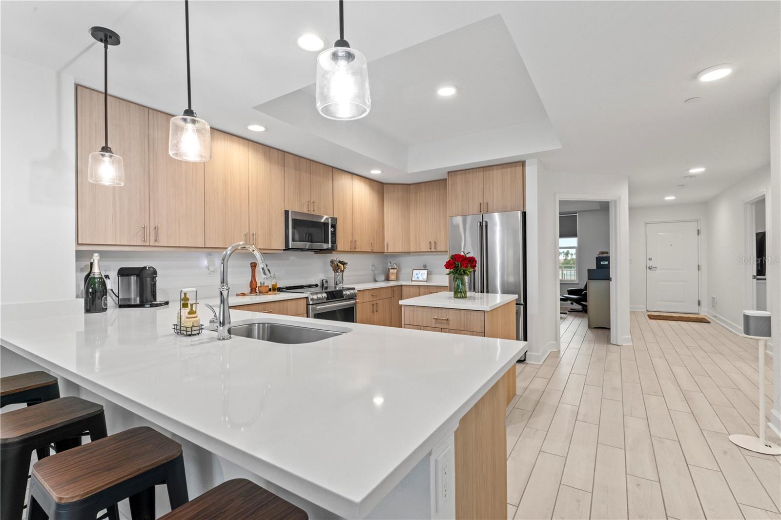 Opção de arrendamento de longo prazo disponível por US $ 6.700 por mês. Totalmente mobiliado! Bem-vindo ao porto de Dolphin na 125 Island Way, uma comunidade exclusiva de condomínio à beira-mar, aninhada no bairro procurado da ilha Estates de Clearwater Beach. Esta residência recém -construída incorpora a vida costeira sofisticada, ostentando comodidades modernas e vistas deslumbrantes da hidrovia intracoastal. Com 1.850 pés quadrados, este condomínio elegante oferece 3 quartos espaçosos e 2 banheiros, fornecendo o cenário perfeito para relaxamento e entretenimento. Concluído em 2022, a unidade mostra uma arquitetura contemporânea elegante com acabamentos luxuosos, incluindo uma cozinha gourmet equipada com aparelhos premium e bancadas de pedra. Entre na varanda expansiva de 30 pés e mergulhe em vistas panorâmicas da água, um local ideal para desfrutar do pôr do sol hipnotizante sobre a hidrovia intracoastal. Os moradores podem se entregar às comodidades em estilo resort, incluindo uma piscina e spa aquecidos, garantindo lazer e relaxamento durante todo o ano. Para maior conveniência, a propriedade inclui dois lugares de estacionamento reservados - um sob o prédio e outro fora - fornecendo segurança e facilidade de acesso. Localizada na prestigiada comunidade da ilha Estates, esse condomínio fica a poucos momentos da mundialmente famosa praia de Clearwater, comemorada por suas areias brancas em pó e atmosfera vibrante. Com proximidade com as atividades de compras, refeições e recreação, essa propriedade excepcional promete um estilo de vida de conforto, conveniência e elegância costeira. Os recorrers de barco para um barco de até 60 pés estão disponíveis para compra separadamente.