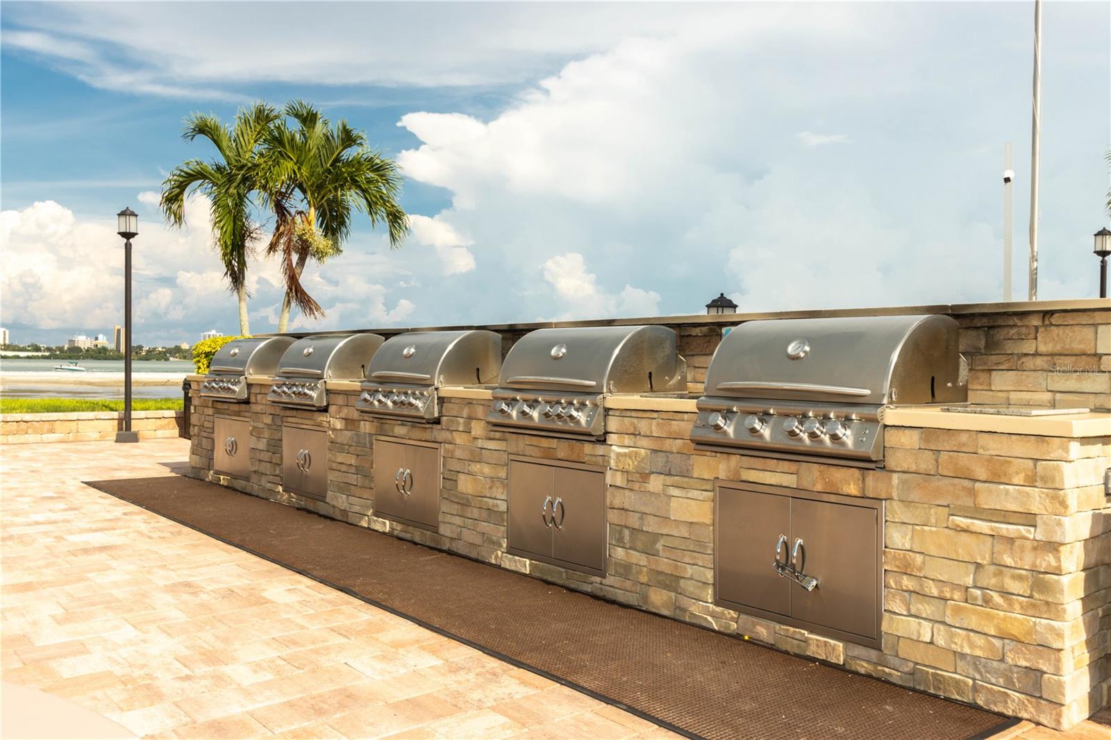 Persianas de furacões, churrasqueira ao ar livre, calçada, portas deslizantes