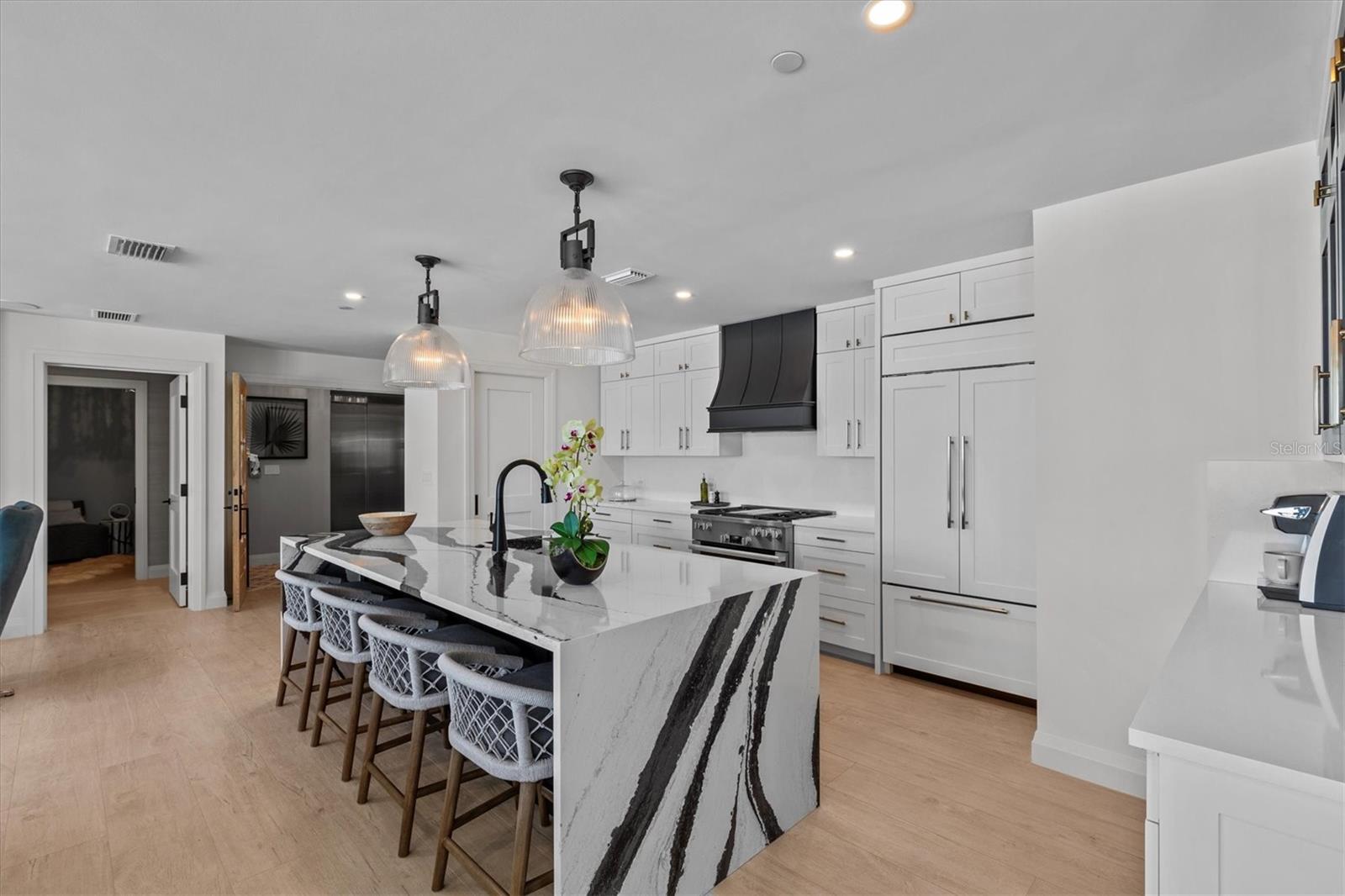 Experimente o melhor em luxo na praia que vive em Pura Vida Clearwater Beach, onde a sofisticação combina perfeitamente com a elegância. Este condomínio excepcional de 2.240 pés quadrados possui dois quartos, uma sala de bônus, um escritório e dois banheiros e meio, projetados com um layout de conceito aberto que convida a luz natural e maximiza a vista para o oceano. As áreas de estar, jantar e cozinha fluem sem esforço para varandas privadas com painéis de vidro, fornecendo o cenário perfeito para relaxamento divertido e diário. Uma mistura harmoniosa de móveis modernos e tradicionais cria uma estética de transição que exala luxo habitável, enquanto acabamentos personalizados e acessórios de designer de Franco A. Pasquale Design associados elevam o ambiente refinado da casa. A cozinha gourmet inspirada no chef é uma obra-prima, com aparelhos MiEle e sub-zero de primeira linha, bancadas elegantes de quartzo, armários personalizados, geladeira de vinho, fogão a gás e uma máquina de lavar louça discretamente integrada e geladeira. A peça central é uma impressionante ilha de quartzo em cascata com pia profunda integrada, ideal para preparar refeições enquanto desfruta de vistas deslumbrantes à beira -mar. Após o jantar, o quarto principal fornece um retiro sereno com proporções generosas, janelas do chão ao teto e uma varanda privada, perfeita para o sol. Seu banheiro semelhante ao spa de suíte possui pias duplas, um armário de água separado, uma vaidade dedicada, uma banheira de imersão e um chuveiro encerrado de vidro, todos aprimorados por um luxuoso aquecedor de toalhas. O closet Walk-in é nada menos que um paraíso inspirado em boutique, completo com guarda-roupa iluminado, lustre, armário de jóias espaçosos e uma lavadora e secadora escondida com sistema de filtração de água, para obter a melhor conveniência. Para seus convidados fora da cidade, o quarto de hóspedes oferece privacidade e conforto com vistas para o oceano e seu próprio banheiro privativo. O closet de grandes dimensões foi cuidadosamente reimaginado em um encantador recanto adormecido, com beliches e um mural personalizado de Clearwater Beach, garantindo que todo hóspede tenha uma estadia memorável. Esta propriedade oferece acesso fechado e seguro, com dois vagas de estacionamento designadas que pré-conectadas para estações de carregamento. Um elevador privado seguro se abre diretamente para o hall de entrada, com uma entrada segura adicional para adicionar a paz de espírito. Os recursos práticos incluem uma sala de armazenamento de bicicleta, um armário de praia designado e uma espaçosa unidade de armazenamento com ar-condicionado. Situado no coração de Clearwater Beach, esta localização privilegiada oferece fácil acesso a areias intocadas, experiências de refeições vibrantes, compras de boutique e atividades recreativas, como pickleball e um playground próximo. Depois de um dia, explorando o melhor da costa de renome da Flórida, desenrolando a piscina e o spa de grandes dimensões, permanecem ativos no bem nomeado Centro de Fitness ou se reúna com os amigos na sala de clubes convidativos. Combinando design luxuoso, funcionalidade atenciosa e uma localização principal à beira -mar, esta propriedade excepcional é o melhor retiro costeiro. Entre em contato conosco hoje para agendar sua exibição particular e descobrir o estilo de vida incomparável que o aguardava na Pura Vida Clearwater Beach.