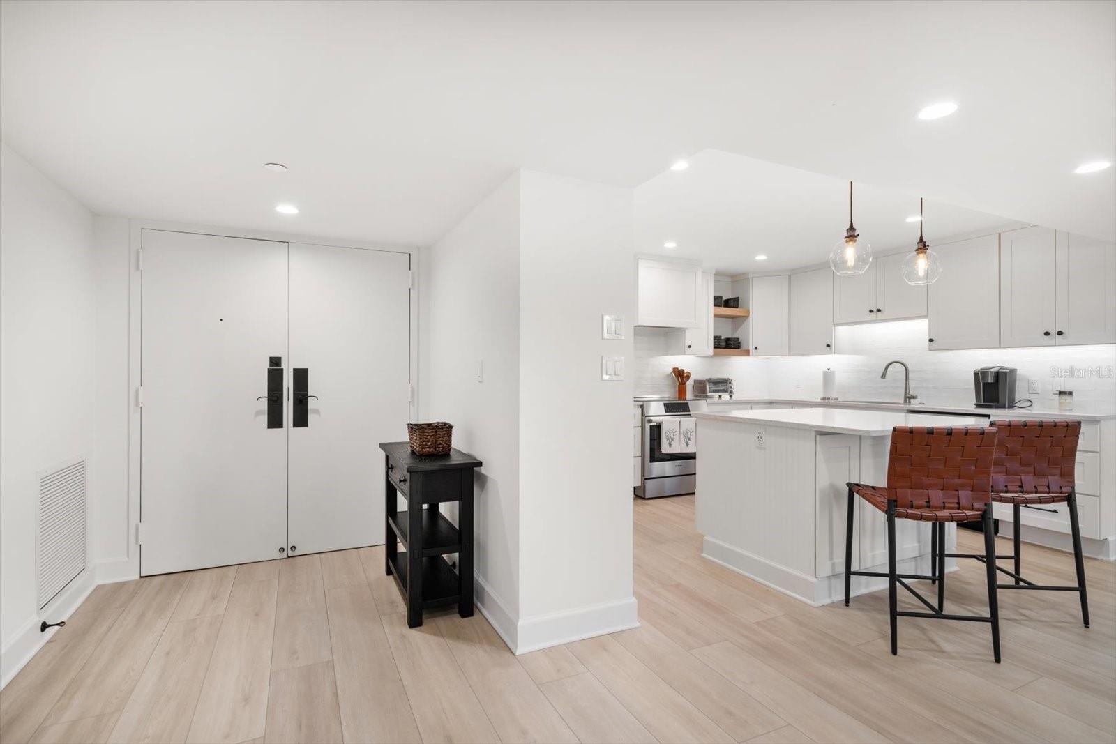 Nenhuma despesa foi poupada na remodelação excepcional deste impressionante condomínio em frente ao golfo, cuidadosamente projetado para oferecer a melhor experiência de vida costeira. Uma ampla planta aberta oferece vistas deslumbrantes do Golfo em todos os quartos, combinando perfeitamente o design sofisticado com a funcionalidade do dia a dia. A cozinha gourmet possui armários de madeira maciça, elegantes bancadas de quartzo e uma espaçosa ilha de café da manhã - perfeita para refeições casuais ou entretenimento. O luxuoso piso vinílico flui por toda a residência, complementado por armários personalizados que proporcionam armazenamento generoso. A planta baixa foi habilmente reconfigurada para incluir um escritório privado com uma vista cativante do Golfo, ideal para trabalho remoto ou um retiro tranquilo. Esta residência foi atualizada com janelas totalmente novas contra o impacto do furacão e portas de vidro deslizantes, oferecendo segurança e vistas ininterruptas da costa. A iluminação personalizada realça o ambiente sereno e costeiro, criando um espaço convidativo para relaxar e descontrair enquanto desfruta do pôr do sol espetacular todas as noites. O estacionamento subterrâneo acrescenta comodidade e tranquilidade. Localizado no condomínio fechado de South Beach IV, este condomínio fica ao longo de um dos trechos de praia mais imaculados do mundo. As comodidades da comunidade incluem uma piscina em estilo resort à beira do Golfo, cabanas tiki, churrasqueiras a gás e um pavilhão sombreado - perfeito para relaxamento e entretenimento. As inspeções de marco e SIRS foram concluídas. Idealmente situada perto de lojas, restaurantes, entretenimento e do Jolly Trolley, esta extraordinária propriedade pronta para morar oferece um estilo de vida costeiro verdadeiramente luxuoso. Móveis prontos para uso estão disponíveis como opção.