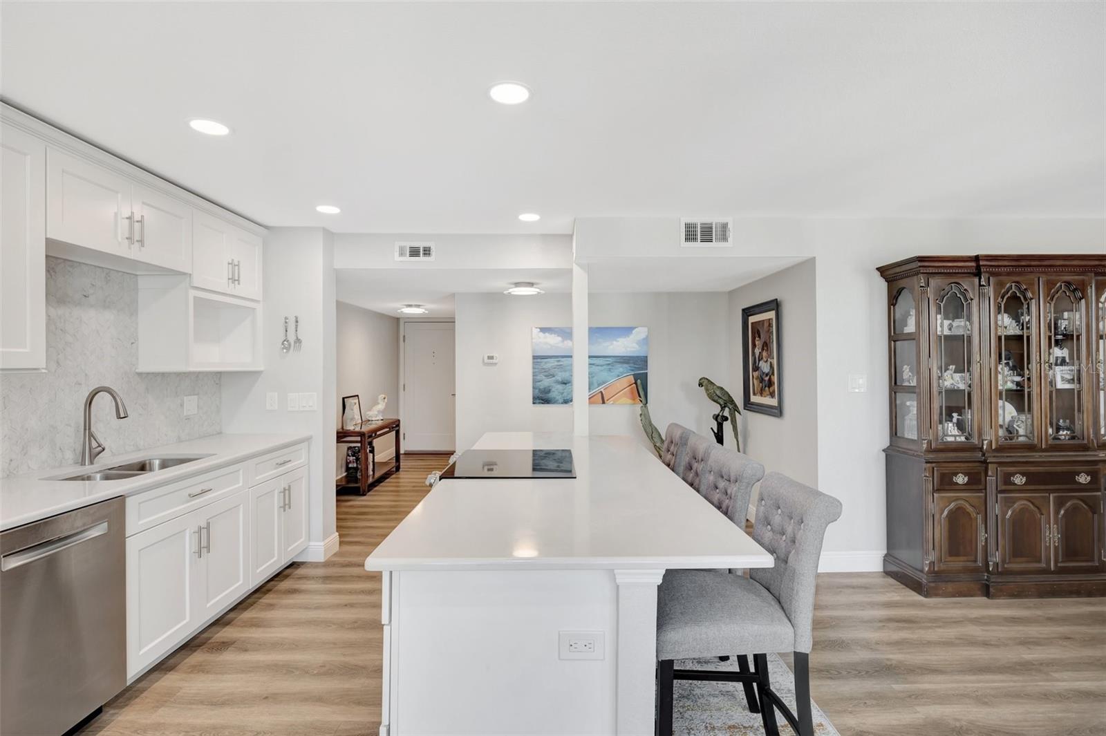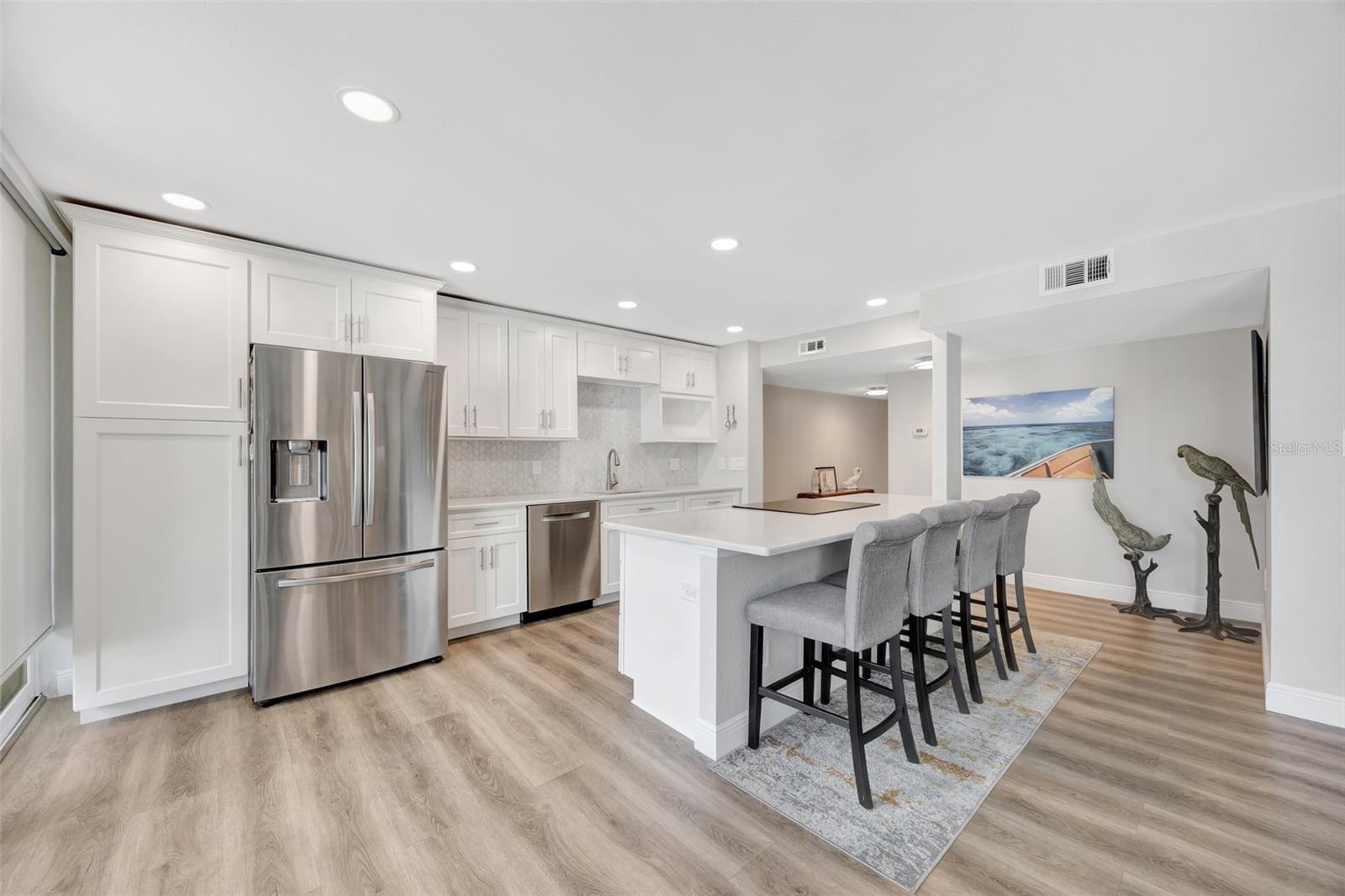 Bem-vindo a este condomínio lindamente renovado de dois quartos e dois banheiros, localizado em Clipper Cove, a comunidade Island Estates muito procurada! PRIVACIDADE! PRIVACIDADE! PRIVACIDADE! Esta espaçosa unidade de canto possui um layout de conceito aberto com tetos altos de 9 pés, novos pisos e luz natural abundante que cria uma atmosfera brilhante e arejada. A cozinha remodelada é um sonho de famílias, com uma parede de armários, utensílios de aço inoxidável, uma barra de café da manhã, iluminação embutida e uma área de jantar adjacente para acomodar refeições com amigos e familiares. A sala flui perfeitamente para 3 varandas particulares, cada uma equipada com novos controles deslizantes classificados por furacões, onde você pode desfrutar de uma vegetação relaxante e com vista para a piscina! A suíte master possui um banheiro recém -projetado com muito espaço no armário para todas as suas necessidades. Para maior conveniência, a unidade inclui uma lavadora e secadora em casa e o segundo quarto também pode ser usado como um escritório/sala de exercícios, garantindo que você tenha tudo o que pode pedir na sua unidade. Além disso, esta unidade fica a poucos passos da saída e entrada do edifício lateral, evitando o elevador e tornando a brisa de ir de e de seu condomínio. A comunidade oferece comodidades no estilo resort, incluindo uma grande piscina e spa aquecida, churrasqueiras, cabanas tiki e uma área de piquenique para diversão ao ar livre. Além disso, você terá acesso a um centro de fitness, sauna, chuveiros, clube com cozinha, mesa de bilhar e muito mais! Quer um dia de praia? Pegue o carrinho Jolly na frente para um passeio conveniente até Clearwater Beach! Island Estates abriga o Aquário de Clearwater, a Popular Island Way Grill e uma mercearia privada Publix bem na ponta dos dedos! Programe uma exibição, aproveite o estilo de vida da ilha hoje