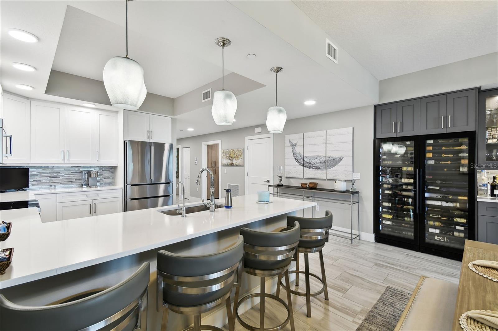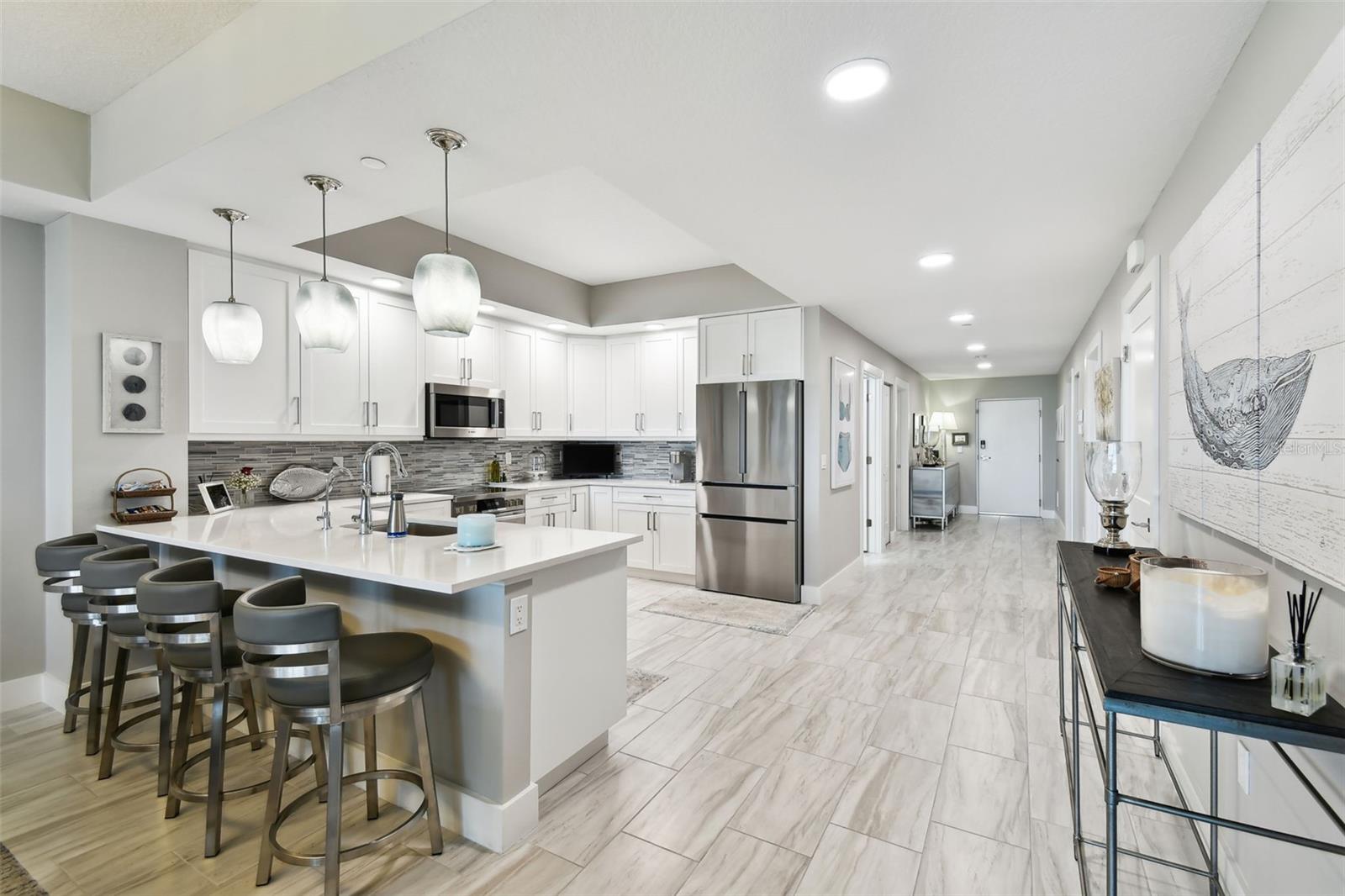 Mova -se pronto! Bem -vindo à orla de luxo que vive no seu melhor! Esta impressionante construção recém -construída oferece a mistura perfeita de vida moderna na praia. Ao entrar pela porta da frente, você ficará impressionado com os tetos altos e o piso plano aberto. Esta unidade premium está sendo oferecida na mão de chave com móveis de ponta incluídos. Esta unidade superior possui 3 quartos espaçosos e 2 banheiros completos. A cozinha é um sonho culinário, com completa mudança de todos os armários e eletrodomésticos. Aparelhos Bosch com garantias estendidas, bancadas de quartzo, backsplash de vidro e gavetas de gabinete personalizadas. O bar de vinhos embutido personalizado com armários iluminados e 2 refrigeradores de vinho independentes com zonas de temperatura divididas são perfeitas para entreter os hóspedes. Entre na sala de estar e você notará a lareira personalizada, prateleiras, luzes e armários, TV Samsung montada na parede e barra de som embutida na parede de entretenimento. Entre na sua varanda de vidro privada com o novo acabamento epóxi de ponta até o deck do pátio. No interior, todos os detalhes foram atualizados personalizados pelo vendedor com cuidado e estilo. A suíte do proprietário é um verdadeiro retiro, com janelas com vista para a água e tratamentos de janelas motorizadas, ventilador de teto decorativo com luz, TV e barra de som montadas na parede da Samsung, armários personalizados da Califórnia e um armário de sapatos separado. O banheiro da suíte inclui vaidades duplas com espelhos iluminados acima de pias, papel de parede de Serena e Lilly, armários personalizados adicionados, pia de Kohler e válvulas. Os dois quartos secundários compartilham um banheiro de hóspedes. Atualmente, o primeiro quarto é criado como um escritório com armários superiores de mesa/cômoda e cômoda personalizados, com desktop de quartzo e uma cama queen Murphy personalizada, proporcionando conforto e conveniência. O segundo quarto possui papel de parede e lençóis de Serena e Lilly, TV e barra de som montados na parede da Samsung, ventilador de teto iluminado por caçadores. A lavanderia possui armários personalizados com gavetas de extração, aquecedor de água removido e substituído por aquecedor de água sem tanques de primeira linha, lavadora de eletrolux e secadora com gavetas de gabinetes de elevador e garantias estendidas. As atualizações adicionais incluem persianas em quartos de hóspedes, luminárias atualizadas, ladrilhos e pintura de Sherwin Williams por toda a unidade. As comodidades no estilo resort incluem academia e centro de ioga, grande piscina externa, banheira de hidromassagem e um terraço de comodidade com vista para a baía. Existem 46 unidades totais no condomínio azul. Os deslizamentos de barco podem ficar disponíveis por outros proprietários. A localização não pode ser batida. Desfrute de fácil acesso à renomada praia de Clearwater, compras, restaurantes e marina. Venha explorar a elegância costeira em Clearwater Beach!