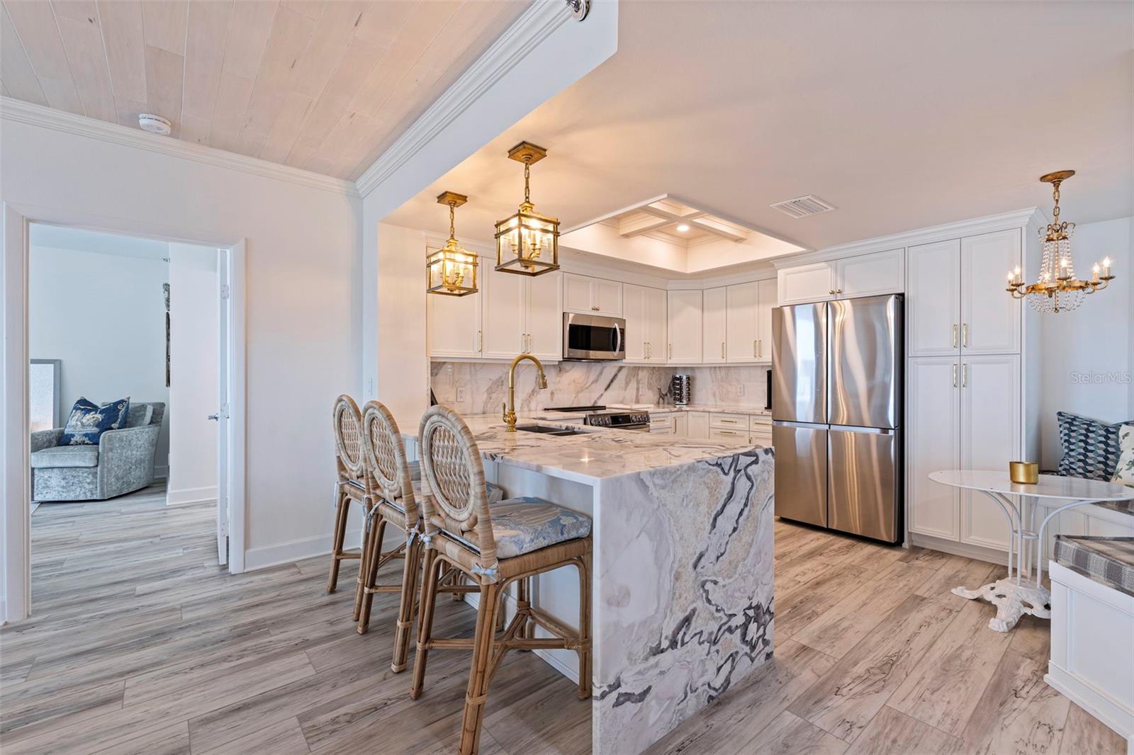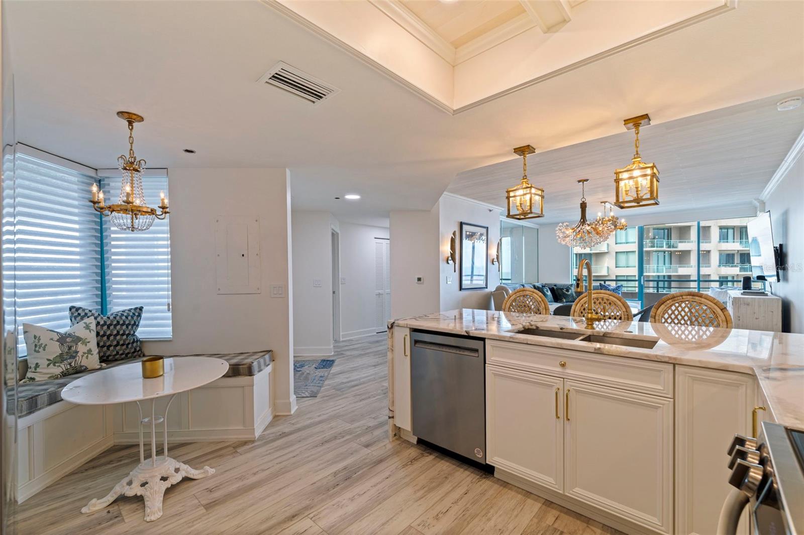 Elegância à beira -mar! Entre neste condomínio com bom gosto, com acabamentos sofisticados e situado nas areias açucaradas de Sand Key Beach. A exposição Southwest apresenta vistas da praia com o pôr do sol deslumbrante todos os dias e as vistas intracoastal! Sala de estar e quarto primário têm controles deslizantes que se abrem para uma varanda espaçosa. Piso de prancha de luxo para facilitar a manutenção. A sala de estar tem detalhes de madeira no teto com moldagem por coroa. Cozinha featuries teto de madeira com alerta. O deleite de um gourmet com utensílios de aço inoxidável, cabine de cozinha personalizada com bancadas de dolomita de Calacatta Namibia, backsplash da laje e borda da cachoeira. Área de comer com assentos e armazenamento de banquetes. Barra de café da manhã que abre para a sala de estar/jantar. Tons solares remotos em todas as janelas e portas com valores de madeira personalizadas. Planta baixa aberta com quartos divididos. Acorde no quarto principal com os sons de ondas quebrando e belas vistas do Golfo. Lambor de madeira, grande closet projetado por armários da Califórnia e banheiro privativo. Vanidade dupla personalizada com bancadas de dolomita e espelhos de vaidade iluminados. Área molhada de mármore separada com enorme chuveiro, armazenamento de bancada e linho. O quarto de hóspedes também apresenta excelentes vistas do closet do Gulf & Lalrge. O banho de hóspedes tem papel de parede de designer com pisos de mármore e chuveiro de mármore. A iluminação de grife, com lustres por conforto visual, John Richard, Palacek e Currey & Company. Condensor A/C, manipulador de ar e termostato 2022. Garagem privada cobiçada nº 82 na garagem. O Ultimo é um complexo de condomínios de classe mundial em Sand Key da famosa praia de Clearwater. Milhas de areia branca pura. Lush Tropical Landscaped Grounds são mantidos habilmente. Guarda de 24 horas fechado. O True Resort Style Complex possui 3 piscinas térmicas geográficas com spas, 3 quadras de tênis, bola de picles, CT de basquete, putting verde, gramado de croquet, área de churrasqueira, área de fogo, shuffleboard, buraco de milho, academia, vapor e sauna, bilhar RM, mídia RM, RM social com cozinha de cabine e piano de bebê. Caminhe para ótimos restaurantes e lojas ou pegue o carrinho de praia em frente ao prédio. A uma curta distância de carro da Tampa e do aeroporto, além de todos os locais esportivos de nossas equipes de campeonato. Comece a viver o estilo de vida da praia da Flórida hoje !! Comprador para verificar as dimensões da sala. Veja o vídeo. Ligue para marcar uma consulta para sua visualização particular hoje!