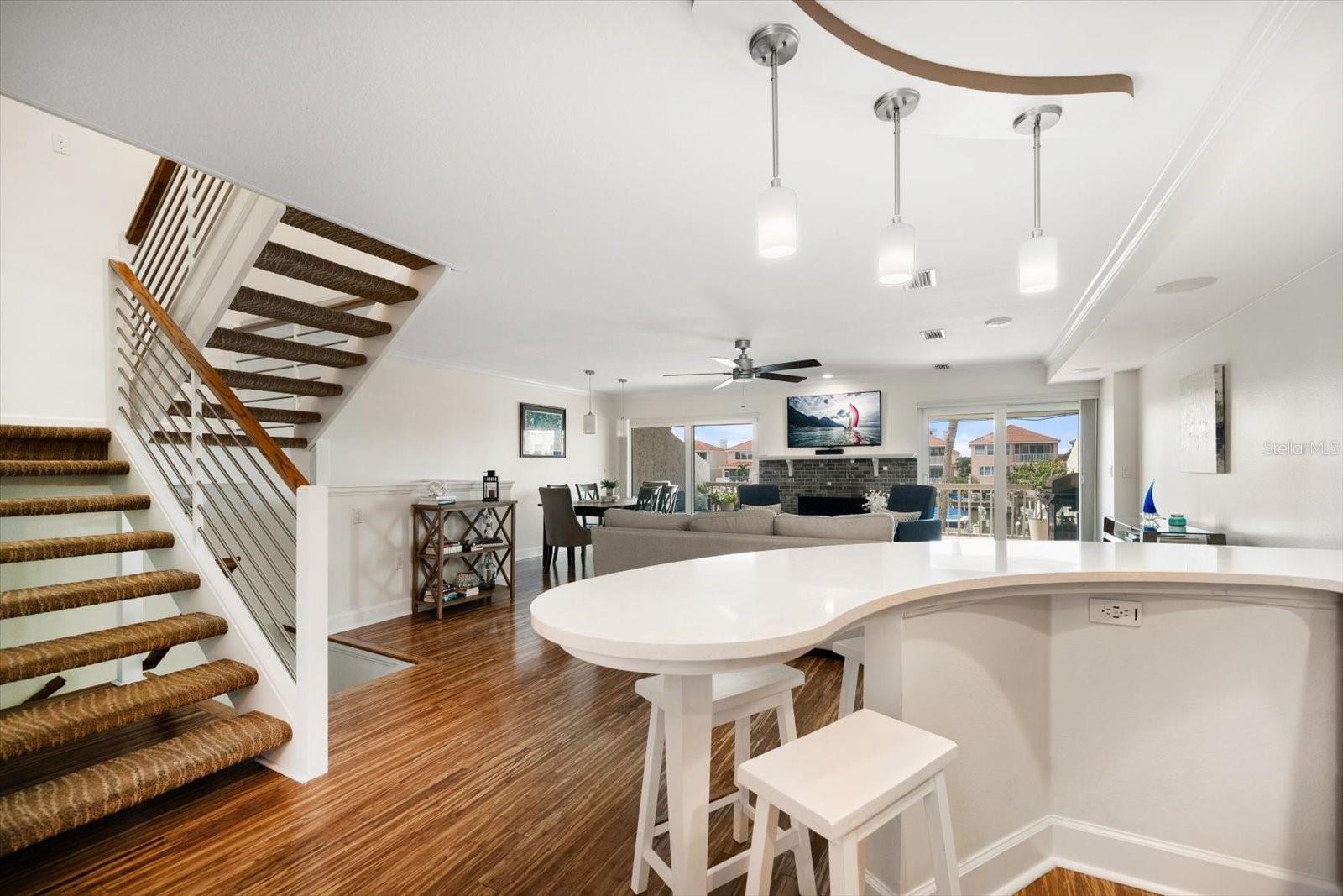 Localizado ao sul de Clearwater Beach, na cênica Sand Key, este requintado moradia em Marina del Rey combina a elegância costeira com design funcional e atualizações modernas. Posicionado ao longo do porto de águas profundas protegidas, a propriedade oferece acesso excepcional de barco e exposição ao sol durante todo o ano em seu desejável lado sul. O principal piso de vida apresenta uma grande sala grande cheia de luz natural, um escritório ou quarto de hóspedes com meio banho e uma cozinha habilmente personalizada projetada para entretenimento, com bancadas de quartzo de Cambria, um semi-circular de café da manhã, uma ilha separada, armários detalhados e uma geladeira de vinho, que contribui para uma experiência de alta e alta experiência culinária. A partir da varanda principal - equipada com um sol operado eletronicamente - os residentes podem desfrutar de vistas intracosais tranquilas. No andar de cima, a espaçosa suíte primária inclui uma varanda privada, um grande closet e um luxuoso banho de suíte completo com uma banheira jato, chuveiro e vaidades duplas. Um quarto adicional de hóspedes com um banheiro privativo e uma lavanderia completa completa esse nível. O térreo oferece um espaço de bônus flexível com sua própria entrada privada, ideal para uso como escritório, estúdio de fitness ou quarto quarto. Esse nível também inclui um banho completo com um chuveiro a vapor, oferecendo conforto e versatilidade. Outros acabamentos atraentes incluem moldagem por coroa, uma paleta fresca de cores modernas e mais brilhantes de tinta em todo o interior e piso de bambu que flui perfeitamente por várias áreas da casa. Uma doca privada-a poucos passos da sala de bônus no nível do solo-afeta um elevador de barco de 20.000 libras, decks compostos, água e serviço elétrico. Esta comunidade de residências que aceita animais de estimação oferece um local estelar-passo da piscina aquecida e acesso privado à praia e minutos das compras, restaurantes e todas as amenas da praia de Clearwater. Perfeito como residência primária ou uma segunda casa de baixa manutenção, esta propriedade Marina del Rey oferece o melhor de passeios de barco, praia e luxuoso costeiro que vive em um pacote lindamente atualizado.