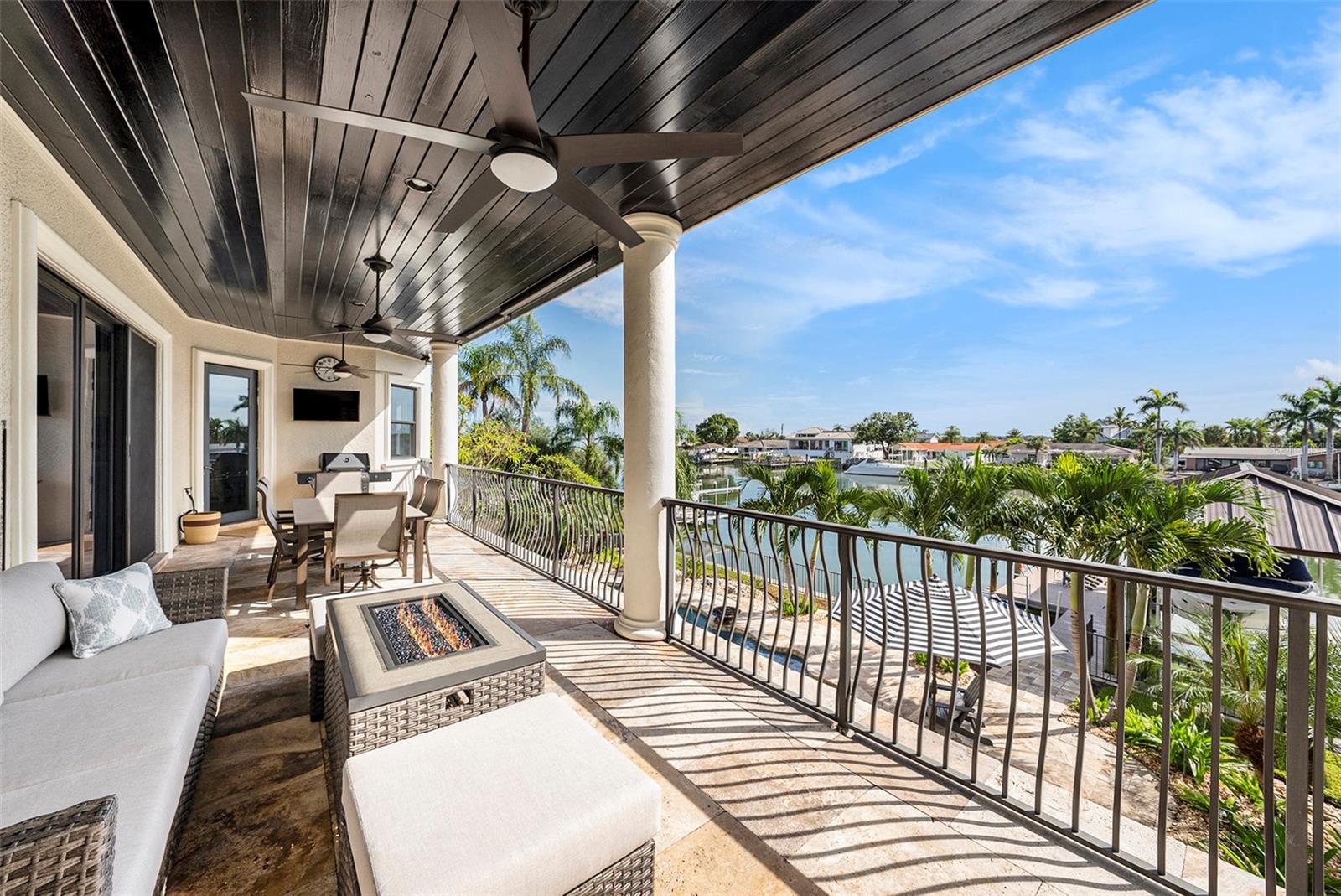 Esta elegante residência mediterrânea espanhola captura o coração da verdadeira vida costeira com acabamentos luxuosos por toda parte. Posicionado perfeitamente nas águas intracostal cintilantes de Clearwater Bay, recebe você com espaços arejados e iluminados solares e extensos trabalhos de fábrica personalizados, incluindo tetos de alojamento, molduras de coroas em camadas, tetos de bandeja e lambris que emprestam caracteres atemporais a todos os quartos. Um elevador desliza para cada nível, emparelhando a conveniência diária com a sofisticação. The gourmet kitchen is a true centerpiece for gathering, featuring custom solid wood cabinetry with seeded glass display cabinets, granite countertops and backsplashes, a breakfast bar, a farmhouse sink, and premium appliances that include a six burner Wolf range with pot filler, Sub Zero refrigerator, dishwasher, built in microwave, ice maker, beverage fridge, and wine fridge, plus a casual eat in nook perfect for morning coffee or Vinho da noite. Um meio banho conveniente no nível principal está perfeitamente posicionado para os hóspedes. A suíte primária principal é um retiro sereno com um banho inspirado em spa, oferecendo uma vaidade dupla, uma banheira de imersão independente e um chuveiro separado. Três armários fornecem armazenamento excepcional, incluindo um armário que anteriormente era um escritório designado com sua própria entrada privada e pode ser facilmente convertida de volta para o trabalho ou retiro silencioso. No andar de cima, dois quartos adicionais desfrutam de um banheiro privativo e um closet, com um servindo como uma suíte primária secundária com armários duplos para maior conforto e privacidade. A vida ao ar livre brilha, começando quando você é recebido pela calçada travertina e uma escada dupla, levando a uma deslumbrante entrada de porta dupla, e continua com três terraços de travertino expansivos com vista para uma piscina de água salgada e spa brilhante. A área da piscina possui dois fogueiras com cachoeiras em cascata e iluminação de destaque, criando um ambiente dramático da noite. O Lush Tropical Landscaping e um quintal cercado criam um oásis privado para refeições ao ar livre, leitura tranquila ou reuniões de pôr do sol. Os velejadores apreciarão a doca de águas profundas compostas com água total e serviço elétrico, um elevador de barco de 16 toneladas e docas de jato flutuante duplo. A garagem de 4 carros acabada possui piso de pavimentação e uma grande área flexível acabada atualmente usada como academia, completa com um armário e meio banheira, ideal como quarto quarto, cabana lounge, estúdio de artesanato ou sala de mídia. Misturando o charme mediterrâneo do velho mundo com a elegância arejada do litoral da Flórida, esta excepcional casa de Clearwater Bay oferece um estilo de vida onde todos os dias parecem uma escapada à beira-mar e todos os detalhes refletem o design atencioso para a vida descontraída à beira-mar.