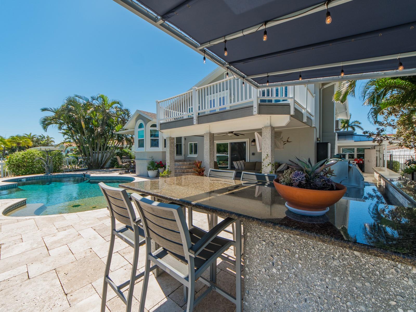 O luxuoso Coastal Oasis encontra a vida tropical moderna. Experimente o máximo em luxo tropical com esta deslumbrante casa de 2 andares à beira-mar. Oferecendo garagem para 2 carros, 3 quartos espaçosos, 3 banheiros completos e um elegante lavabo. A suíte do primeiro andar possui uma sala de estar anexa para um arranjo legal, home office ou até mesmo uma babá ao vivo. Com piso de madeira de nogueira por toda parte, esta residência combina design contemporâneo com tons quentes e naturais para um charme costeiro sem esforço. Desfrute de uma vida em estilo resort com piscina aquecida a gás, cozinha externa com assentos embutidos e um ambiente exuberante perfeito para entretenimento ou relaxamento com privacidade. O novo telhado 2023 e o telhado plano 2021 proporcionam tranquilidade, enquanto as janelas de impacto PGT e um sistema de água em toda a casa garantem conforto e segurança. No interior, a remodelação da cozinha de 2024 apresenta um artesanato requintado com acabamentos modernos e eletrodomésticos premium. A cozinha se abre para a sala de jantar combinada com tetos abobadados. Exterior recém-pintado, cada detalhe foi cuidadosamente atualizado para uma experiência pronta para a mudança que parece totalmente nova. O segundo andar possui mais 2 quartos com banheiros anexos. O retiro principal tem um enorme closet, pias duplas com penteadeira personalizada, banheira de imersão com jatos e box amplo. O retiro principal também possui uma enorme varanda para desfrutar do seu café da manhã enquanto aprecia cada nascer do sol. Esta casa também possui um grande cais com elevador para barcos de 10.000 libras. Localizado em Island Estates, há uma mercearia Publix, correios e posto de gasolina, além de restaurantes requintados e tudo a uma curta caminhada da nossa famosa praia de Clearwater. Esta propriedade capta a essência da sofisticação costeira, elegância, baixa manutenção e foi projetada para quem busca o máximo em vida na ilha.