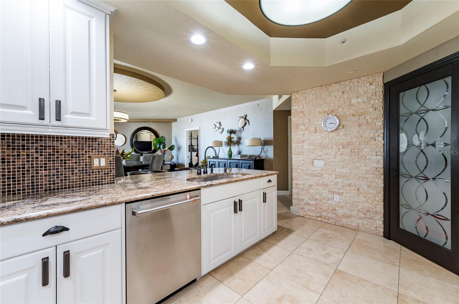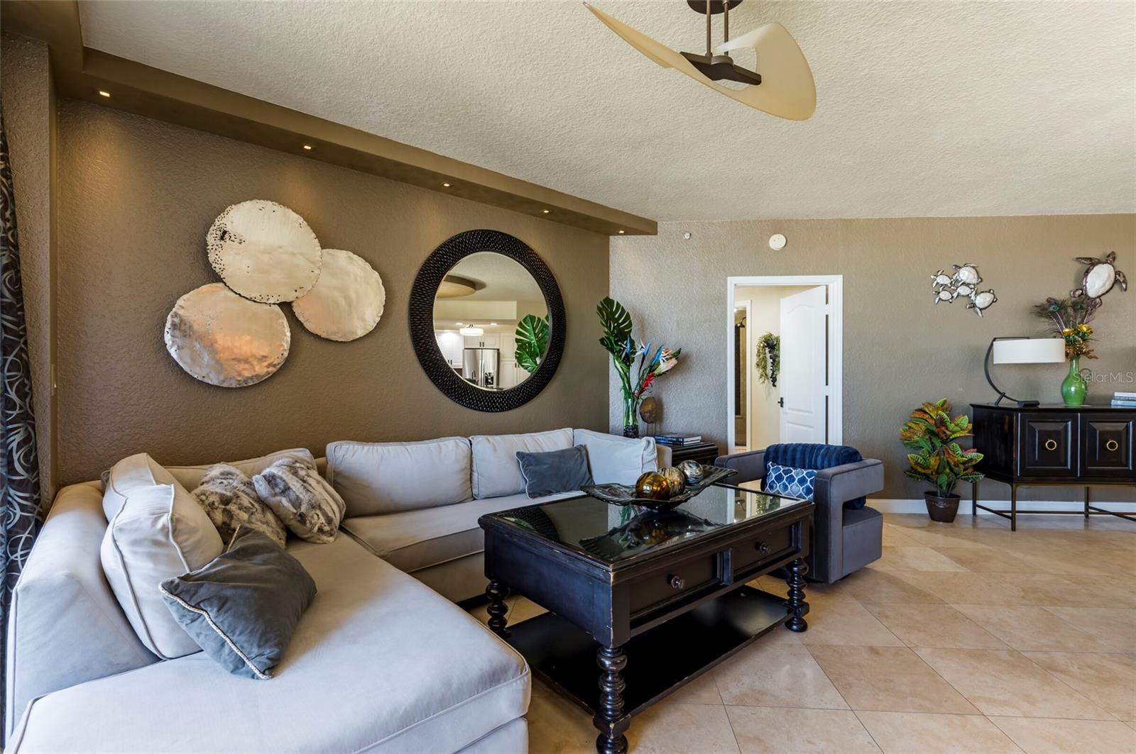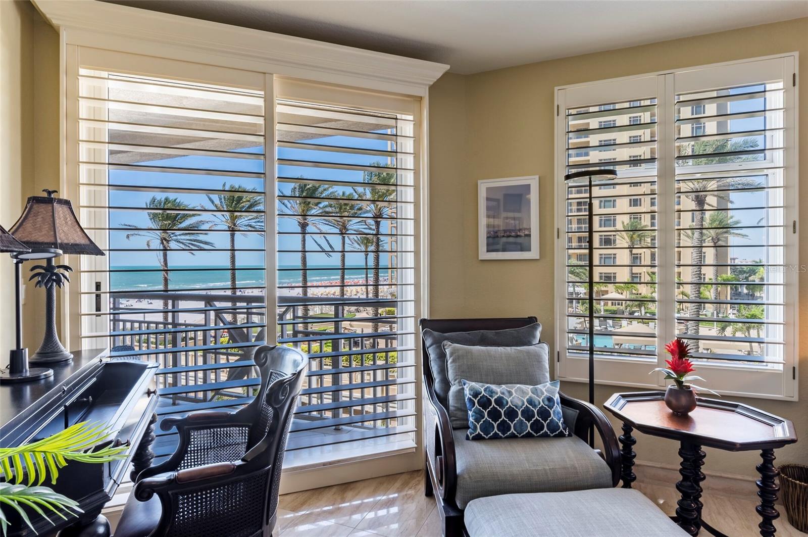 Localizada na desejável torre San Marco do Mandalay Beach Club, esta residência requintada oferece vistas deslumbrantes que rivalizam com as de propriedades completas à beira do Golfo. Este condomínio de dois quartos e dois banheiros, meticulosamente renovado e atualizado, é um refúgio de luxo, com móveis que aumentam seu fascínio. Entre e seja recebido pelo elegante piso de travertino que flui perfeitamente por toda parte. A cozinha, uma obra-prima da culinária, apresenta impressionantes bancadas de granito, elegantes armários brancos e eletrodomésticos de alta qualidade em aço inoxidável. Uma parede com detalhes em pedra natural na sala de estar/jantar adiciona um toque de glamour ao espaço. O quarto principal possui um closet personalizado e persianas emoldurando vistas cativantes para o mar. O banheiro privativo é um refúgio semelhante a um spa, completo com banheira de jardim, chuveiro de vidro sem moldura e pia dupla. Os destaques adicionais incluem um segundo quarto com banheiro de hóspedes, uma lavanderia discreta, tetos falsos, portas deslizantes resistentes a furacões e iluminação embutida. No exterior, uma espaçosa varanda acessível a partir de ambos os quartos e da sala convida-o a saborear diariamente a brisa refrescante do Golfo. Os residentes do Mandalay Beach Club têm acesso a uma variedade de comodidades, incluindo um clube inspirado em Tommy Bahama, uma grande piscina aquecida e spa, uma academia de ginástica de última geração, sala de bilhar, sala de reuniões e segurança fechada 24 horas. Com vaga de estacionamento designada no subsolo e arrecadação climatizada incluída, esta residência oferece conveniência e luxo. Situada no bairro renascentista de Clearwater Beach, conhecida por seus restaurantes e lojas requintadas, esta obra-prima inspirada nas Índias Ocidentais aguarda seu afortunado novo proprietário. Faça as malas e prepare-se para desfrutar do que há de melhor na vida costeira.
