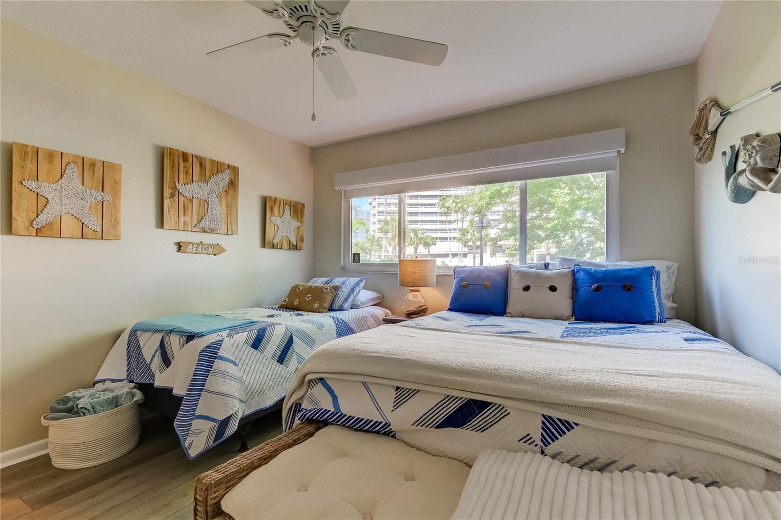 *** nenhum dano ou intrusão de água de Helene ou Milton ***. Bem-vindo a este condomínio absolutamente lindo do 1º andar, de 2 quartos e 2 banheiros em Bayside Gardens III na Chave de Sand! Esta unidade possui uma nova (3 toneladas) A/C, piso de tábua de vinil de luxo, persianas e tons remotos nas portas deslizantes mais recentes que levam ao seu pátio. Do seu pátio, você pode desfrutar de vistas deslumbrantes da hidrovia intracoastal enquanto assiste golfinhos em jogo. A cozinha possui aparelhos de aço inoxidável de perfil GE (alguns mais recentes), um teto de vigas atraente, balcões de granito e backsplash de ladrilhos de vidro. Ambos os quartos são de bom tamanho e oferecem vistas parciais do Golfo do México. Os banheiros são bem decorados, um dos quais tem um chuveiro de vidro e o outro com uma banheira de combinação/chuveiro. Bayside Gardens III oferece uma piscina aquecida da comunidade a poucos passos da sua unidade e acesso à praia do outro lado da rua. Você também terá um espaço de garagem para o seu veículo e muito estacionamento de hóspedes. O Shoppes da Sand Key, que oferece uma ampla gama de opções de compras e refeições, fica a uma curta caminhada. Bayside Gardens III é uma representação perfeita da Flórida que vive da melhor maneira possível, então não hesite em fazê -lo.