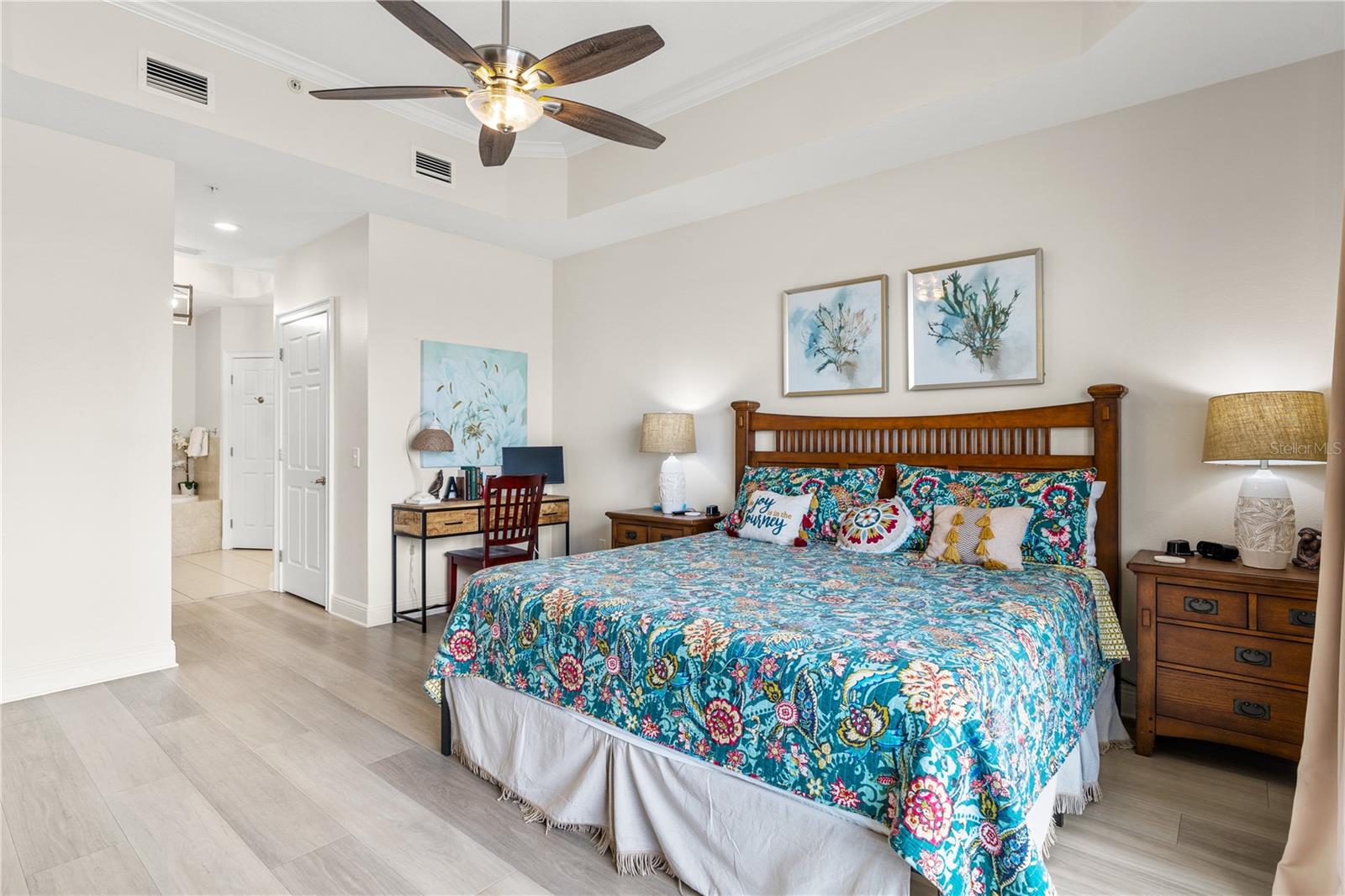 Experimente a beira-mar de luxo que vive neste condomínio lindamente projetado de 3 quartos no último andar, oferecendo vistas panorâmicas de tirar o fôlego da Baía de Clearwater. Cada quarto neste condomínio espaçoso possui seu próprio banheiro privativo, garantindo privacidade e conveniência. Todos os quartos vêm com closetes, com a suíte primária com dois armários para armazenamento adicional. O banheiro principal oferece vaidades duplas, uma banheira de imersão com jatos de água e um chuveiro independente. As áreas de estar de conceito aberto, restaurantes e cozinha são banhadas em luz natural, graças a grandes janelas emoldurando vistas deslumbrantes da baía e do pôr do sol. Além disso, o condomínio inclui uma lavanderia dedicada para maior conveniência. Totalmente mobiliado e pronto para uso imediato, esta propriedade também é um excelente investimento com políticas de aluguel flexíveis, ideais para aluguel de Airbnb ou de férias. Localizado a uma curta caminhada de Clearwater Beach e perto de refeições, compras e entretenimento, oferece a mistura perfeita de conforto e vida costeira. Agende sua turnê privada hoje!