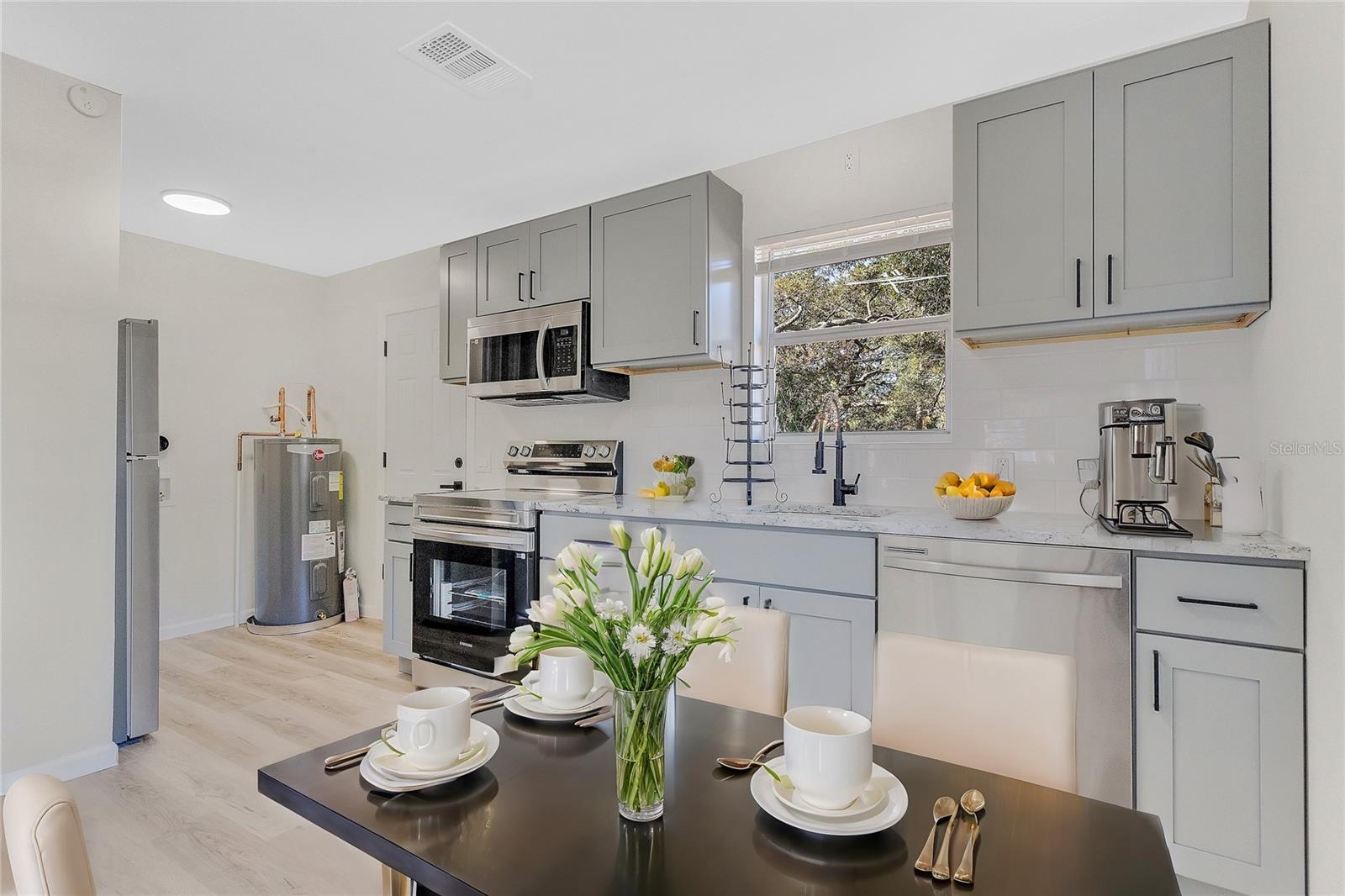 Uma ou mais fotos foram praticamente encenadas. Melhoria de preços nesta encantadora casa de 2 quartos recém-renovada no bairro de Sunset Point de Clearwater- Minutos de Clearwater Beach! Bem-vindo a esta casa lindamente renovada de 2 quartos e 1 banheiro a poucos quilômetros das margens intocadas de Clearwater Beach, Flórida! Esta casa possui uma vibração moderna e aconchegante, perfeita para relaxar e divertir. Entre para descobrir um layout aberto e aberto com uma luz natural abundante que ilumina o novo piso de vinil por toda parte e a nova tinta que ilumina todos os quartos. A espaçosa área de estar apresenta uma parede de destaque elegante que adiciona um toque de personalidade, enquanto o elegante balcão de granito na cozinha cria um espaço de cozimento elegante e funcional. Aproveite a conveniência de novos aparelhos de cozinha que facilitam a preparação das refeições. O banheiro totalmente atualizado inclui novos acessórios que fornecem um toque limpo e moderno. A vida ao ar livre é igualmente convidativa para o relaxamento - ideal para grelhar depois de um dia na praia enquanto desfruta da sombra de árvores maduras e do novo paisagismo que aprimora o apelo do meio -fio dessa casa encantadora. Esteja você desfrutando de um café da manhã ou um coquetel de pôr do sol, o espaço ao ar livre é o retiro perfeito. Com estacionamento na rua para conveniência e estacionamento adicional na rua disponível na parte de trás, você nunca precisará se preocupar em encontrar um lugar. Localizado em uma estrada principal na frente, o acesso a compras, refeições e trabalho é uma brisa. Além disso, um novo telhado garante que você tenha paz de espírito nos próximos anos. O clima perfeito da Flórida: Desfrute de sol e clima suave o ano todo, com temperaturas quentes que tornam a vida aqui um sonho. Os meses de inverno são leves, proporcionando uma fuga confortável de climas mais frios, enquanto o verão traz dias longos e ensolarados, ideais para passeios na praia, atividades ao ar livre e explorar tudo o que Clearwater tem que fazer. Não perca a chance de chamar essa jóia em estilo de casa de sua nova casa, onde conforto, estilo e localização se juntam perfeitamente. Telhado, AC, aparelhos e aquecedor de água são todos novos! Se você está procurando um retiro ensolarado de inverno, para reduzir o tamanho, para uma casa inicial ou uma propriedade de renda. Ligue para solicitar uma turnê privada hoje!