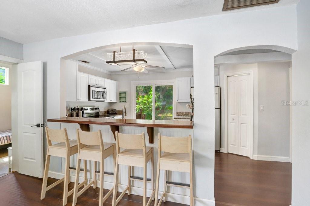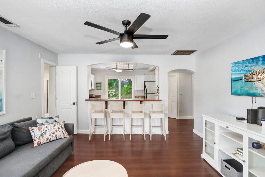Bem-vindo ao seu sonho de dois quartos, dois banheiros e bangalô de estilo de praia, aninhado na fronteira serena Clearwater/Dunedin. Apenas a um curto passeio do Edgewater Drive Park, no centro de Dunedin e a trilha Pinellas, este encantador retiro é a mistura perfeita de vida costeira e conforto moderno. Ao entrar, você será adotado por uma enxurrada de luz natural, derramando pelas janelas em uma entrada aconchegante - ideal para uma área de estar casual ou espaço formal de jantar. O coração desta casa, a espaçosa sala de estar, acena com seu ambiente quente, perfeito para se enrolar em uma noite aconchegante ou hospedar noites animadas de cinema em família. A cozinha, com vista para a ampla área de estar, é o deleite de um chef. Imagine a preparação de refeições em bancadas em granito com a aparência elegante de utensílios de aço inoxidável, incluindo uma pia de poço único profundo. O grande bar de café da manhã convida conversas casuais e rituais de café da manhã, e a um passo de distância, as portas de vidro deslizantes o levam ao oásis do quintal. A suíte primária é um verdadeiro santuário, com pisos laminados, closet com teto/secador de carga frontal da Samsung empilhada, que criam um toque arejado e amplo com um banheiro dedicado. O quarto secundário é cuidadosamente projetado para os hóspedes com sua própria barraca de chuveiro de telhas de suíte e metrô. Depois de sair e você encontrará o paraíso de um artista. O quintal oferece infinitas possibilidades, se você sonha em hospedar churrascos de verão, criar um santuário de jardim ou simplesmente desfrutar do sol da Flórida. O galpão isolado adiciona versatilidade, servindo como amplo espaço de armazenamento extra. Este bangalô aconchegante é mais do que apenas um lar; É uma porta de entrada para o estilo de vida costeiro descontraído dos seus sonhos. Localizado em uma zona de ingestão X, oferece mais tranquilidade!