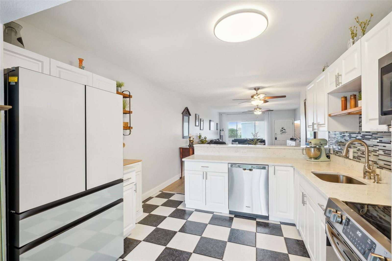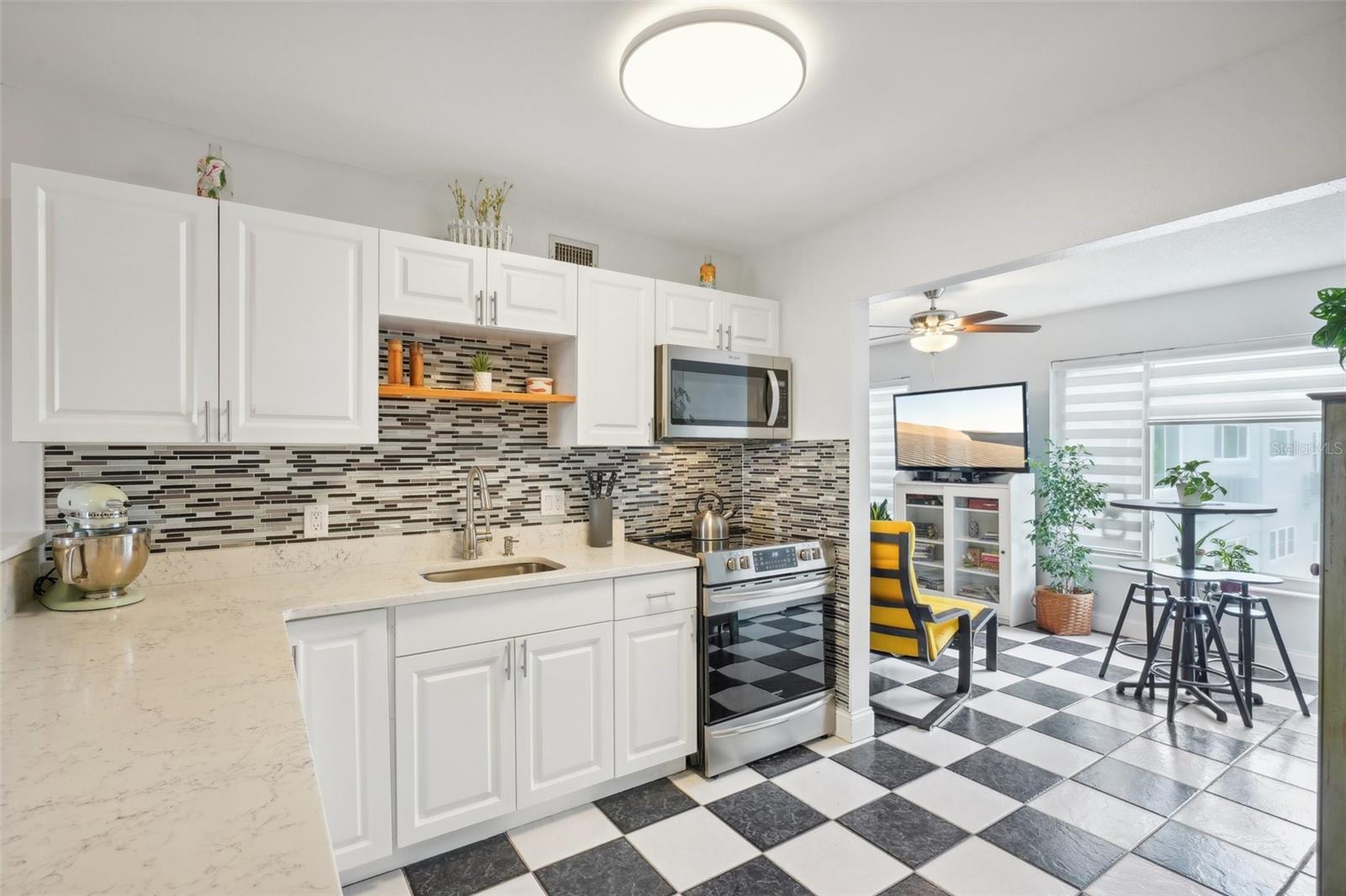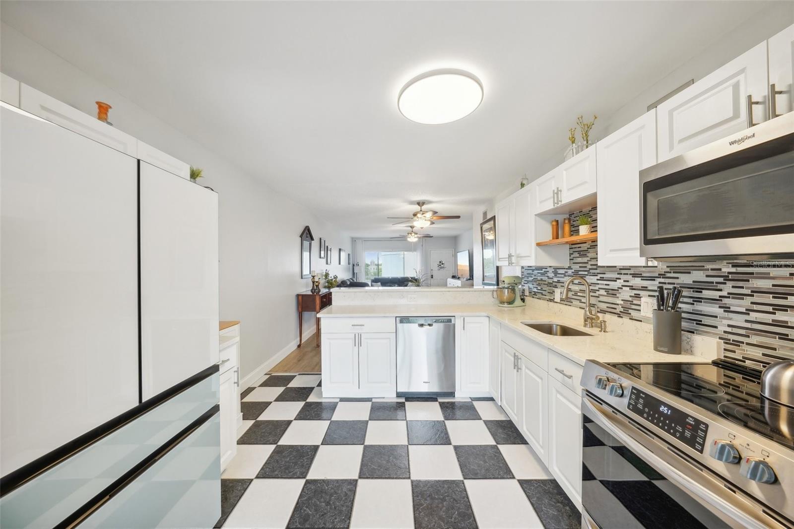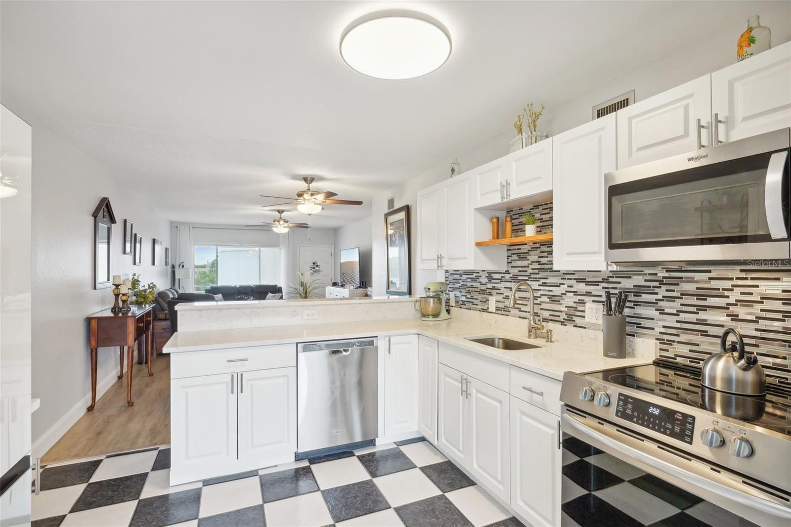 Não procure mais, esta residência TOTALMENTE remodelada é A ÚNICA!!! Localizada na comunidade mais procurada de mais de 55 pessoas no Top of the World (OTOW), esta casa de terceiro andar, dois quartos e dois banheiros está localizada em uma área mais tranquila e assim que você sair do elevador, vire a esquina e entre em você. Ficarei impressionado com o quão leve e brilhante ele é! Apresentando novos ventiladores e piso resistente à água e arranhões! A cozinha é aberta e tão bonita com seu piso de cerâmica xadrez e tudo novo, como eletrodomésticos, armários, estantes de madeira abertas, impressionante backsplash contemporâneo enfeitado por bancadas de quartzo cintilantes com balcão para café da manhã - você vai adorar cozinhar na cozinha deste chef que está aberto para a sala para que você ainda possa interagir. A diversão no piso xadrez continua até a relaxante sala da Flórida para sentar e observar a paisagem exuberante e aproveitar o clima sempre divertido da Flórida! O vendedor então adicionou uma modificação conveniente para poder acessar o quarto principal, adicionando uma elegante porta de celeiro. O Primary é de tamanho generoso e possui um banheiro privativo lindamente remodelado, com amplo box amplo. O quarto de hóspedes fica no final do corredor, com um banheiro remodelado correspondente para máxima privacidade. A casa não é apenas bonita, mas também prática, com janelas mais novas, NOVO HVAC e aquecedor de água - você só precisa trazer sua escova de dentes! A lavanderia comum está convenientemente localizada perto do elevador, no segundo andar, a poucos passos de distância! OTOW tem tantas comodidades que você nunca ficará sem algo para fazer! Existem dois centros de atividades, dois campos de golfe privados de 9 e 18 buracos (gratuitos para proprietários residentes), duas piscinas aquecidas, Cardio Gym remodelado com equipamentos de exercício de última geração. OTOW é uma comunidade que aceita animais de estimação, com um parque cercado para cães e assentos cobertos para os pais peludos. Existem estúdios de hobby e uma marcenaria para uso exclusivo dos moradores. As atividades incluem aulas de ginástica, dança, clubes, cartas, bilhar, entretenimento, aulas e muito mais. O Good Karma Café, no local, serve refeições e lanches Take & Bake. Internet, cabo, lixo e água incluídos na taxa. OTOW está convenientemente localizado próximo a supermercados, Countryside Mall, com cinemas, lojas e restaurantes. E a uma curta distância de carro das premiadas praias de areia açucarada e da deliciosa Dunedin com Caladesi e Ilhas de Lua de Mel. Não perca esta oportunidade de viver a sua melhor vida!! Os móveis são negociáveis.