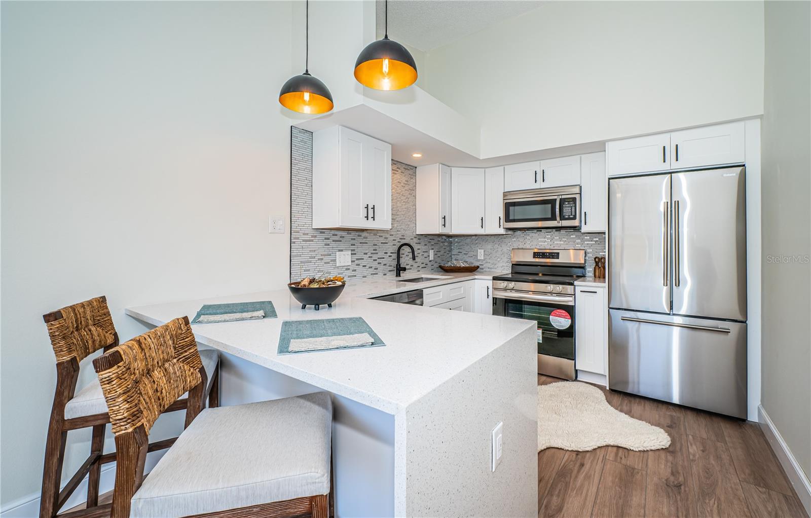 Moderno condomínio de 2 quartos de 2 quartos renovado com bom gosto. A cozinha aberta possui bancadas de quartzo, todos os novos armários brancos, deslumbrantes backsplash e aparelhos de aço inoxidável. Uma barra de café da manhã com assentos e bar seco embutido para a hora do coquetel. Ambos os quartos são espaçosos com muito espaço no armário. Fãs elegantes de teto em todos os quartos e novos pisos laminados de luxo instalados por toda parte. Na unidade de lavadora/secadora empilhável, uma vantagem. Unidade de segundo andar perto do elevador. Estacionamento atribuído e muito estacionamento de hóspedes. A comunidade de mais de 55 anos possui dois centros de atividades e dois campos de golfe particulares com 9 e 18 buracos, gratuitos exclusivamente para proprietários de residentes. Existem duas piscinas aquecidas. A academia cardio remodelada possui o mais recente equipamento de exercícios. Uma comunidade muito adequada para animais de estimação, há um parque de cães cercado com assentos cobertos. Existem Hobby Studios e uma loja de madeira para o uso exclusivo dos moradores. As atividades incluem aulas de fitness, dança, clubes, cartões, bilhar, entretenimento, aulas e muito mais. O Good Karma Café no local recebeu e assar refeições e lanches. Perto de praias, transporte, compras, entretenimento. Se o financiamento, 35% diminuirá.