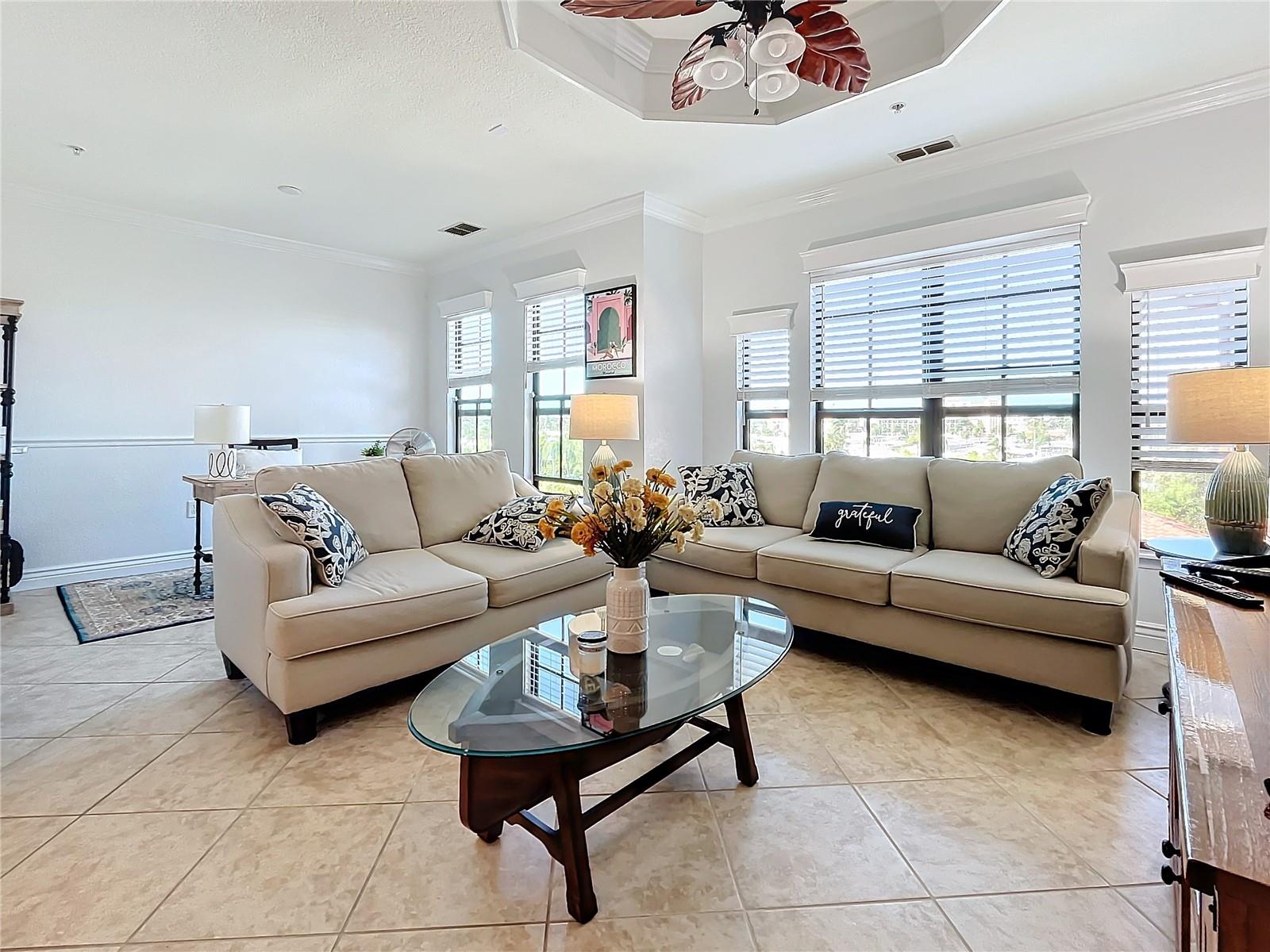 Eleve seu estilo de vida no condomínio fechado de Grand Bellagio, onde segurança 24 horas, vistas deslumbrantes do mar e uma variedade de comodidades criam um retiro sereno e vibrante. Este condomínio livre de manutenção no terceiro andar apresenta um layout bem planejado de quartos divididos com 2 quartos espaçosos e 2 banheiros, garantindo conforto e privacidade. Tetos altos, sancas elegantes e teto em caixotões na área de estar adicionam um toque de sofisticação, enquanto janelas e persianas PERSONALIZADAS aumentam a segurança e o estilo. A casa inclui uma GARAGEM PRIVATIVA e uma VAGA DE ESTACIONAMENTO RESERVADA para maior comodidade. Saia para desfrutar de trilhas pitorescas para caminhadas, uma trilha para cães que aceita animais de estimação, uma quadra de tênis e passeios de caiaque ao longo da orla cintilante. A marina comunitária, com 62 embarcações privadas disponíveis para venda ou aluguel, oferece acesso direto à recreação à beira-mar. Não perca a oportunidade de experimentar esta casa lindamente conservada em um bairro vibrante e rico em comodidades! *** Idade do telhado - 2023, Idade do ar condicionado: 3-4 anos