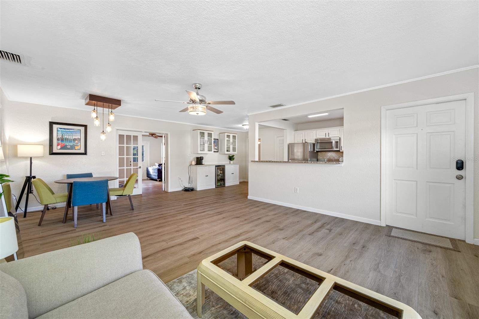 Esta casa lindamente atualizada em Clearwater não está em uma zona de inundação ou área de evacuação e não sofreu danos durante os furacões recentes, apenas a cerca do vizinho foi afetada. Apresentando novo piso de vinil, janelas de 2013, HVAC e telhado, esta casa está pronta para morar. Com uma planta dividida desejável, sala de conceito aberto e três quartos, além de uma grande sala bônus, a casa parece muito mais espaçosa do que a metragem quadrada listada. A cozinha possui bancadas de granito, eletrodomésticos de aço inoxidável e janelas Pella atualizadas. O amplo quintal cercado oferece possibilidades ilimitadas para piscina, playground, jardim ou entretenimento no quintal. Com localização central, você está a apenas uma curta distância de carro da premiada Clearwater Beach, do movimentado centro de São Petersburgo e a apenas 20 minutos do Aeroporto Internacional de Tampa. Situada em uma rua bem conservada, esta casa em estilo rancho é imperdível!
