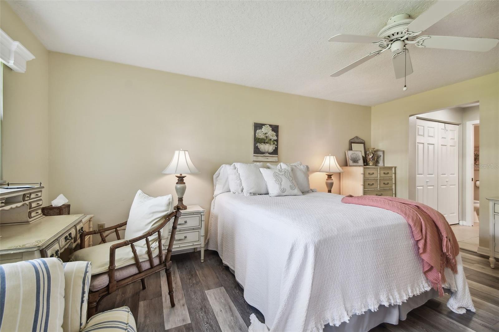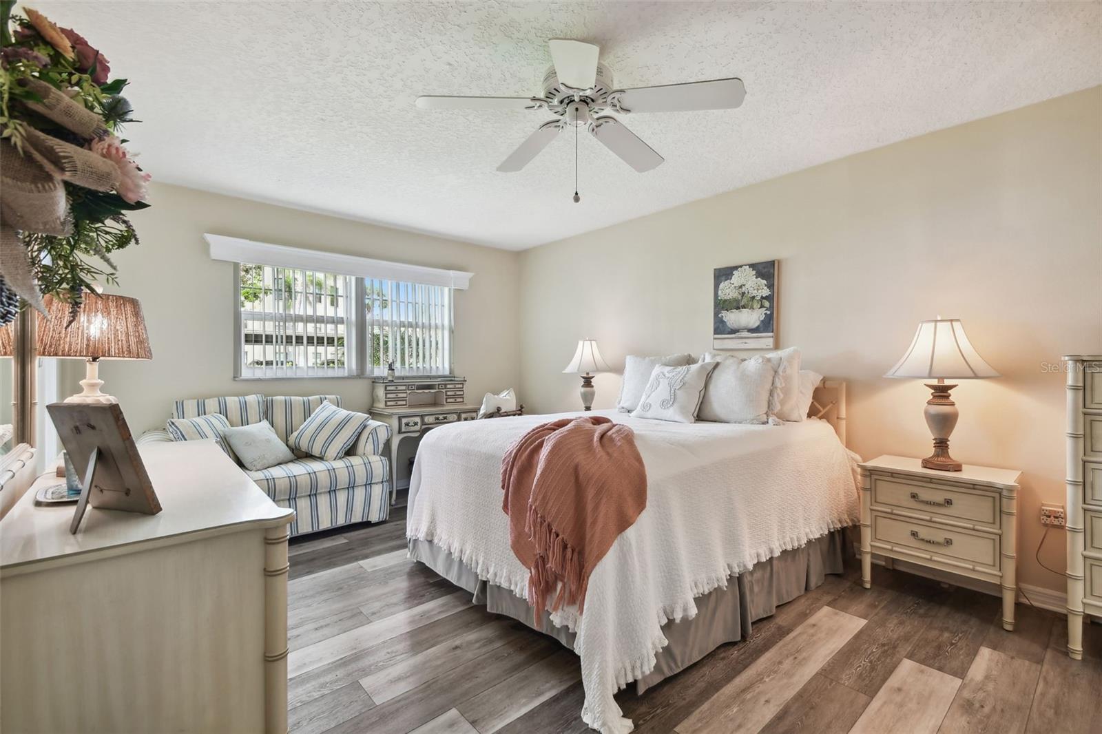 Imperial Cove está em uma comunidade à beira-mar que oferece um estilo de vida luxuoso para pessoas com 55 anos ou mais. As comodidades incluem atividades, salão de festas, churrasqueiras, mesas de bilhar, cais, píer de pesca, academia, mesas de jogos, putting green de golfe, biblioteca, piscina, saunas e quadras de shuffleboard. Esta moradia fica fora da estrada principal, tem um amplo quintal, não tem vizinhos directamente atrás e só tem um vizinho lateral. Uma vaga de estacionamento coberta e designada e um armário de armazenamento ficam próximos às portas da frente e dos fundos da casa. Entrando pela porta da frente, o hall de entrada passa por uma copa, atualizada com bancadas de granito, armários brancos e backsplash de azulejos de pedra. Um quarto de tamanho generoso também fica na frente da casa, decorado em estilo provinciano francês com cama queen size, cômoda larga, cômoda alta, mesinha e várias cadeiras. Uma banheira com banheira e chuveiro fica ao lado deste quarto. Do outro lado do corredor, uma lavanderia possui lavadora e secadora grandes e uma pia. A área de jantar possui mesa de madeira e ferro forjado com seis cadeiras e aparador com porta-copos de vinho em cima. A área de estar tem um sofá confortável, quatro cadeiras estofadas e um console de entretenimento com TV Samsung em cima. A espaçosa suíte principal tem uma cama queen-size, duas cômodas, uma cômoda, duas mesinhas de cabeceira, escrivaninha, cadeira e poltrona. Antes da suite existem dois closets, um deles walk-in, ambos com sistema de organização de closets. O banheiro privativo apresenta pias duplas em uma longa penteadeira de granito e um grande chuveiro de azulejos com portas de vidro. Uma varanda interna com grandes janelas, a sala Florida, é onde o ar livre pode ser apreciado de dentro, no sofá ou na poltrona reclinável com detalhes em rattan. Do lado de fora, a brisa costeira sopra sobre o pátio pavimentado, segurando mesas e cadeiras, não muito longe de onde as ondas batem no paredão e uma calçada corre ao longo da baía. Decorado por um designer, o mobiliário pode ser seu, apenas mais uma forma de possuir esta moradia irá facilitar a sua vida. Agende sua visita guiada a esta casa para ver tudo o que ela e Imperial Cove oferecem.