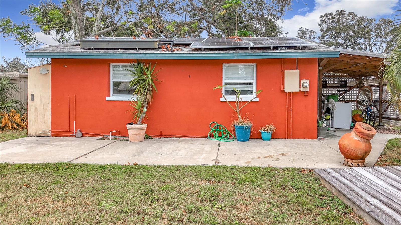 ADORÁVEL CASA ÚNICA FAMILIAR MAIS ADU EM UM GRANDE LOTE EM CLEARWATER DENTRO DE 2 BLOCOS DO CAMPO DE GOLFE BELLEAIR. Alugue ambos ou more na casa e alugue o ADU independente para cobrir o pagamento da hipoteca! Ambas as casas incluem PAINÉIS SOLARES eléctricos e aquecedores solares de água - todos PROPRIETÁRIOS e transmitidos com a propriedade. A casa principal inclui NOVOS PISOS DE TÁBUAS DE VINIL DE LUXO, uma cozinha com ARMÁRIOS BRANCOS E BALCÕES DE GRANITO mais novos e um toque da antiga Flórida - UMA PORTA FRENTE TELA PARA APROVEITAR SEU CAFÉ DA MANHÃ. AC central (2019) e uma zona de lavandaria anexa completam as qualidades desejáveis desta casa. O APARTAMENTO ESTÚDIO SEPARADO E AUTÔNOMO inclui PISO DE AZULEJO, chuveiro e banheira recém-instalados e possui TETOS DE VAULT, uma área de armazenamento externa parcialmente fechada e pátio. É aquecido e resfriado com mini-split (2021). Telhado da casa - telha dimensional 2018, metade traseira do telhado é galvanizada com costura vertical 2018, instalada antes da fixação dos painéis solares. Telhado do Studio - telha dimensional, 8 ou 9 anos. Um lugar para chamar de lar que também oferece a oportunidade de se pagar? São difíceis de encontrar - não perca a oportunidade!