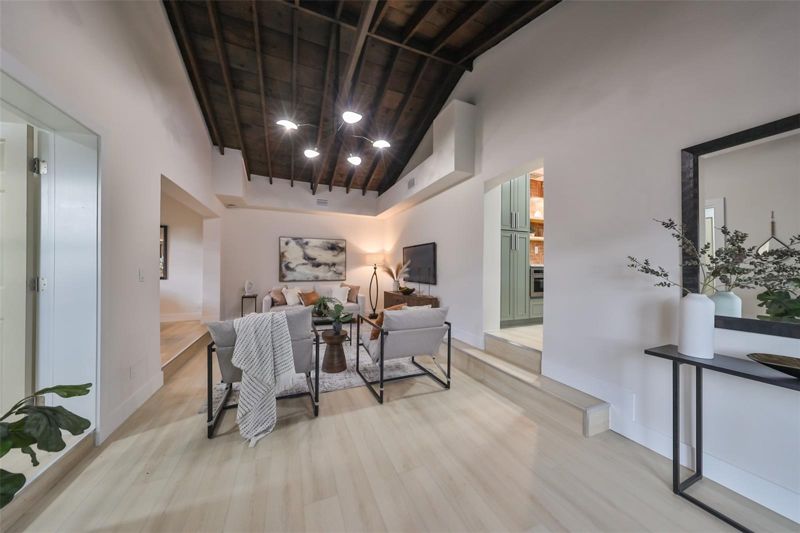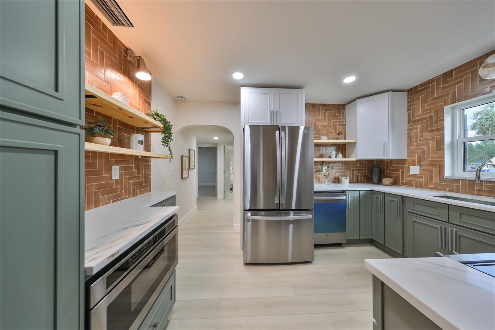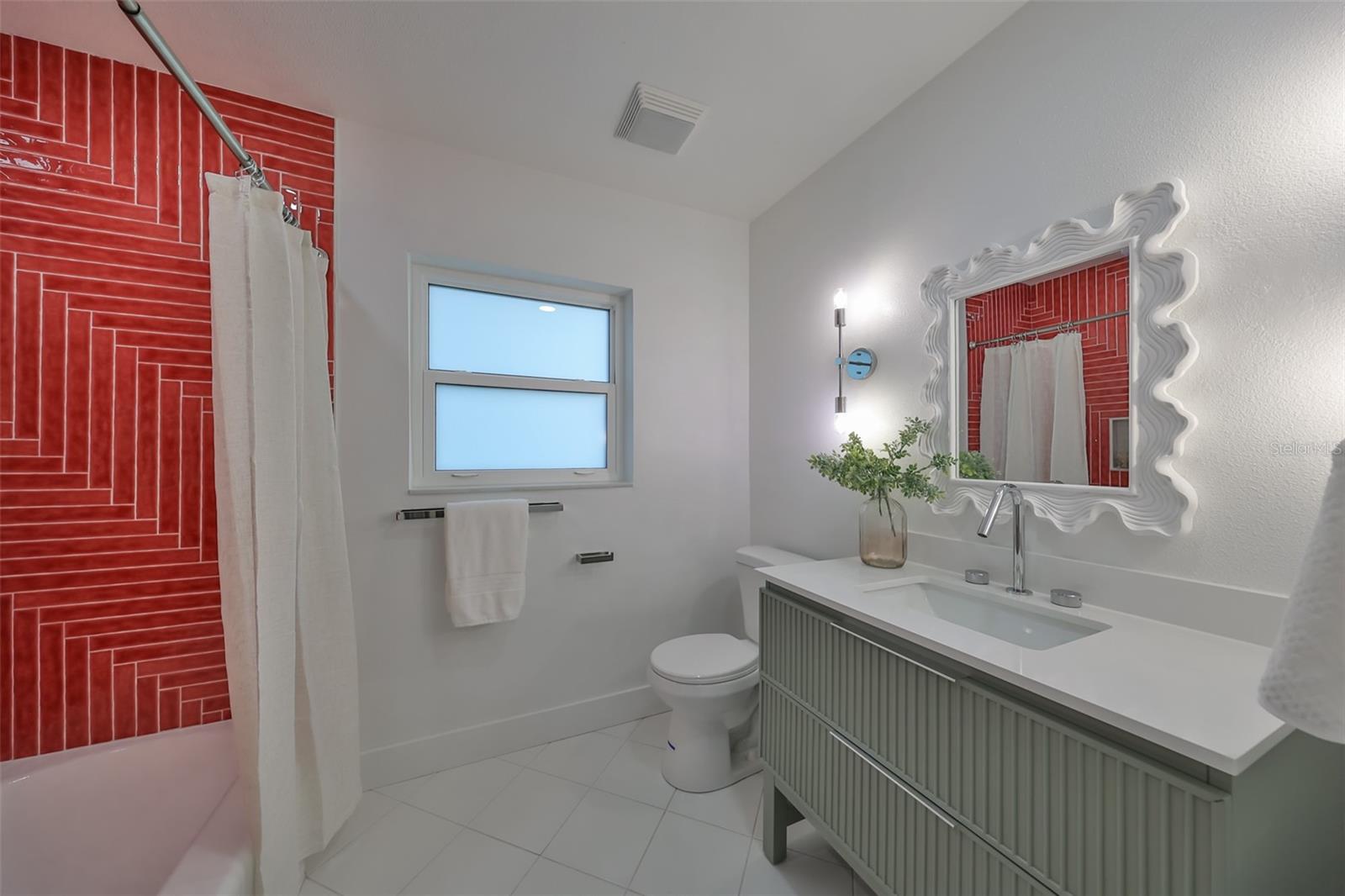 “Meados do século encontra o moderno” - Bem-vindo ao Twin Palms, uma impressionante propriedade renovada que é uma combinação perfeita para a aquisição de uma casa própria. Com mais de 2.000 pés quadrados de área útil, a casa principal oferece 3 quartos, 2 banheiros completos com lavanderia interna e o ADU anexo oferece 1 quarto e 1 banheiro completo de área útil. Esta propriedade pode ser uma propriedade geradora de renda com potencial de aluguel duplex, uma oportunidade de “hackeamento de casa” onde você mora de um lado e aluga o outro, ou pode ser uma vida multigeracional no seu melhor, com um membro da família morando com você, mas tem seu próprio espaço de vida privado. As portas da frente são emolduradas por palmeiras gráficas pintadas, e a charmosa pérgula leva à sala de estar principal, com os dramáticos tetos abobadados escuros e o piso de madeira natural sendo um destaque. Prepare-se para se surpreender com os tons terrosos quentes e convidativos que irradiam por todo o interior. A cozinha em tons suaves de verde sálvia, creme e marrom oferece um design backsplash personalizado deslumbrante. A cozinha incorpora prateleiras flutuantes com amplos armários de cozinha, um pacote de eletrodomésticos de aço inoxidável e bancadas de quartzo para facilitar o entretenimento. Os 3 quartos fora do corredor principal oferecem 2 quartos de hóspedes que compartilham um banheiro no corredor com azulejos dramáticos e personalizados em uma rica paleta magenta. O quarto principal com banheiro privativo na parte traseira da casa oferece um quarto de tamanho generoso com armários duplos. O impressionante design do banheiro principal cria outro destaque com o design espetacular dos azulejos, pias duplas e um box amplo de grandes dimensões. A ADU traseira anexa oferece uma garagem privada com um pátio lateral. A área de 550 pés quadrados oferece 1 quarto e 1 banheiro completo com cozinha em conceito aberto e sala de estar. O design continua com os mesmos tons suaves de terra da casa principal, com verdes claros e tons quentes de marrom incorporados aos azulejos. O quintal totalmente cercado oferece uma fogueira e redes duplas para relaxar e se divertir ao sol ou observar as estrelas. Localizado numa zona não inundada. Novo telhado em 2024.