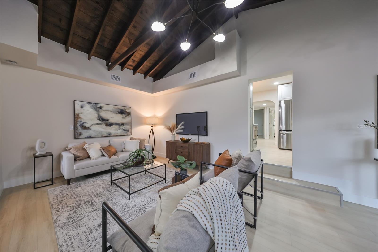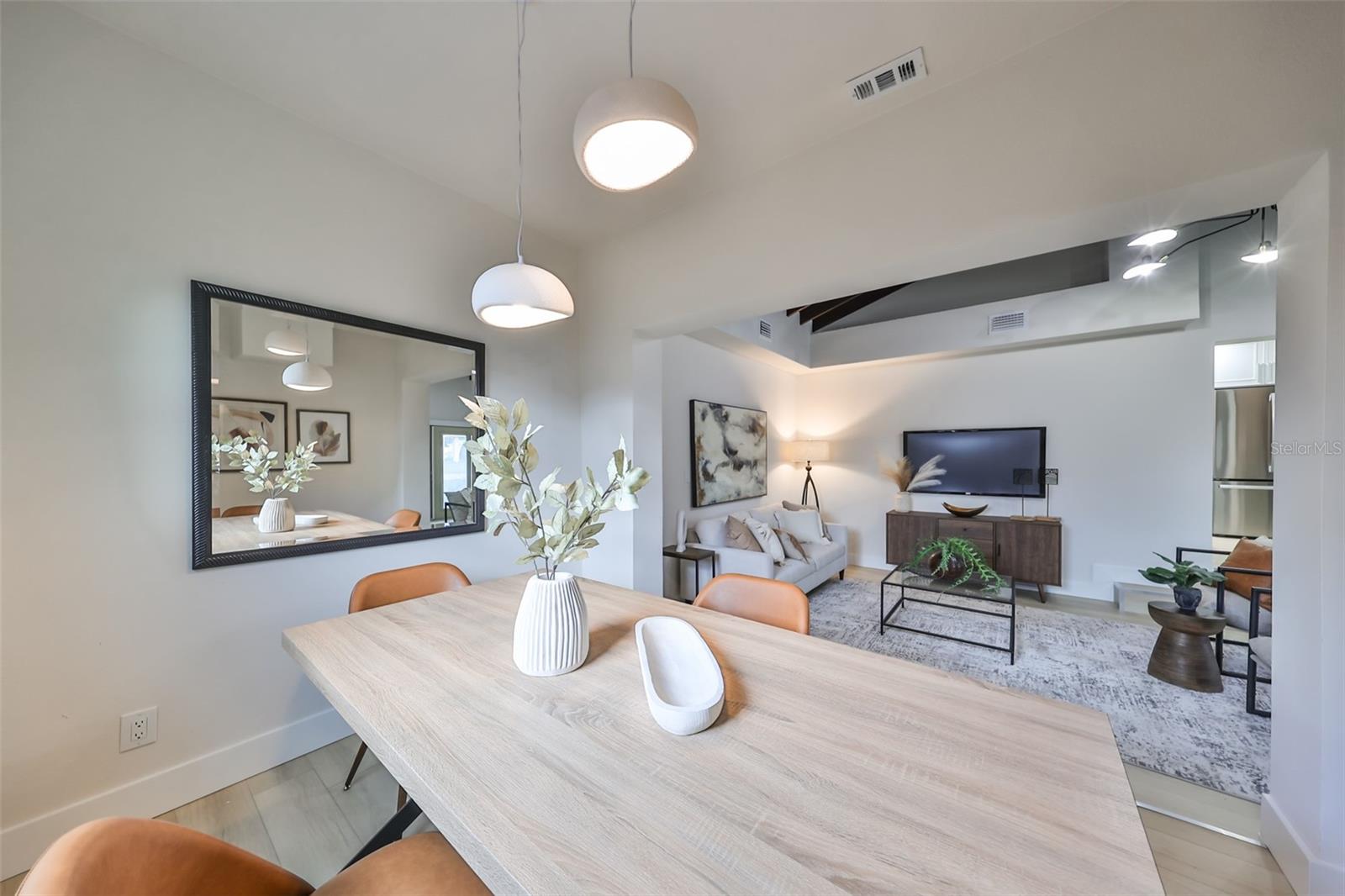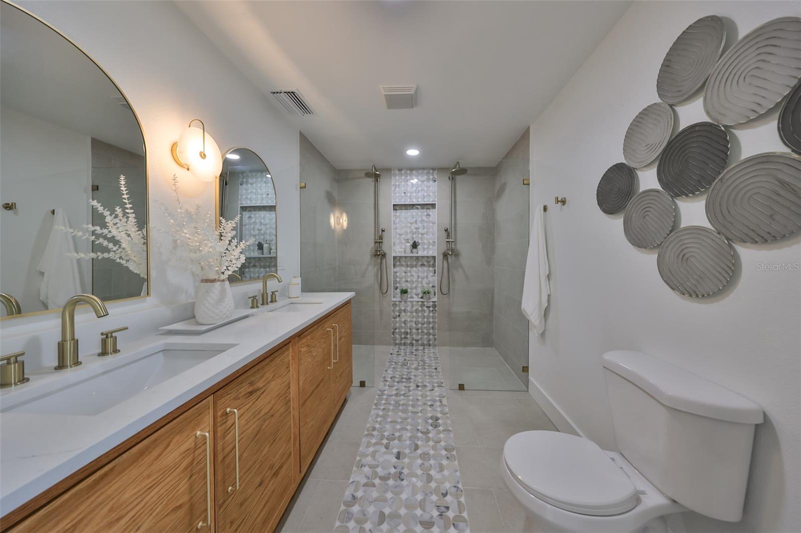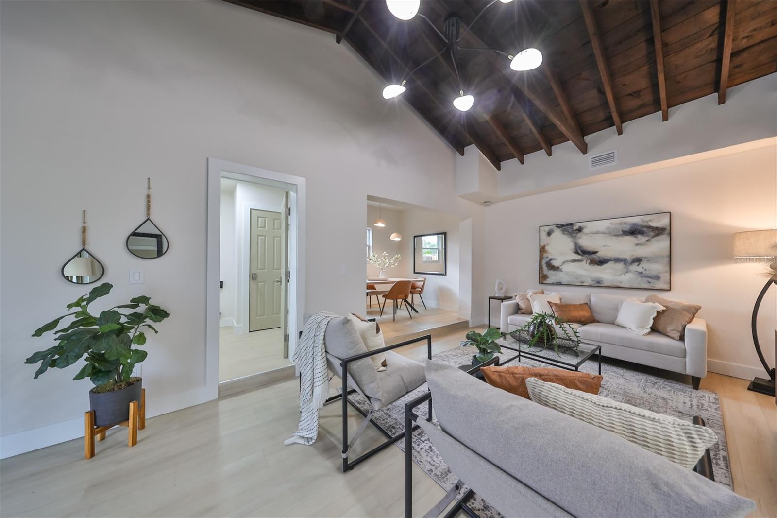 “Meados do século encontra o moderno” - Bem-vindo ao Twin Palms, uma impressionante propriedade renovada que é uma combinação perfeita para a aquisição de uma casa própria. Com mais de 2.000 pés quadrados de área útil, a casa principal oferece 3 quartos, 2 banheiros completos com lavanderia interna e o ADU anexo oferece 1 quarto e 1 banheiro completo de área útil. Esta propriedade pode ser uma propriedade geradora de renda com potencial de aluguel duplex, uma oportunidade de “hackeamento de casa” onde você mora de um lado e aluga o outro, ou pode ser uma vida multigeracional no seu melhor, com um membro da família morando com você, mas tem seu próprio espaço de vida privado. As portas da frente são emolduradas por palmeiras gráficas pintadas, e a charmosa pérgula leva à sala de estar principal, com os dramáticos tetos abobadados escuros e o piso de madeira natural sendo um destaque. Prepare-se para se surpreender com os tons terrosos quentes e convidativos que irradiam por todo o interior. A cozinha em tons suaves de verde sálvia, creme e marrom oferece um design backsplash personalizado deslumbrante. A cozinha incorpora prateleiras flutuantes com amplos armários de cozinha, um pacote de eletrodomésticos de aço inoxidável e bancadas de quartzo para facilitar o entretenimento. Os 3 quartos fora do corredor principal oferecem 2 quartos de hóspedes que compartilham um banheiro no corredor com azulejos dramáticos e personalizados em uma rica paleta magenta. O quarto principal com banheiro privativo na parte traseira da casa oferece um quarto de tamanho generoso com armários duplos. O impressionante design do banheiro principal cria outro destaque com o design espetacular dos azulejos, pias duplas e um box amplo de grandes dimensões. A ADU traseira anexa oferece uma garagem privada com um pátio lateral. A área de 550 pés quadrados oferece 1 quarto e 1 banheiro completo com cozinha em conceito aberto e sala de estar. O design continua com os mesmos tons suaves de terra da casa principal, com verdes claros e tons quentes de marrom incorporados aos azulejos. O quintal totalmente cercado oferece uma fogueira e redes duplas para relaxar e se divertir ao sol ou observar as estrelas. Localizado numa zona não inundada. Novo telhado em 2024.