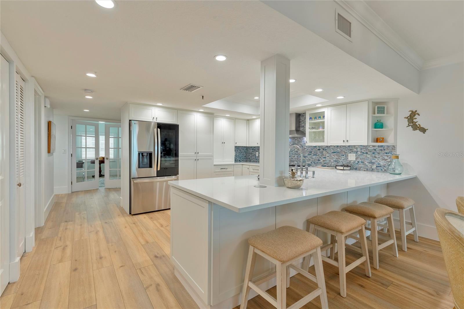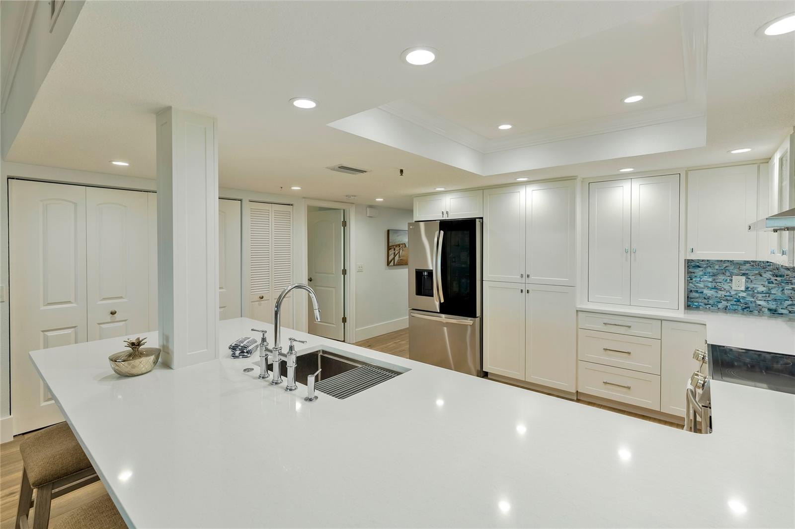 Esta casa foi completamente atualizada e totalmente nova para o seu novo lugar para chamar de lar! Por favor, assista ao tour em vídeo 360 para sentir como esta casa é incrível. Nenhum detalhe foi esquecido nesta casa. Novas janelas Impact e portas de vidro deslizantes. Sua nova casa também possui persianas elétricas na borda de sua varanda externa e uma área de estar bem equipada. As venezianas protegem seus móveis e mantêm as janelas limpas quando fechadas. Pavimentos e pintura novos, cozinha e todos os electrodomésticos novos, três casas de banho novas, lareira também actualizada para o ambiente de férias ou de um agradável final de tarde em casa. Todos os novos móveis inspirados em decoradores, obras de arte e todos os acessórios decorativos incluídos para você. Esta casa está sendo vendida chave na mão. Traga sua escova de dentes e bagagem. Esta casa tem tudo. Venha viver “O ESTILO DE VIDA DA FLÓRIDA”! Assista ao pôr do sol no lado do Golfo e ao nascer do sol no seu Den e no quarto de hóspedes. Parece sua própria casa de praia particular. Lindo condomínio Direct Gulf Front com 3 quartos, 3 banheiros e salão localizado no Cabana Club na bela Sand Key em um complexo de estilo Key West que é fechado com portas de entrada seguras para os edifícios, estacionamento subterrâneo e generoso estacionamento para hóspedes em frente ao edifício . Há uma piscina de água salgada com aquecimento geotérmico e uma academia com belas vistas diretas do Golfo. Você também tem pickleball, shuffleboard e basquete. O edifício foi totalmente remodelado com novas janelas de impacto, novos estuques, nova pintura juntamente com novo piso nos corredores e novo A/C no lobby. O estacionamento também foi atualizado. Este é um trajeto fácil para Clearwater/St. Aeroportos de Pete e Tampa. Aceita animais de estimação, você pode ter 2 animais de estimação de até 25 libras. Este condomínio é imperdível. Está decorado com bom gosto e pronto para morar. A instalação de treino com incríveis vistas diretas do Golfo e dois banheiros para você se exercitar, relaxar na piscina aquecida de água salgada ou fazer uma festa privada no amplo deck do nível principal. Característica do quarto: Armário de linho no banheiro (quarto principal).