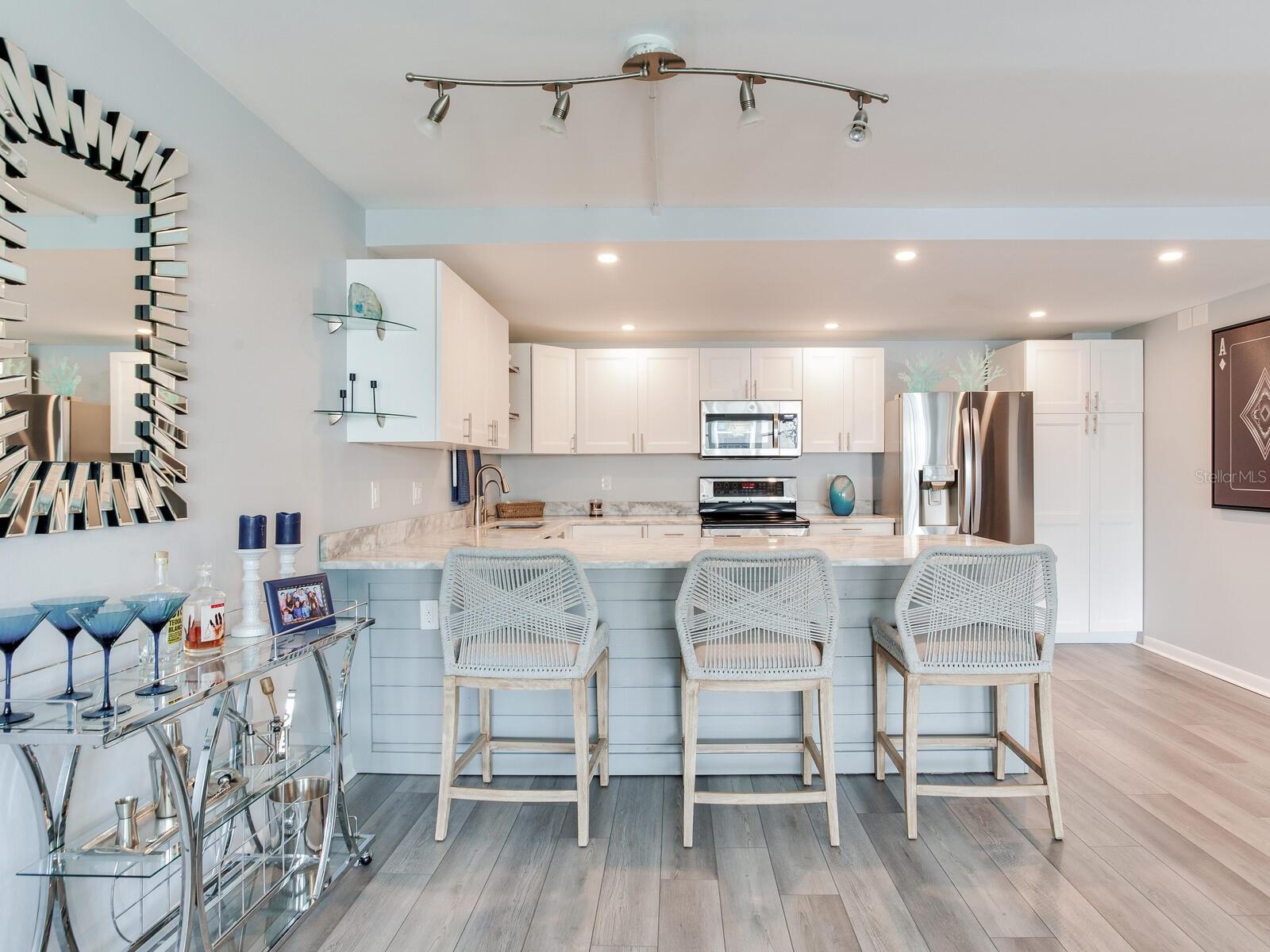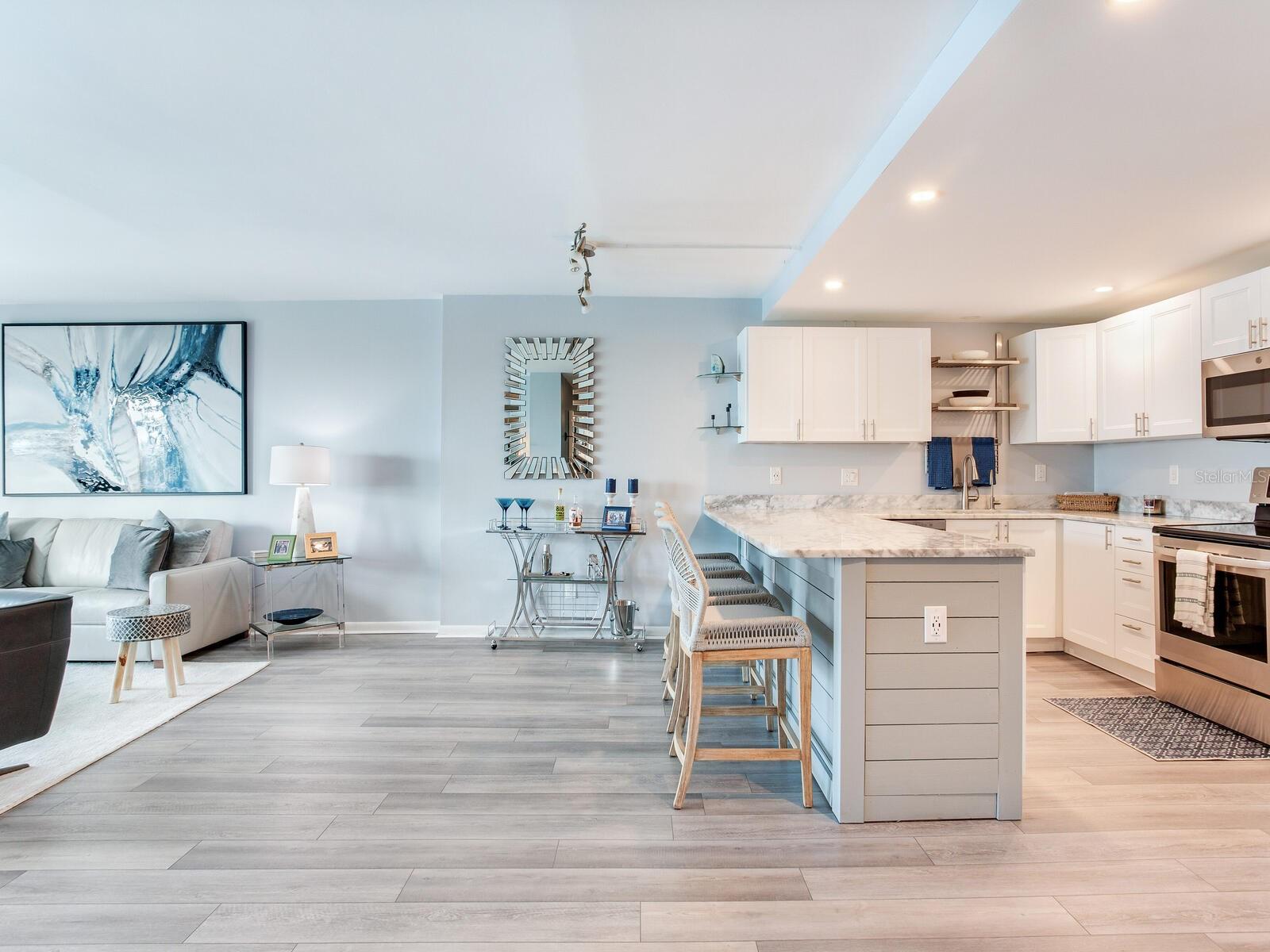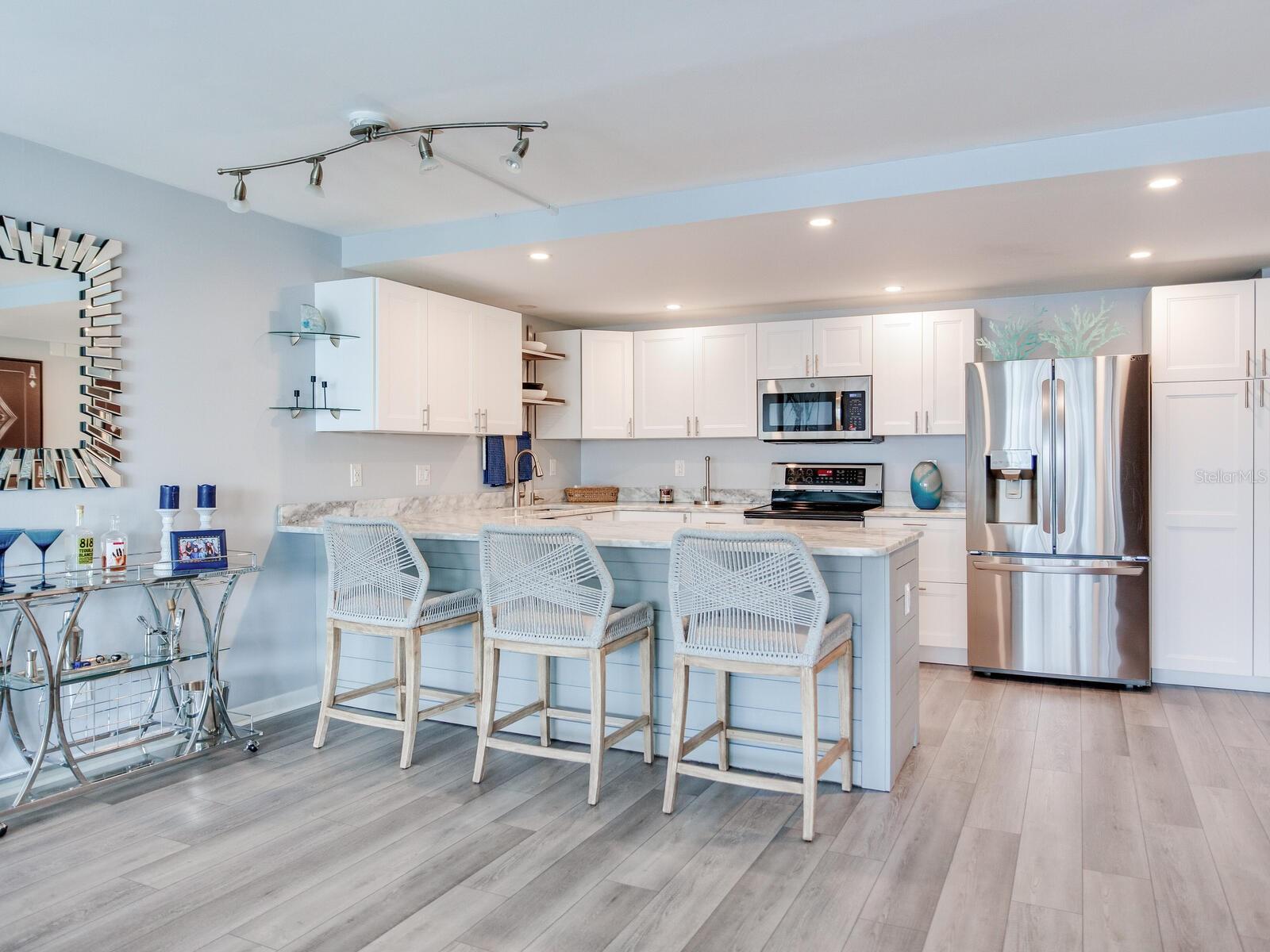 Bem-vindo ao seu lindo condomínio na nova praia! Este deslumbrante condomínio de 2 quartos e 2 banheiros, localizado no extremo sul de Clearwater Beach, oferece 1.310 pés quadrados de espaço cuidadosamente atualizado com vistas deslumbrantes para o mar. Assim que você entrar, o layout aberto e a sensação desta joia irão cativá-lo. A cozinha é simplesmente deslumbrante, com armários elegantes, acabamentos lindos e eletrodomésticos totalmente novos que atendem à vida moderna. Pisos de vinil luxuosos e interiores recém-pintados criam uma vibração limpa e contemporânea, enquanto a remoção dos tetos de pipoca realça a aparência moderna e polida. A suíte master possui um espaçoso closet e banheiro privativo. Atualizações adicionais incluem uma nova lavadora e secadora, bem como um novo sistema AC instalado em agosto de 2023 para mantê-lo confortável durante todo o ano. O item mais importante, as janelas da sala de estar são resistentes a furacões e têm painéis duplos que oferecem refúgio seguro durante qualquer tempestade. O edifício passou recentemente por uma grande melhoria com um telhado totalmente novo, garantindo durabilidade a longo prazo. Os residentes desfrutam de comodidades em estilo resort, incluindo 3 piscinas, uma banheira de hidromassagem, amplo espaço para grelhar e fogueira e uma praia privada exclusiva para os residentes chamarem de sua. Quando estiver pronto para mais ação, você terá acesso fácil às areias imaculadas de Clearwater Beach, com muitas atividades vibrantes, bem como opções de restaurantes, compras e entretenimento. A unidade #606 no Edifício Commodore é perfeita como residência permanente, escapadela de férias ou oportunidade de investimento. Com todas as atualizações já concluídas, está realmente pronto para morar. Não perca a chance de possuir este paraíso costeiro – agende hoje mesmo sua exibição privada!