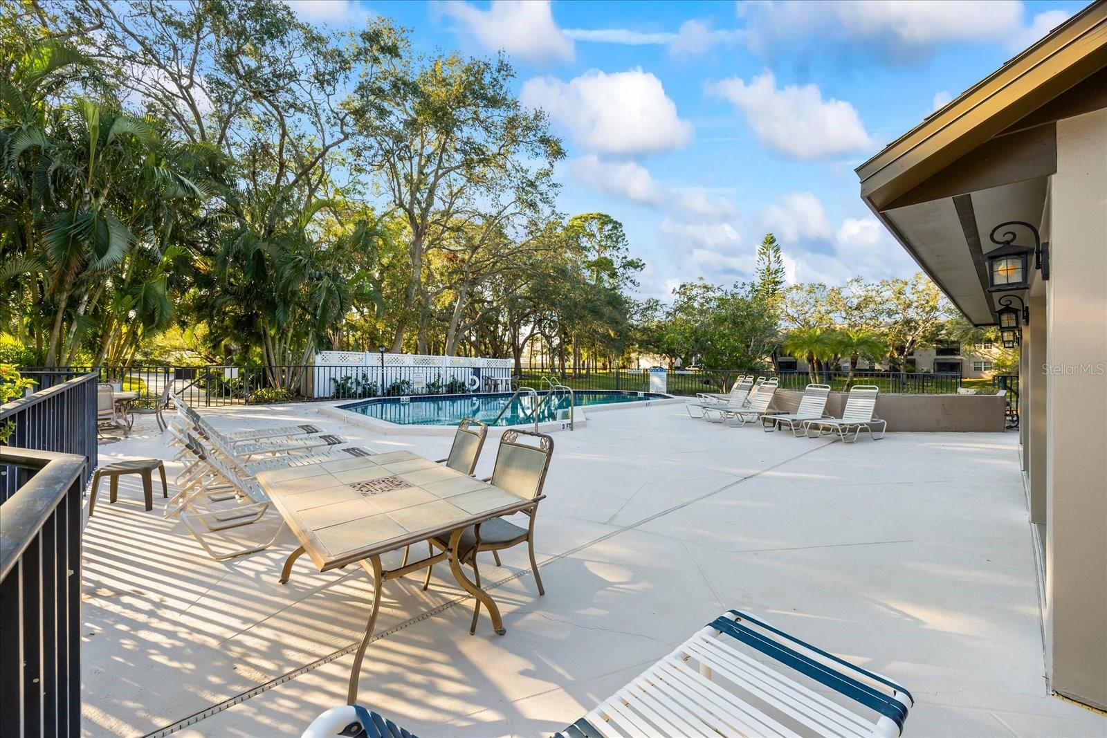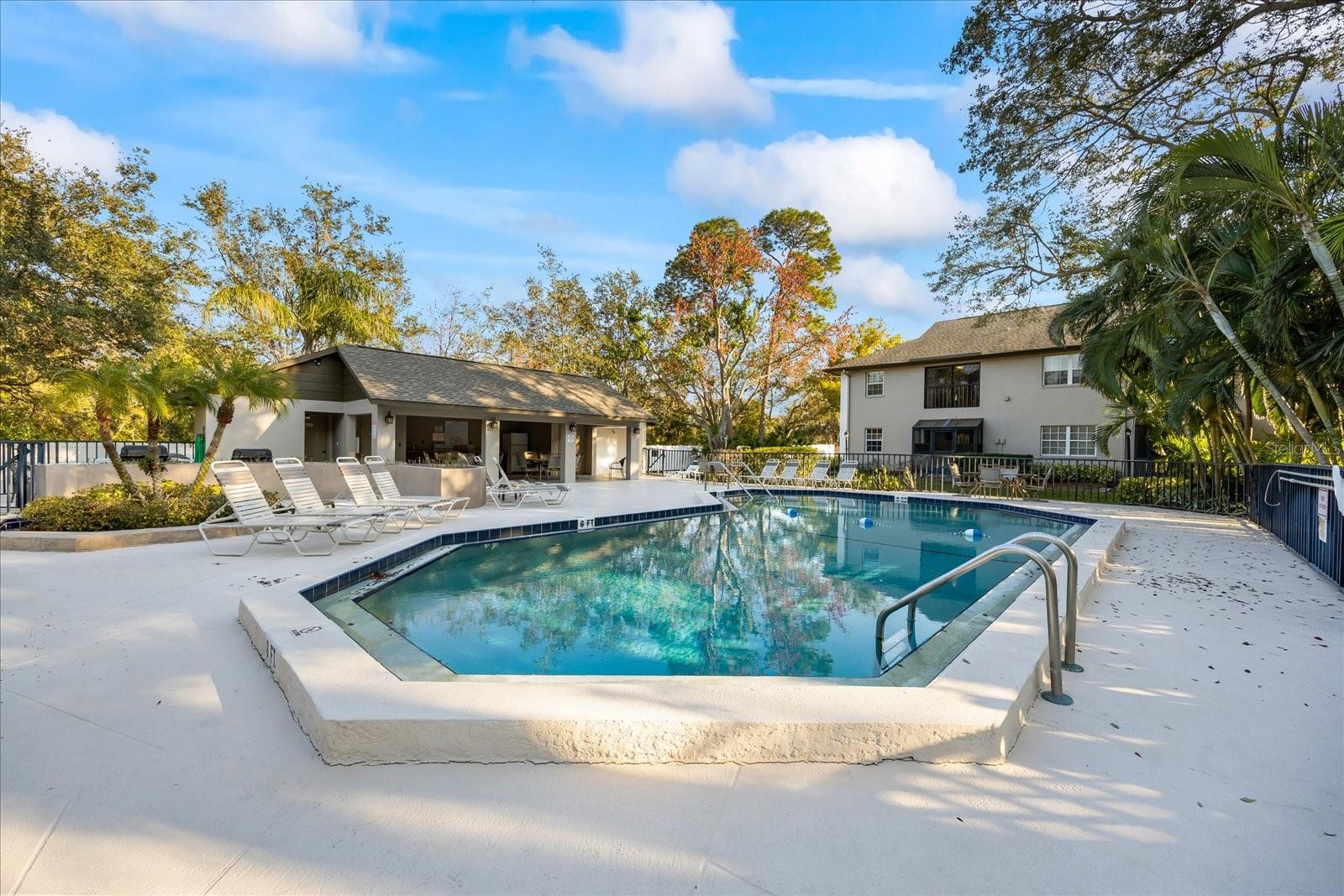 Esta unidade extremidade do segundo andar bem conservada e totalmente mobiliada tem tetos abobadados e tem vista para a piscina e lagoa da comunidade. A cozinha possui aparelhos de aço inoxidável e uma despensa de armário. A cozinha vem equipada com todas as louças, panelas, panelas e talheres. Novos ventiladores de teto e iluminação podem ser encontrados por toda parte. A varanda original foi aberta como parte da metragem quadrada, que adiciona cerca de 100 pés quadrados ao espaço de vida aquecido e resfriado. Há uma lavadora e secadora em tamanho real. O quarto principal tem um closet e um chuveiro. As baixas quotas mensais de condomínio cobrem tudo, exceto a eletricidade. O espaço de estacionamento coberto está convenientemente localizado em frente ao prédio e há muito estacionamento adicional. Perto de compras, restaurantes, golfe, Clearwater/st. Aeroporto de Pete e as praias. Comunidade para animais de estimação e há uma área de caminhada para cães no complexo.