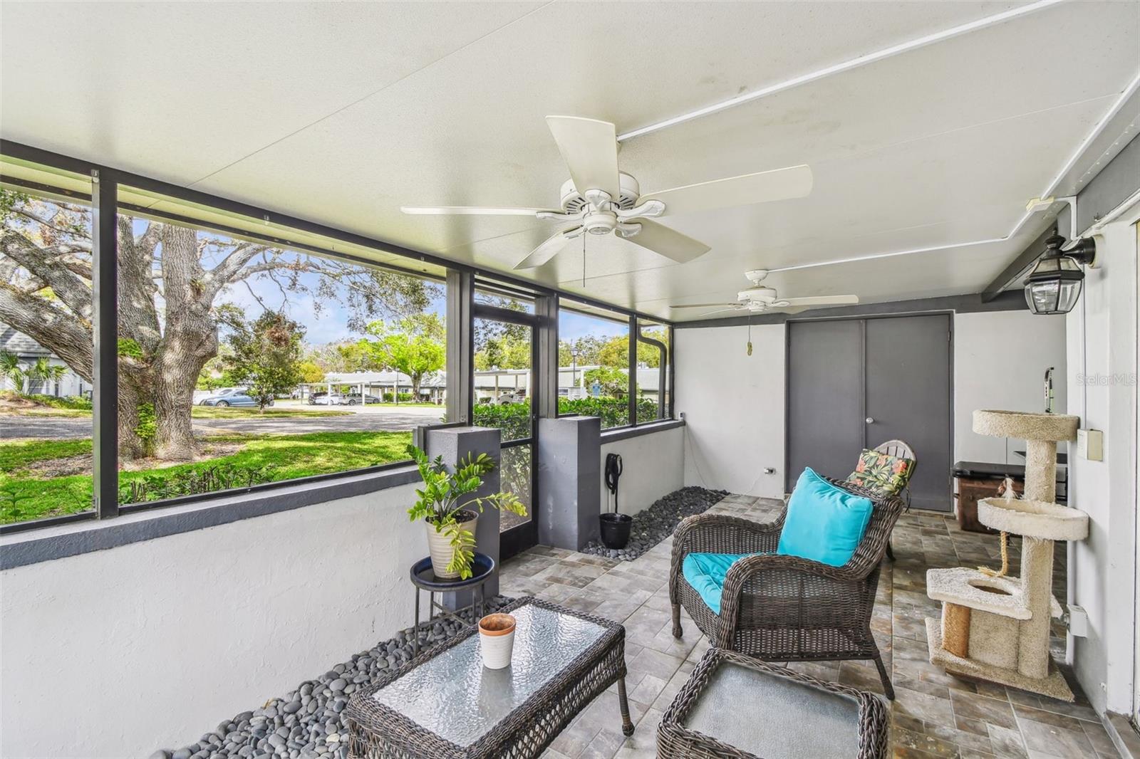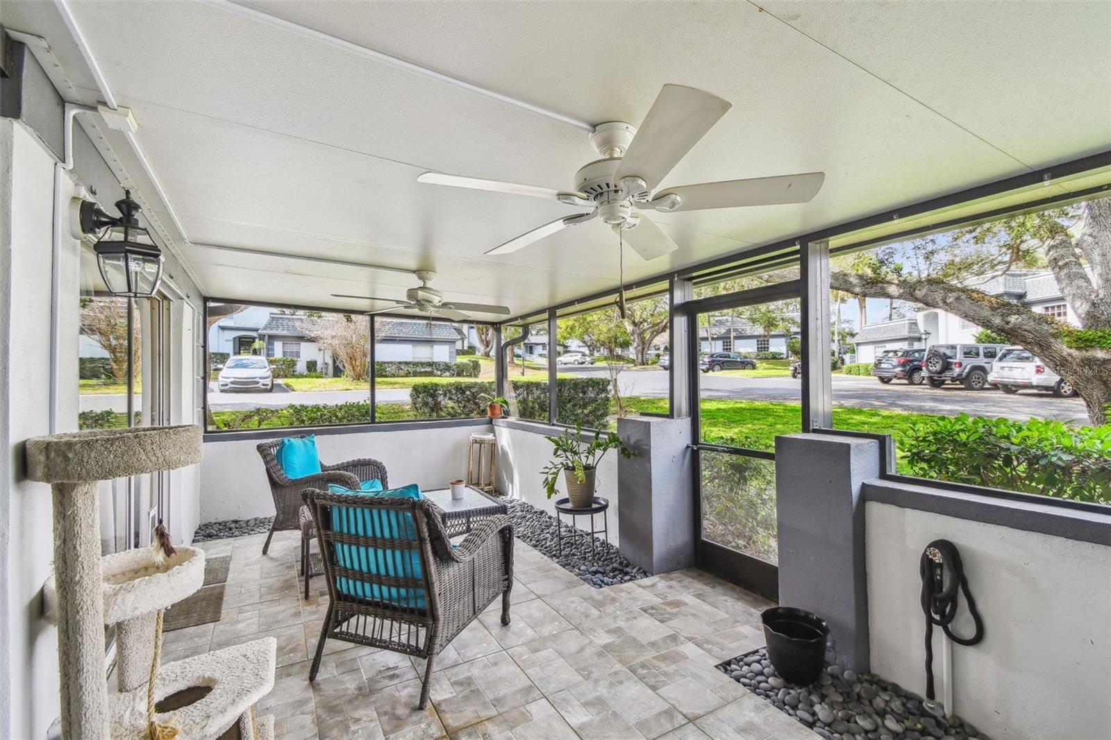 Bem -vindo ao lar deste brilhante e bonito 2 quartos 1 1/2 da unidade de canto de banho Villa na altamente procurada Comunidade de Kapok Manor em Beautiful Clearwater, Flórida. Ao entrar nesta espaçosa vila, você sentirá que está em uma casa unifamiliar com sua planta e janelas abertas com vista para todo o espaço verde do lado de fora. Logo após a sala, há uma tela muito grande na varanda, onde você pode desfrutar de café pela manhã ou coquetéis à noite com amigos e familiares. Há também um grande armário de armazenamento para todas as suas necessidades ao ar livre. Ambos os quartos são de bom tamanho e têm muito espaço nos armários. No final do corredor é o luxuoso banheiro novo que foi completamente reformado há um ano. O telhado foi substituído em 2021, A/C 2018, a geladeira 2022 e o aquecedor de água quente tem 6 meses. O piso por toda parte é laminado e ladrilho para facilitar a limpeza. Seu espaço de estacionamento designado fica a poucos passos da porta da frente para sua conveniência e também há muito estacionamento para os visitantes. Esta comunidade é tão charmosa com seus carvalhos maduros e colinas. Ótima localização, perto de Ruth Eckerd Hall, Safety Harbor, muitos ótimos restaurantes, compras, entretenimento, algumas das melhores praias da Flórida e um trajeto fácil para Tampa e St. Pete.