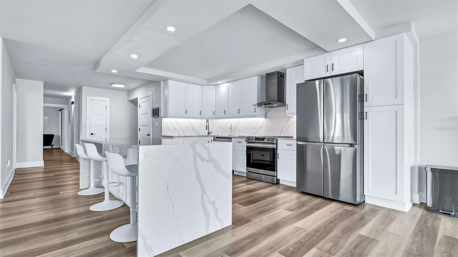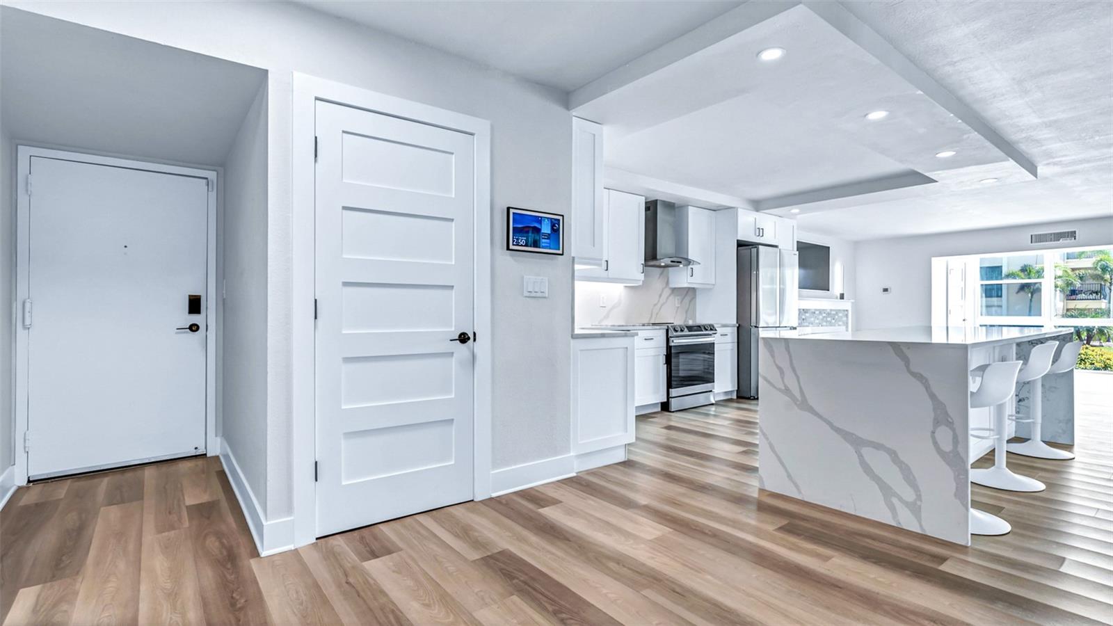 Bem-vindo ao seu impressionante e recém-renovado condomínio de 3 quartos e 2 banheiros, localizado em Clearwater Beach-uma das praias mais bonitas do mundo! Esta unidade espaçosa é uma das maiores da comunidade, oferecendo a você a combinação perfeita de conforto e luxo. Desfrute de uma luz natural abundante que entra nas janelas novas que destacam os espaços de estar de conceito aberto. Novos portas por toda parte. Atualmente, seu condomínio possui uma lareira personalizada, uma grande ilha de bancada de quartzo com utensílios de aço inoxidável, banheiros lindamente remodelados com chuveiros e uma banheira independente no banho primário para o relaxamento final. O quarto principal inclui um grande armário personalizado da Califórnia, oferecendo amplo espaço uma oportunidade para organizar seus pertences. Também está incluído um ponto de estacionamento coberto privado e reservado e um carregador privado de EV incluído. Saia e aprecie a conveniência do acesso privado na praia, onde você pode aproveitar a areia branca e as águas cristalinas e as águas cristalinas a poucos passos. A comunidade oferece 3 piscinas com spas, perfeitos para relaxar depois de um dia na praia. Esta unidade nunca foi afetada por furacões, incluindo as tempestades mais recentes, dando tranquilidade em seu novo lar. Além disso, você está a uma curta caminhada das compras, restaurantes e atrações locais, tornando este o lugar perfeito para experimentar o melhor da vida de Clearwater Beach. Não perca esta oportunidade incrível - faça o seu show hoje!