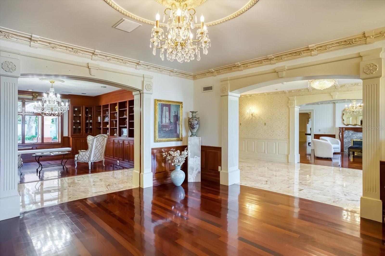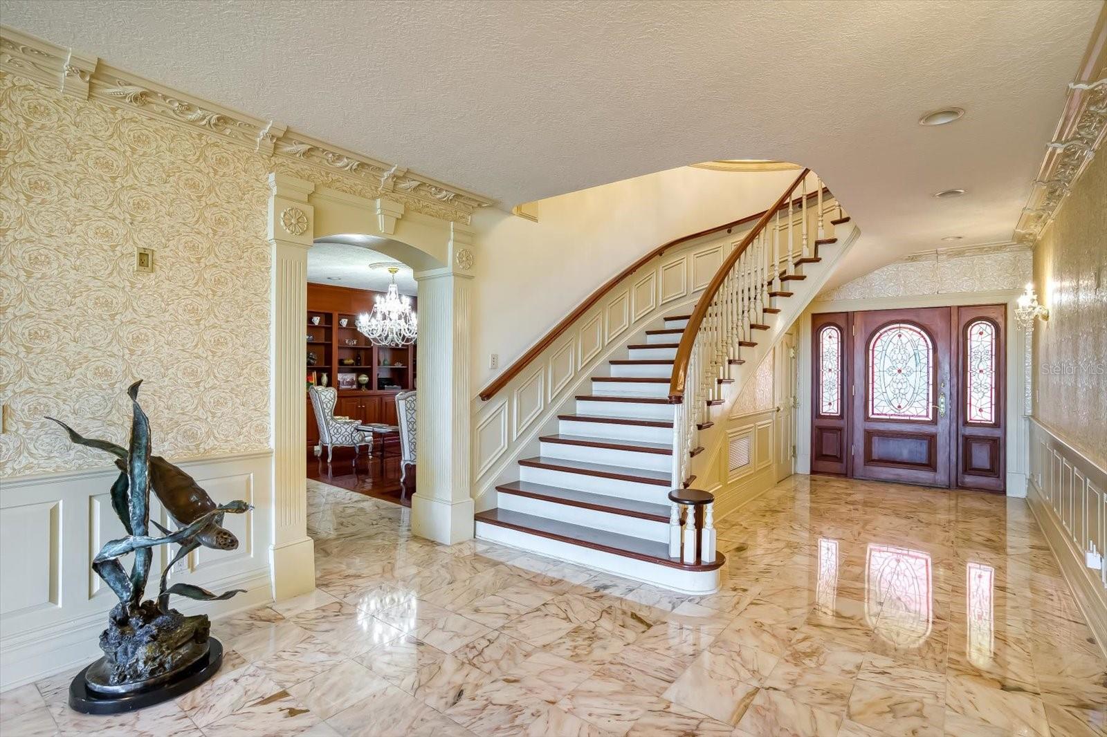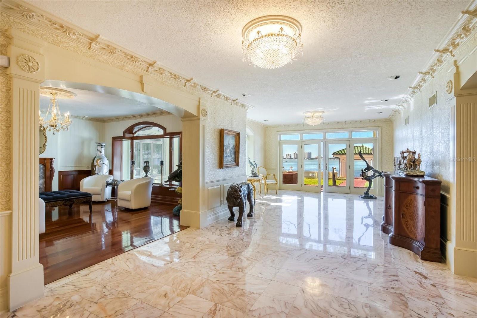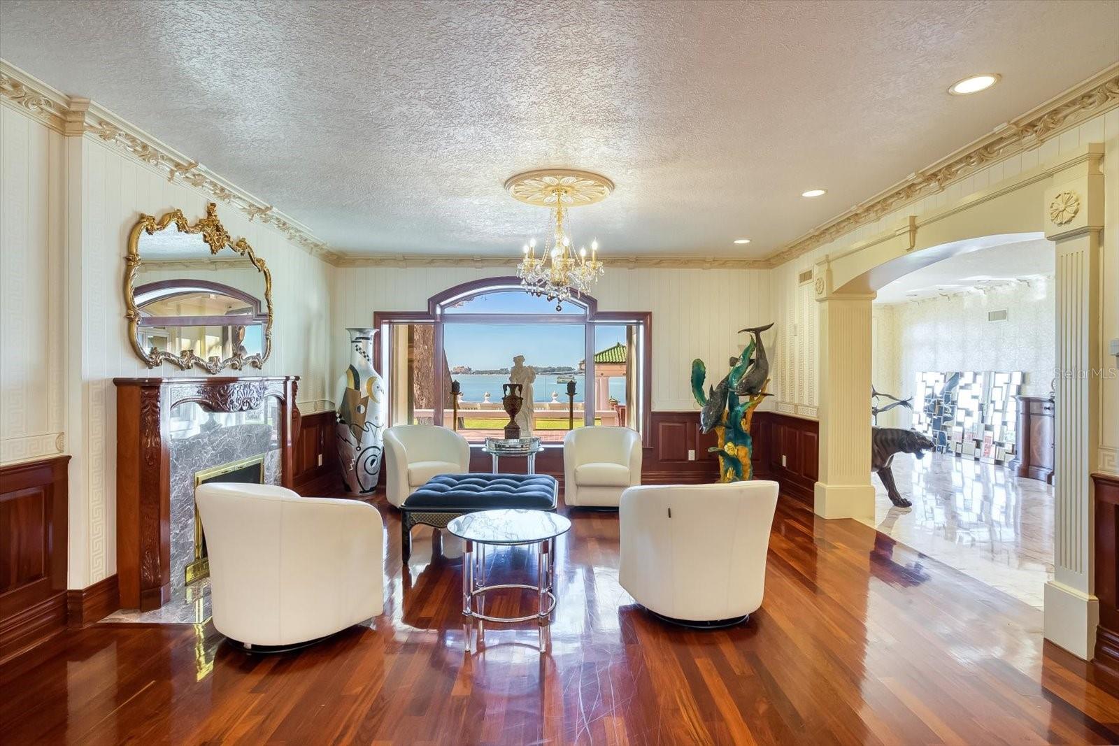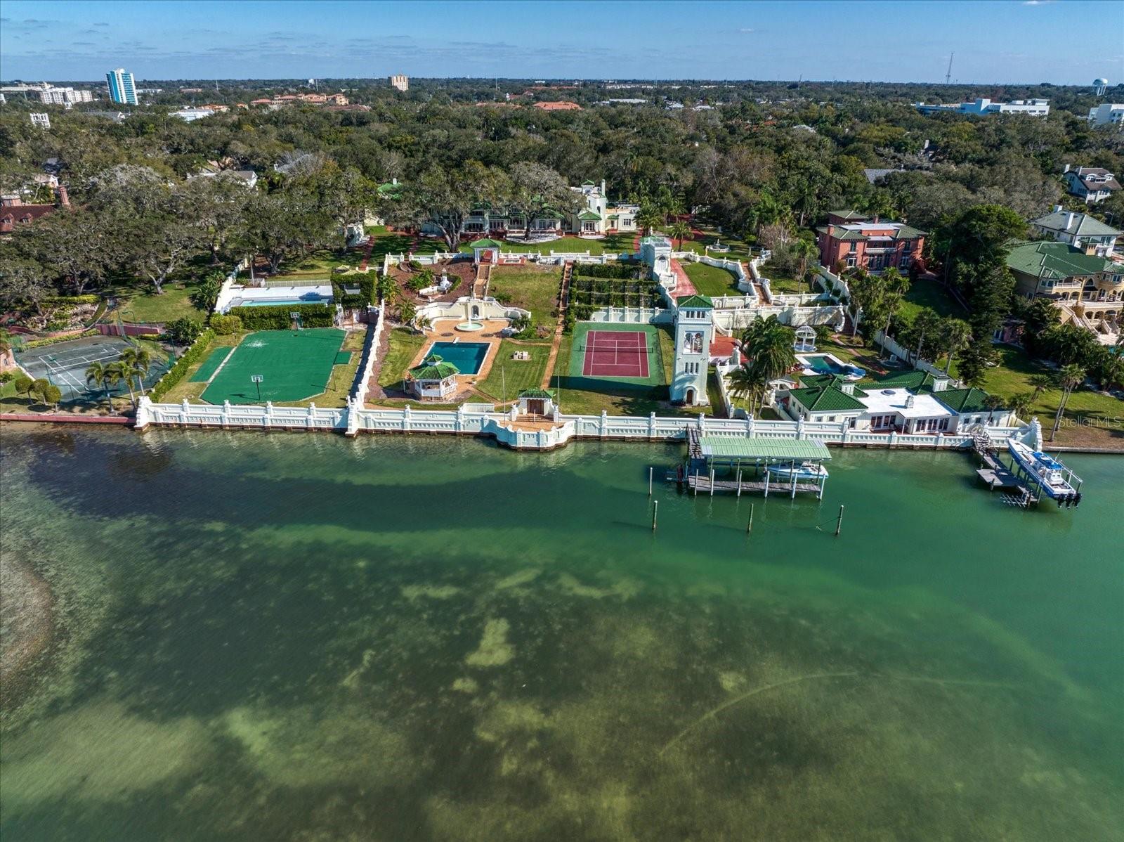 Uma conquista impressionante em design e localização além da comparação. Vistas incomparáveis do Golfo, detalhes arquitetônicos dramáticos e um local altamente cobiçado combinam a altura do luxo nesta obra -prima do Mediterrâneo com vista para a maior extensão do porto de Clearwater. “Century Oaks” é o homônimo desta propriedade que entreteve os presidentes dos EUA, chefes de estado e está localizada nos terrenos do FT Harrison usados durante a guerra espanhola - americana. Comandando 5,6 acres incomparáveis com 213 pés de orla direta, a mansão de 16.472 pés quadrados apresenta uma rara oportunidade de possuir uma das mansões mais icônicas do estado da Flórida. Estrategicamente posicionado no topo de um grande blefe, a residência ampla foi construída propositadamente para capitalizar as vistas que abrangem o olho do golfo, a chave de areia e o horizonte de Clearwater. Os tetos da catedral crescentes, várias janelas e um plano aberto expansivo criam um cenário acolhedor para a vida e divertido da família luxuosa-se sua lista de convidados números dois ou 200. Verdadeiramente uma conquista em design e decoração, a impressionante residência de 10 quartos combina a arte e a grandeza da elegância do Velho Mundo com a sofisticação e a conveniência de amenções modernas. Além do distinto Porte Chere, o layout de dois andares oferece uma mistura agradável de espaços formais e informais, que pode acomodar qualquer necessidade divertida, incluindo um grande salão de entrada, salão de baile enorme, sala de jantar do tamanho de um banquete e uma sala de família convidativa. Servindo em qualquer ocasião é a cozinha, equipada com tudo o que um chef profissional exige, incluindo uma linha de ferro fundido Aga, dois fornos quentes, geladeira abaixo de zero, estação de café, bar de café da manhã, ilha de trabalho e espaço para refeições casuais. O café da manhã é melhor servido na varanda enquanto os barcos navegam e os golfinhos jogam a alguns passos do seu quintal. Os coquetéis noturnos ficam elevados no terraço de entretenimento ao olhar para um pôr do sol Technicolor sobre as águas brilhantes do Golfo do México. Os moradores podem desfrutar de inúmeras atividades em casa, pois a propriedade inclui um home theater, tênis e quadras de basquete, duas piscinas e duas docas de águas profundas que podem acomodar iates de até 60 pés. Aumentando a casa principal estão duas casas convidadas igualmente elegantes. Este cenário sem pares de esplendor à beira-mar está convenientemente localizado perto de locais culturais e de entretenimento, refeições e compras requintadas e praias premiadas do Golfo. O Aeroporto Internacional de Tampa fica a uma curta distância de carro. As propriedades adjacentes para o norte e o sul (800 e 820 Druid Road) estão disponíveis para compra, criando uma grande oportunidade composta.