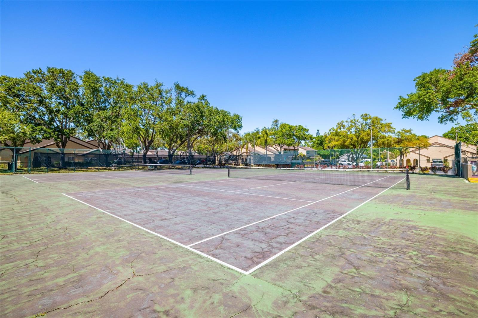 Dog Run, Sidewalk, portas deslizantes, armazenamento, quadra de tênis (s)