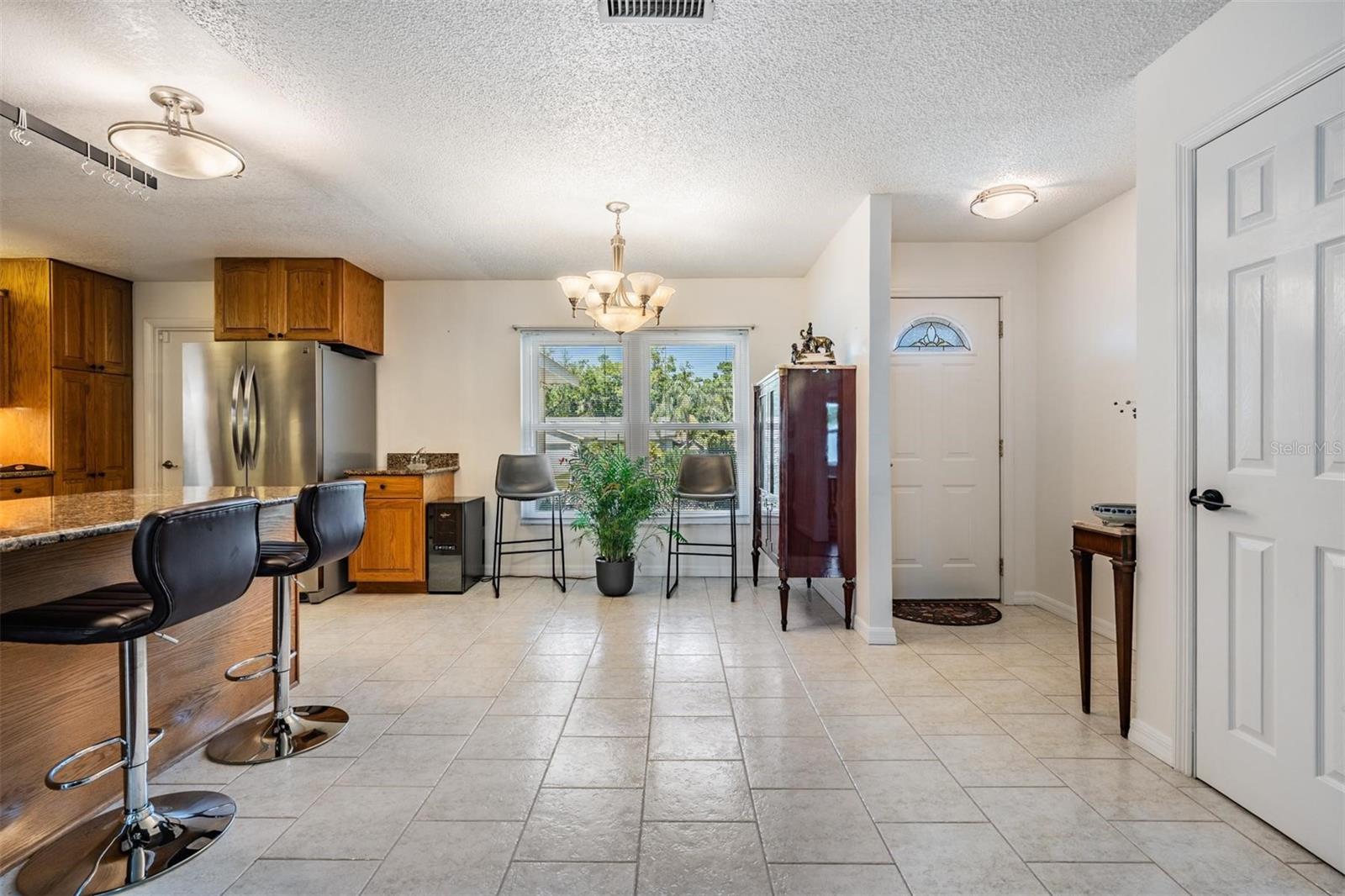 Bem-vindo a esta casa de garagem de 3 quartos, 2 banheiros, 2 banheiros e 2 carros, no coração do campo! Mudar-se pronto e perfeitamente situado em um espaçoso lote de canto de 85x100, esta casa oferece muito espaço para entretenimento e tranquilidade. No interior, você encontrará uma planta baixa, bem projetada, com uma sala grande, área de jantar e portas francesas encantadoras que levam a um lanai exibido, perfeito para a vida interior para fora. A cozinha grande é o sonho de um chef, com armários de madeira, utensílios de aço inoxidável, bancadas em granito, estantes de despensa e espaço de armazenamento abundante. A suíte primária possui um armário de cedro e um banheiro privativo com uma vaidade de madeira, balcões de granito e um chuveiro. Dois quartos adicionais compartilham um banheiro de hóspedes com uma vaidade de madeira, balcões de granito e uma banheira. Destaques adicionais incluem novas janelas de furacão (2021), piso laminado mais recente, uma passarela pizada, um galpão de armazenamento e painéis solares de propriedade para o aquecedor de água. AC 2015, teto 2013. Localizado na zona de inundação X sem HOA, esta casa fica perto das escolas, parques do condado, compras, restaurantes e entretenimento. Não perca esta oportunidade incrível - faça o seu show hoje!